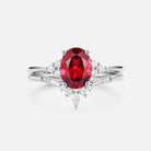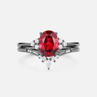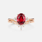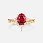 Oval Cut Lab Ruby Classic Cluster Gold Ring Set 2pcs - Solara