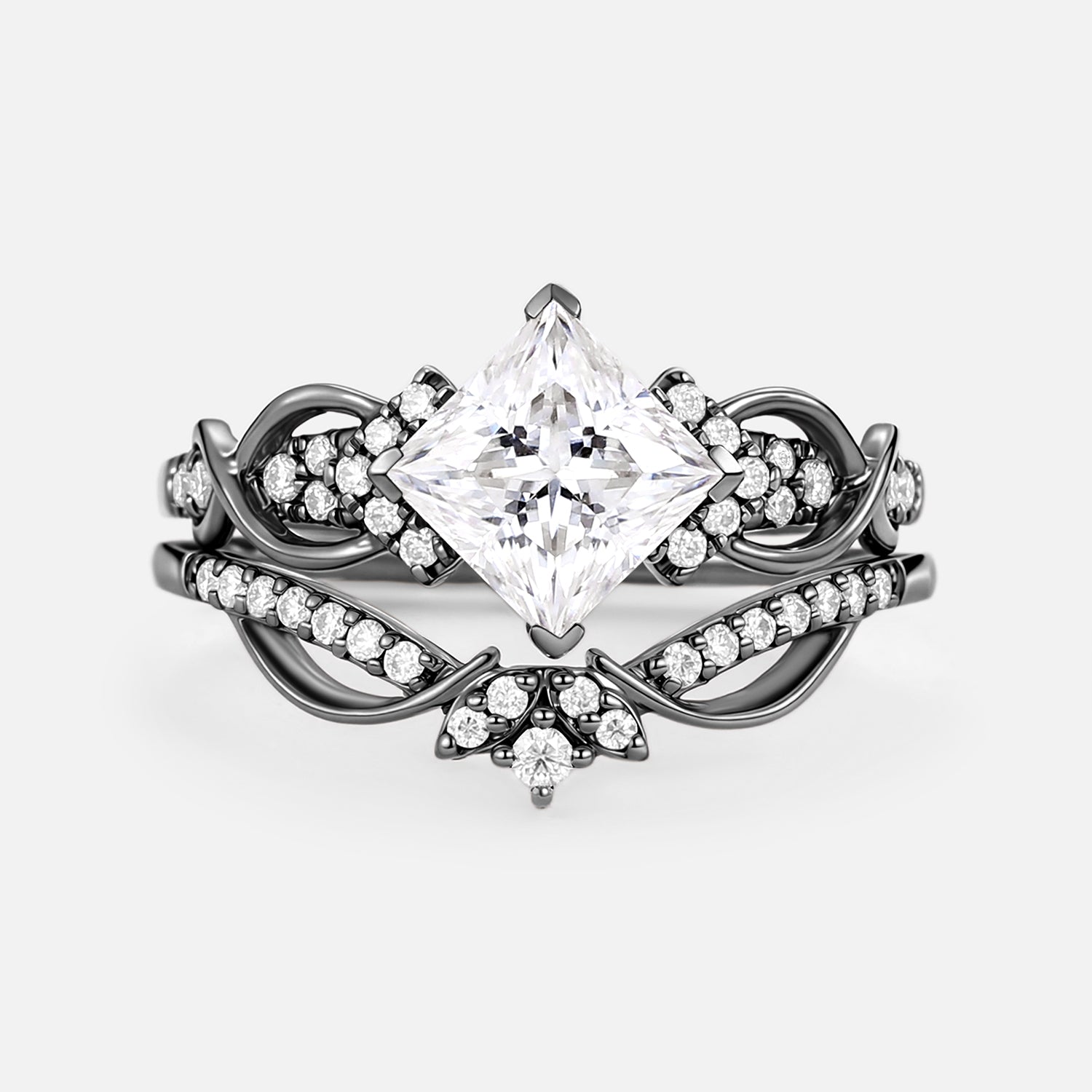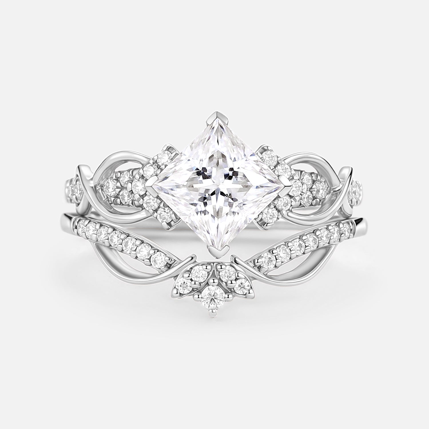 Princess Cut Moissanite Twist Engagement Ring Set 2pcs