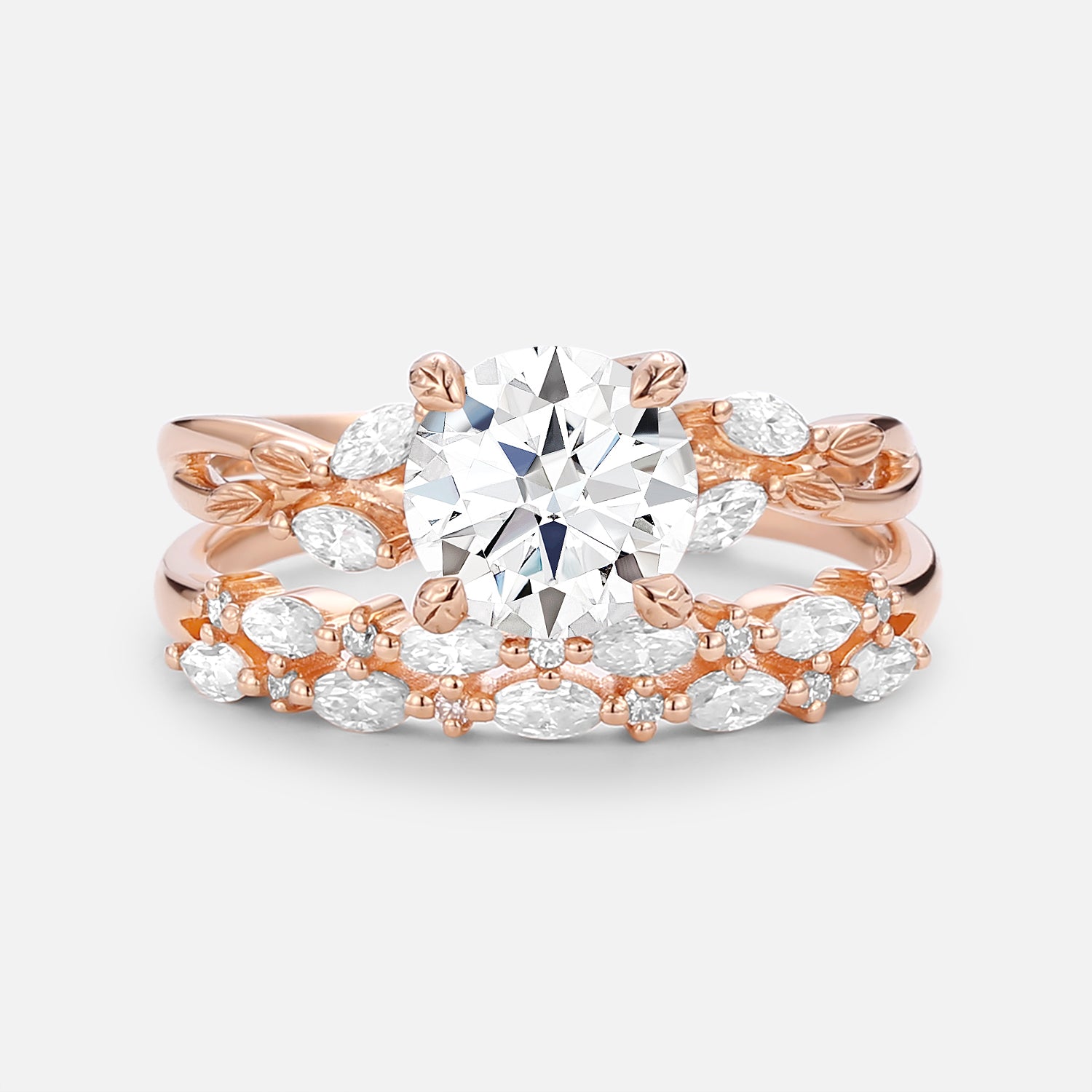 Round Cut Moissanite Leafy Cluster Engagement Ring Set 2pcs