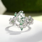 Green Moss Agate Pear Vine Engagement Ring Set 2pcs - Daphne