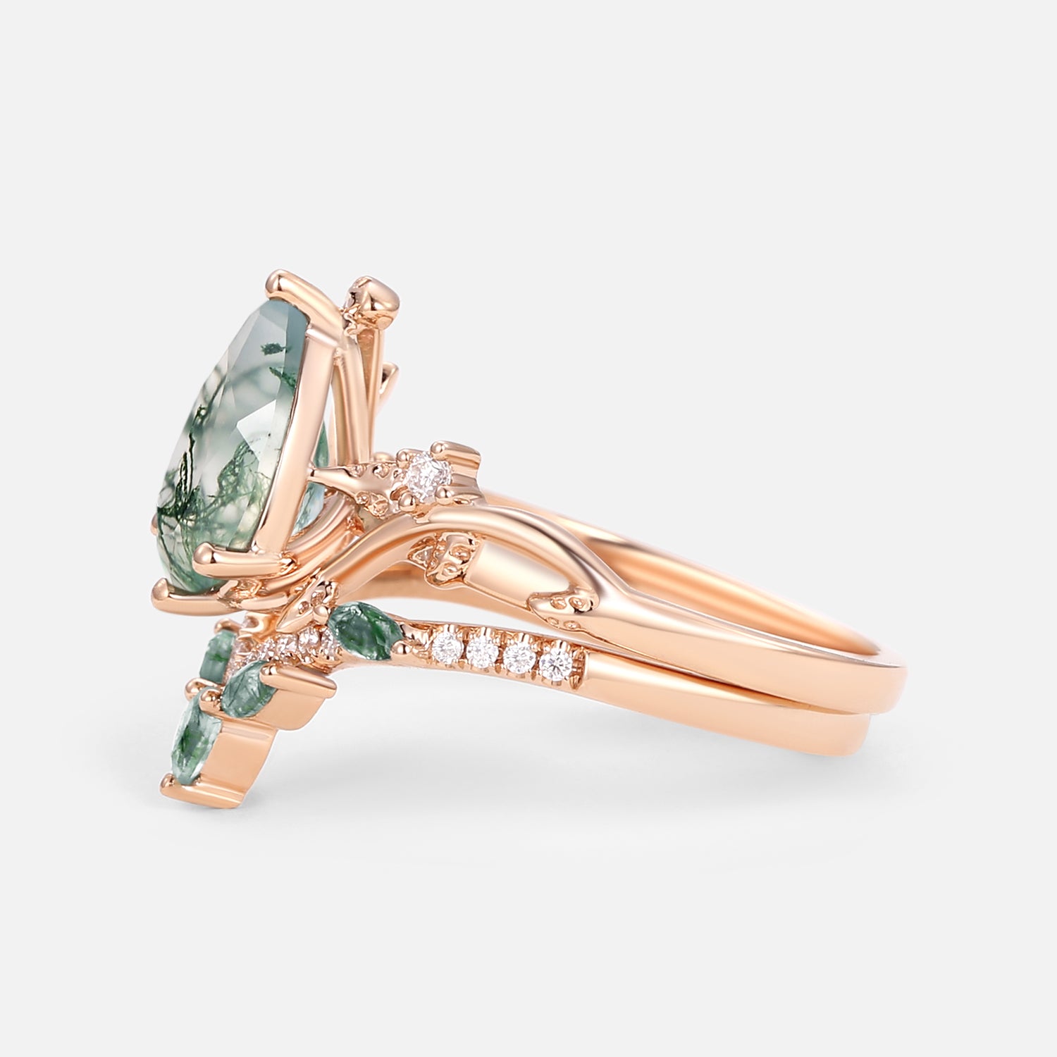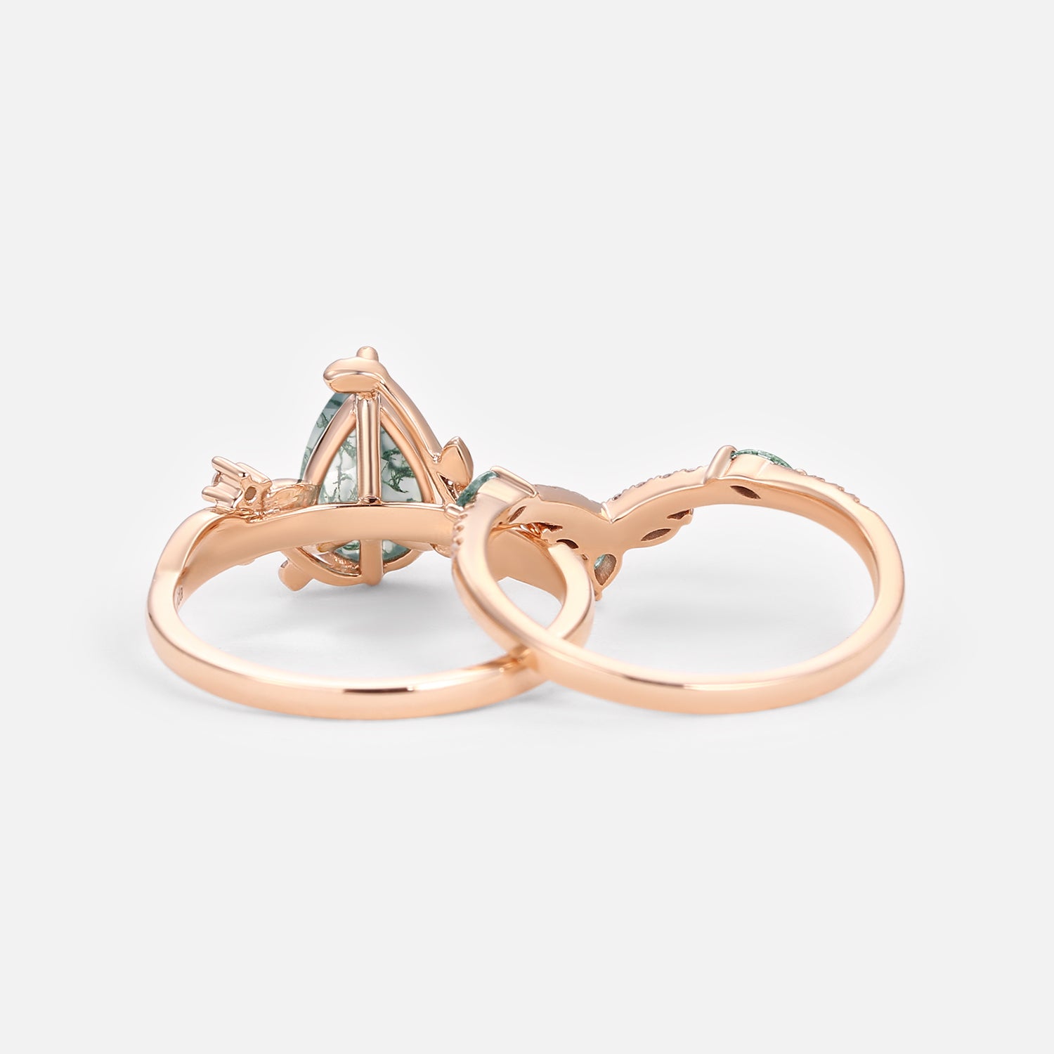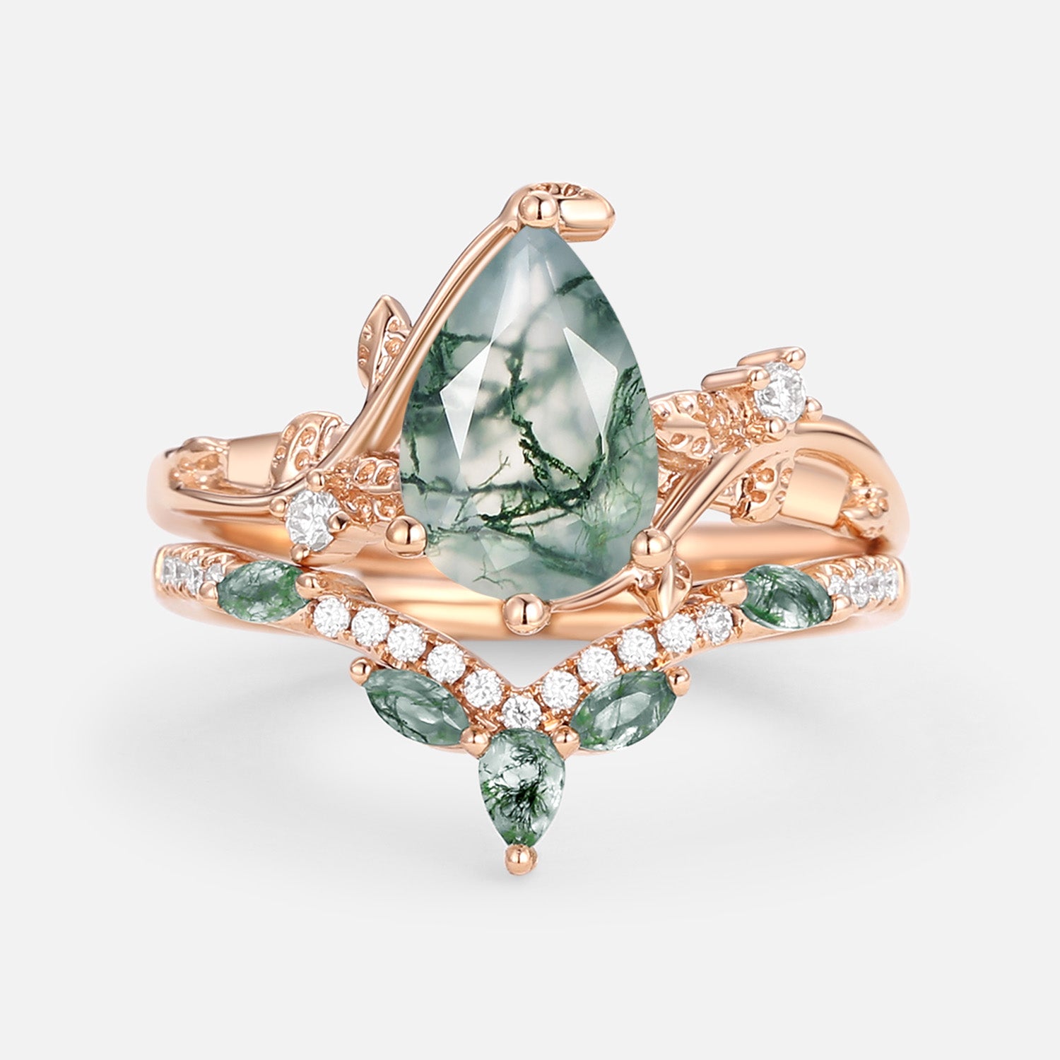 Pear Cut Moss Agate Vine Engagement Ring Set 2pcs - Twigs