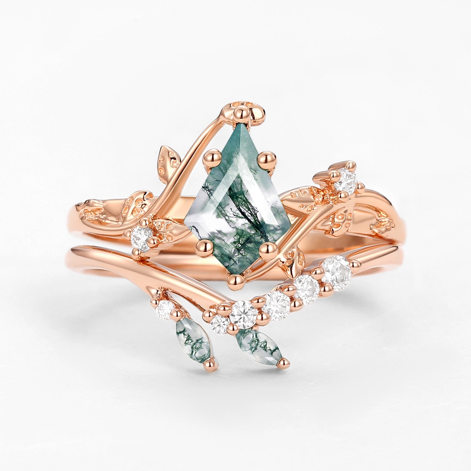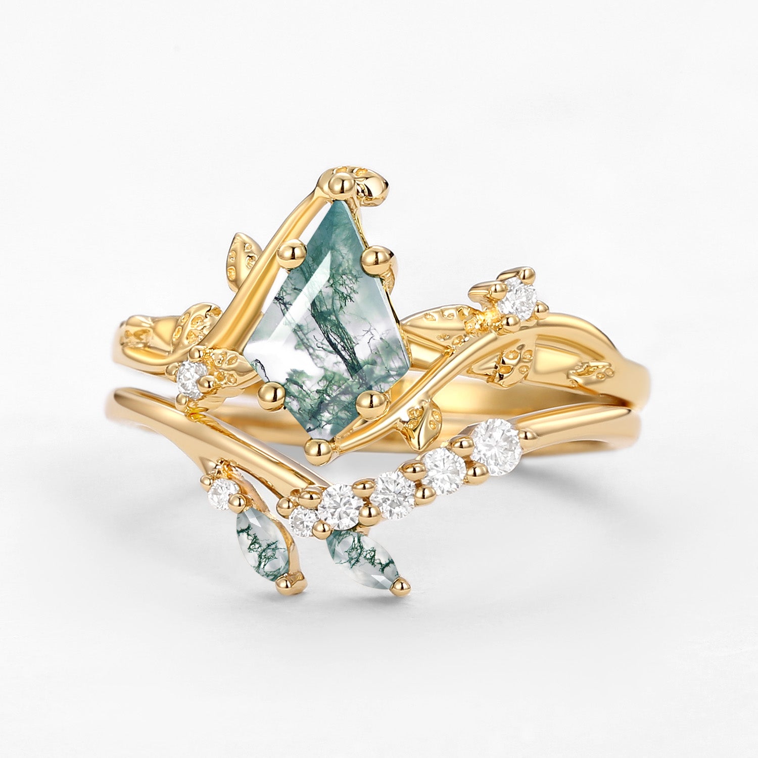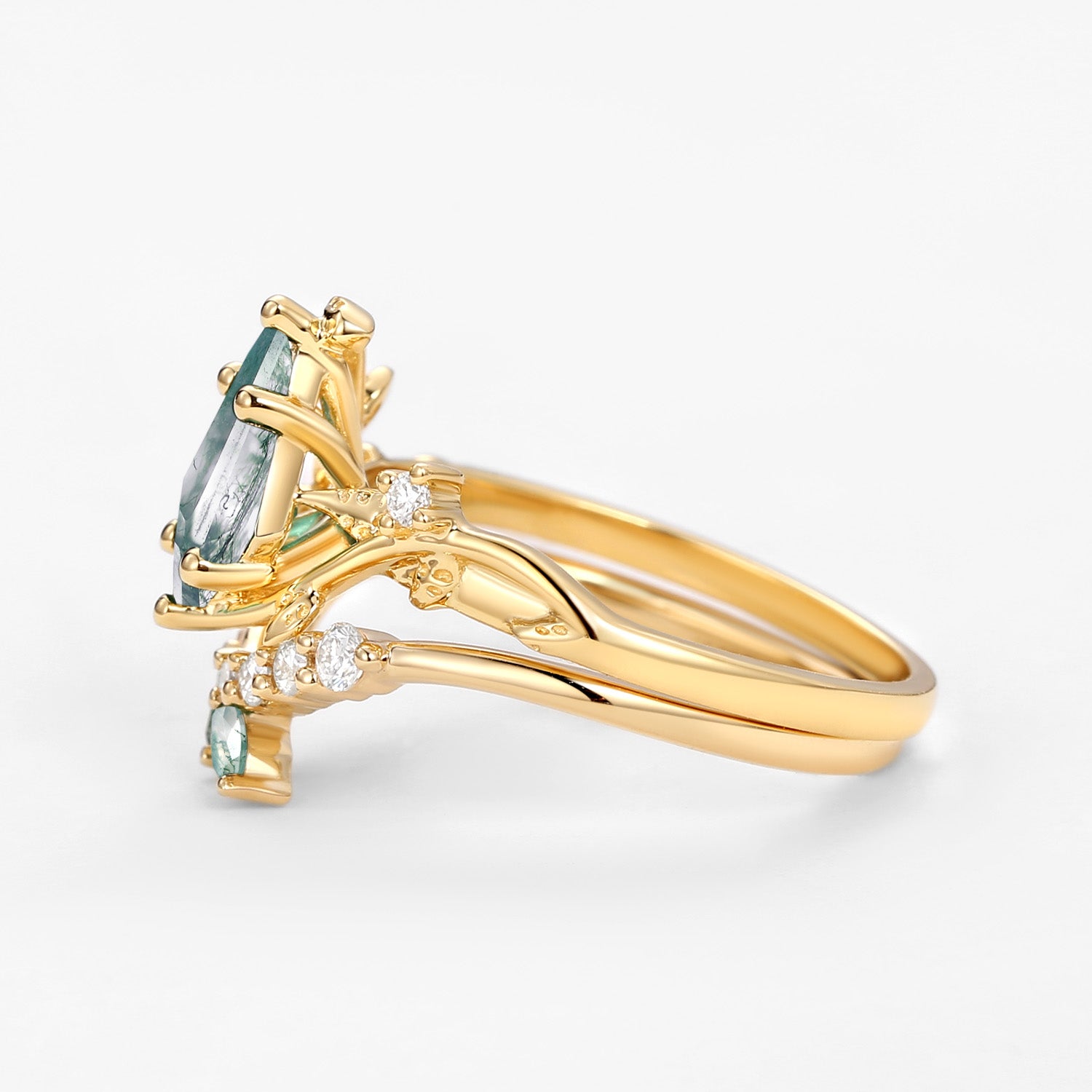 Unique Moss Agate Vine Engagement Ring Sets 2pcs