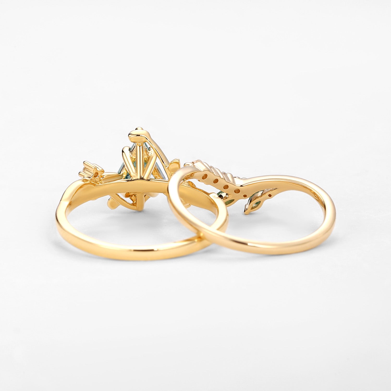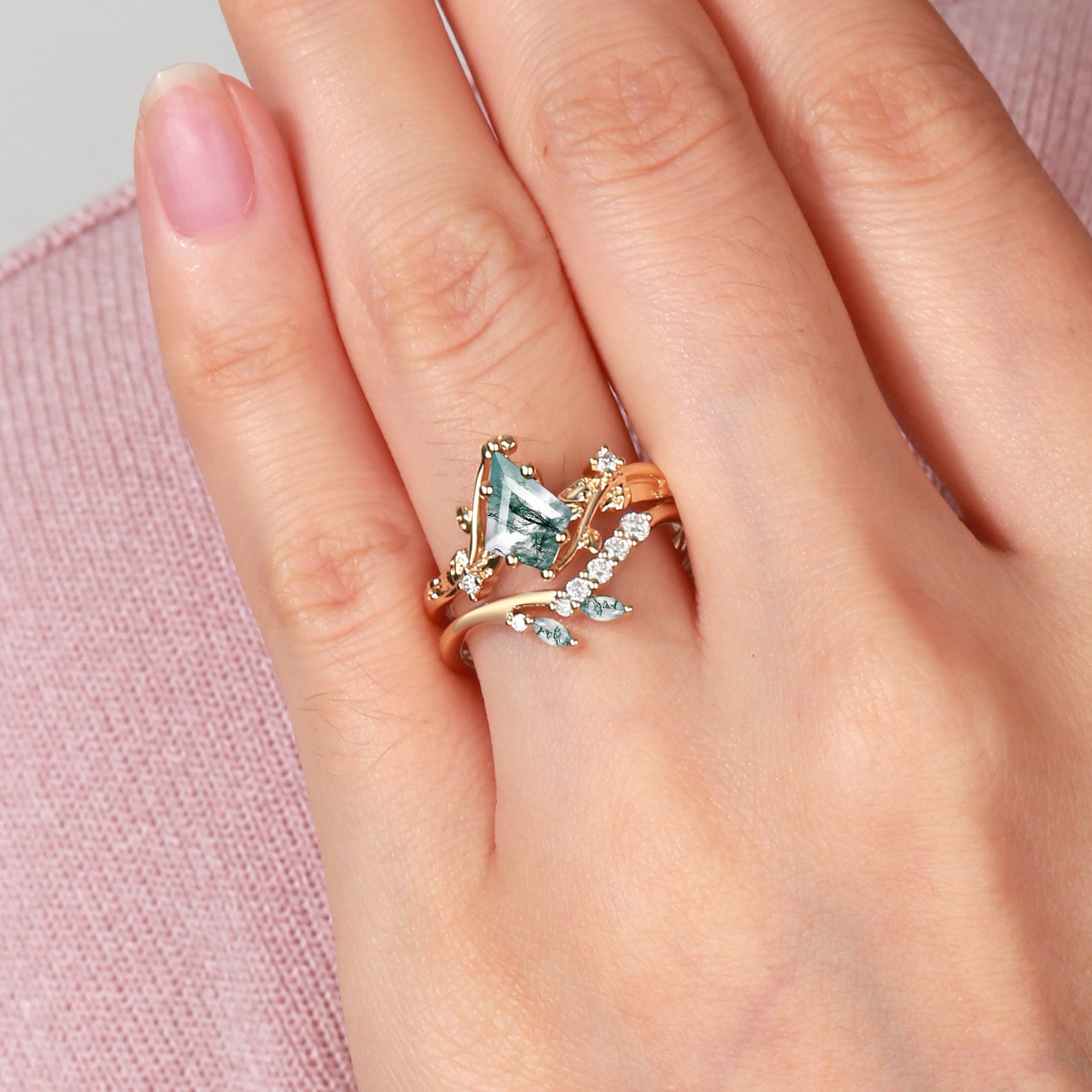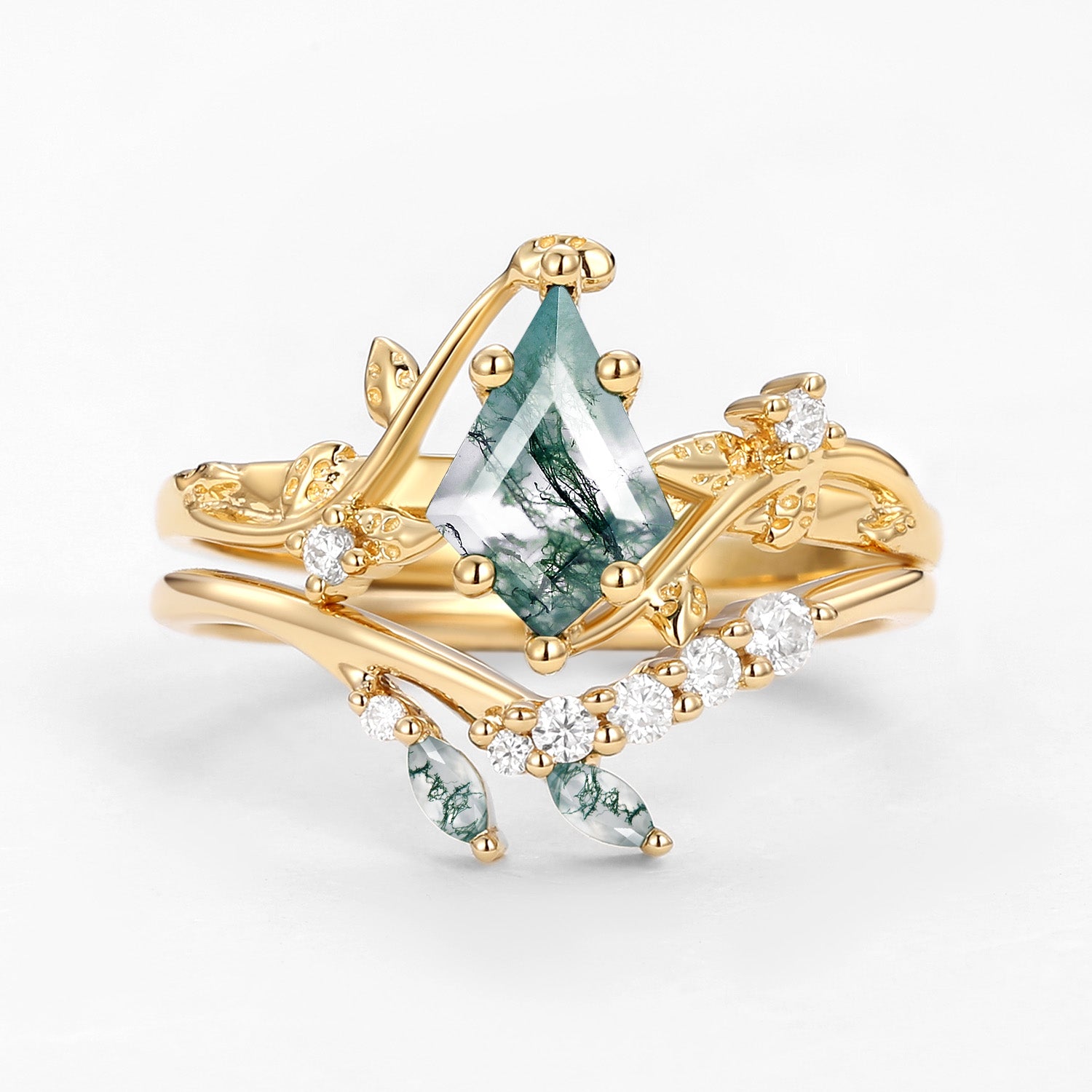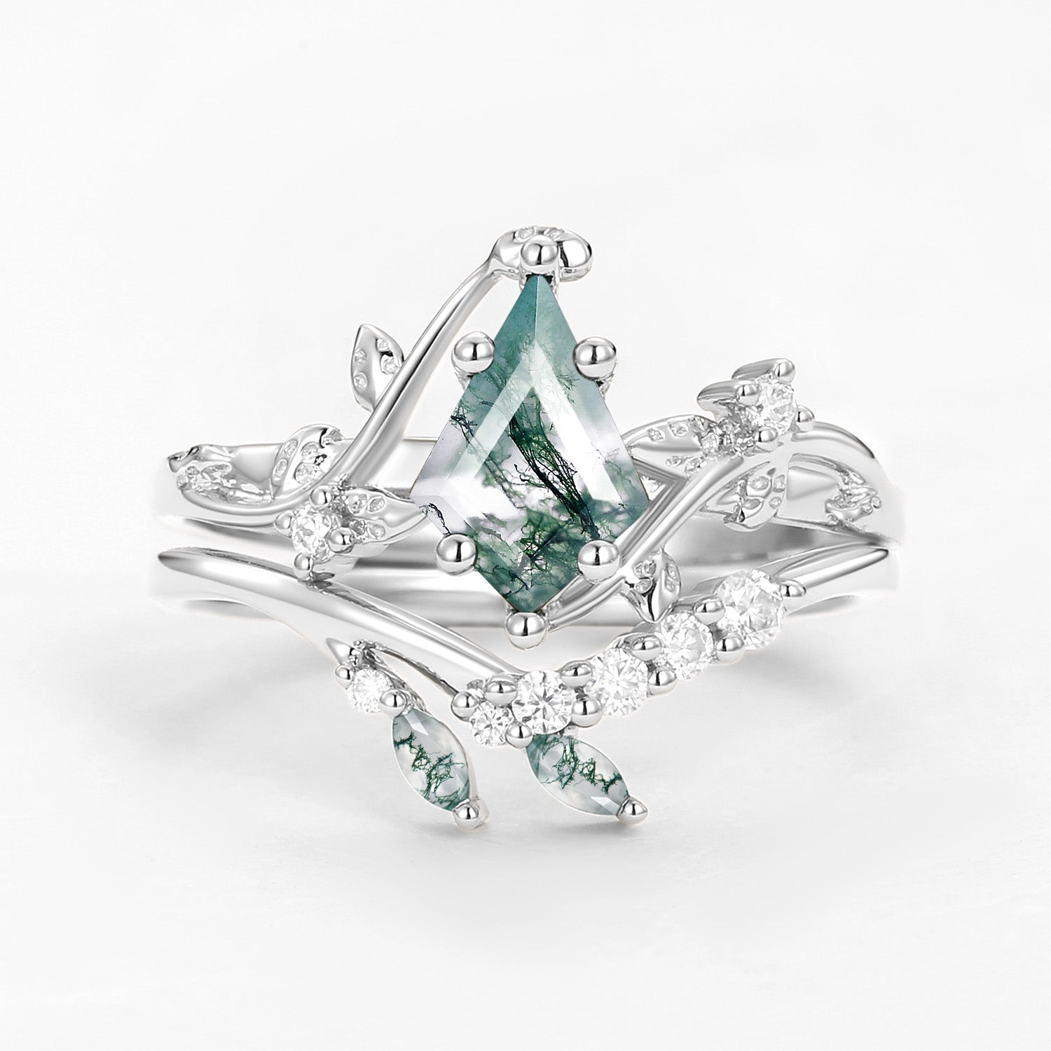 Unique Moss Agate Vine Engagement Ring Sets 2pcs