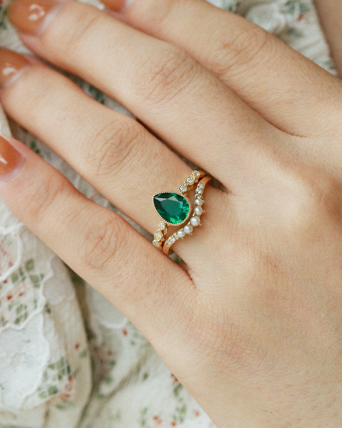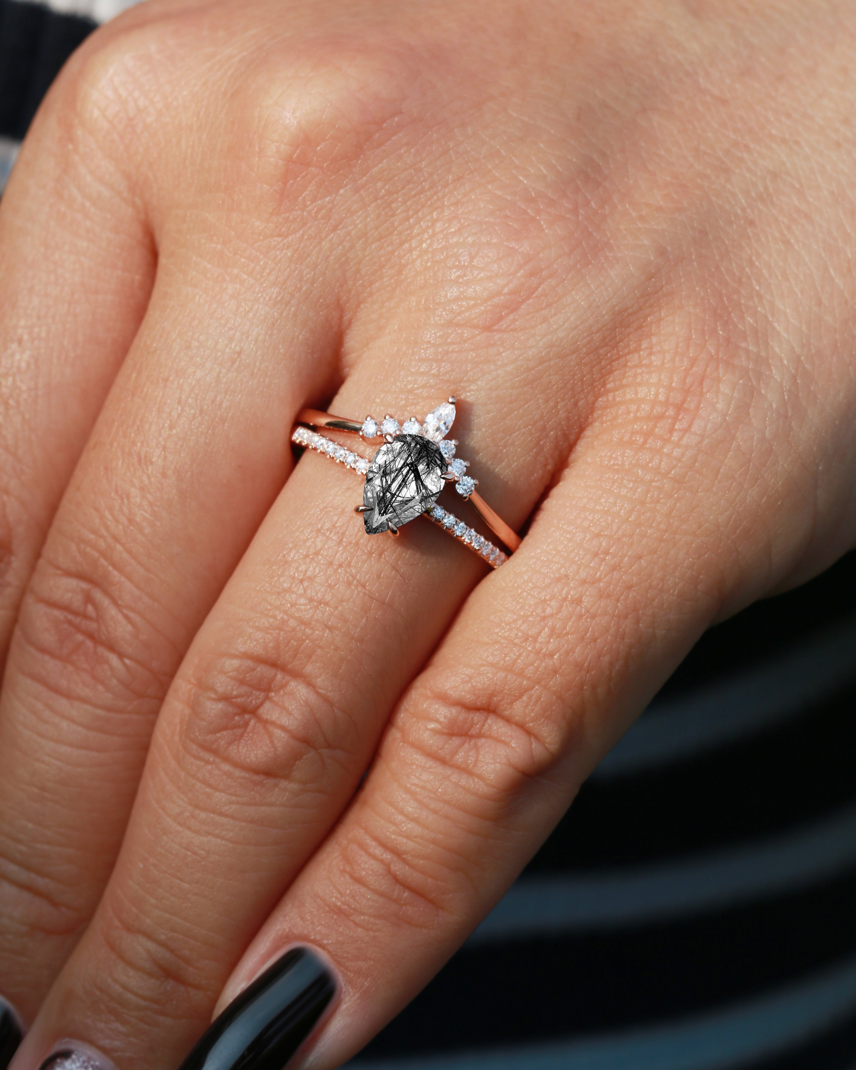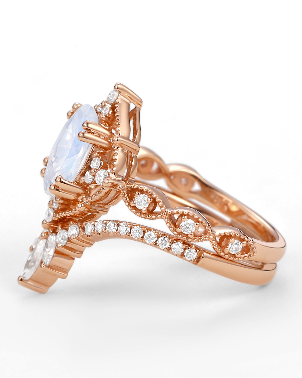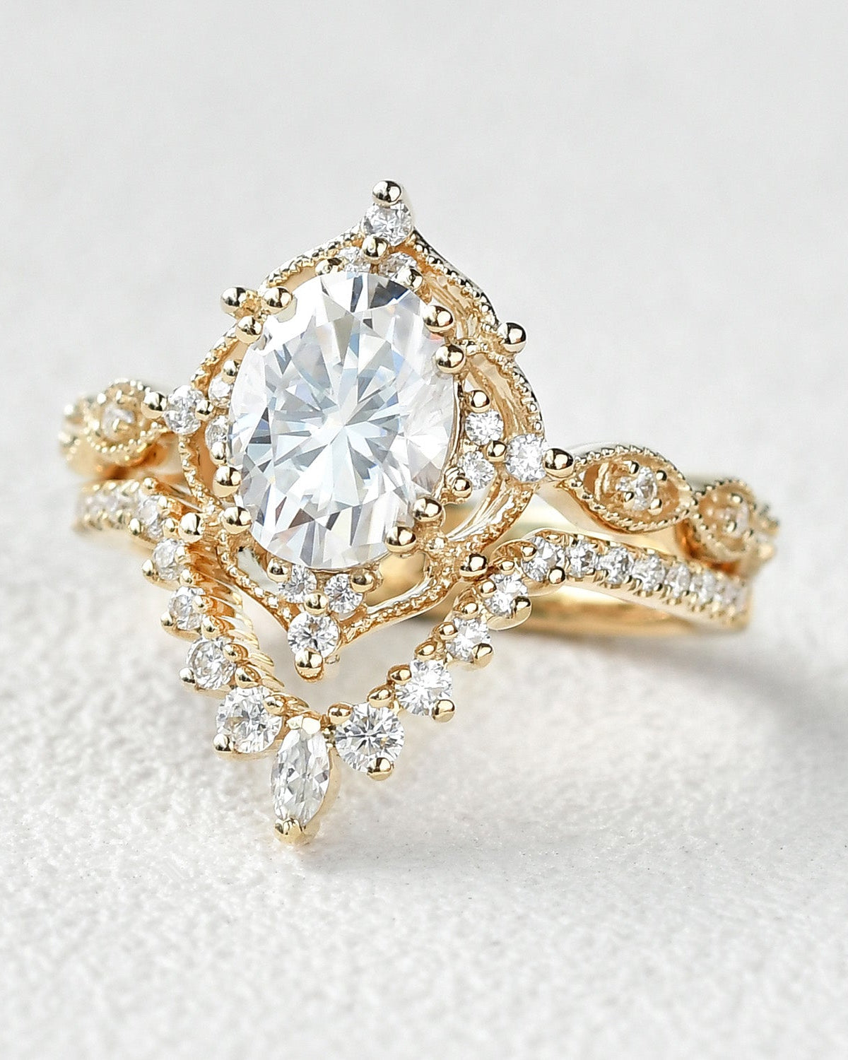 The Vintage Rings collection brings together exquisite rings in a vintage style, adding romance and elegance to your special moments. Each pear ring in this collection has been carefully designed, showcasing the charm of tradition and classic beauty while incorporating modern elements. Our moissanite vintage ring set is one of the highlights of this collection. Featuring high-quality moissanite as the main stone, these rings exude captivating brilliance and shimmer, making your engagement ring truly unique and eye-catching.