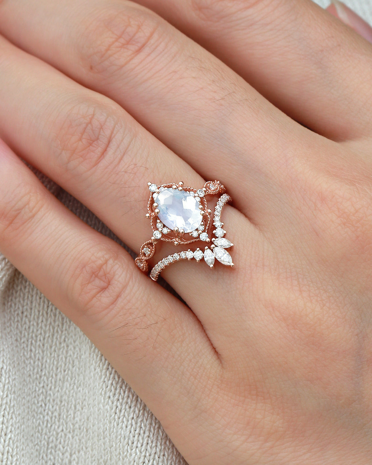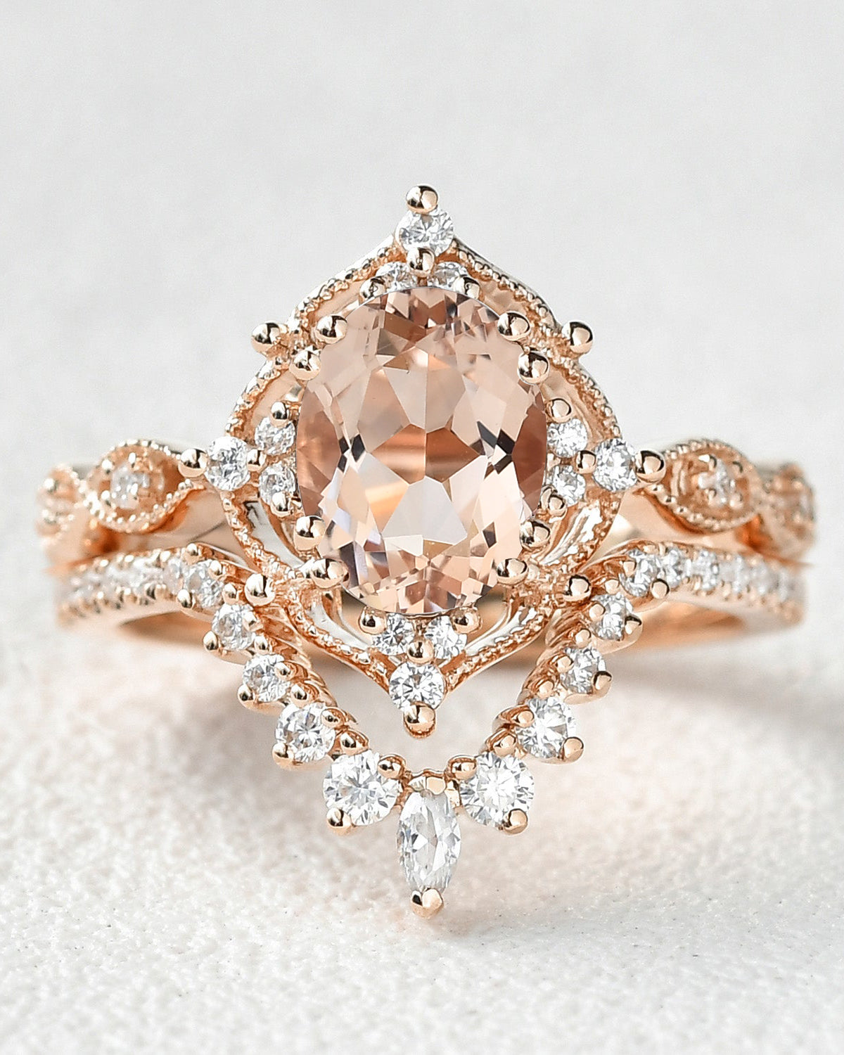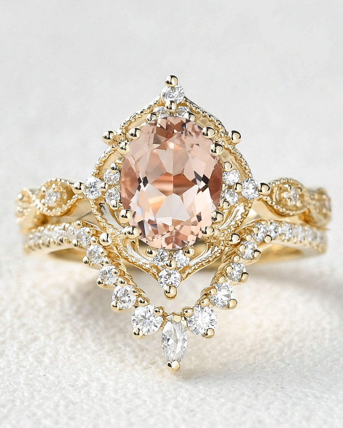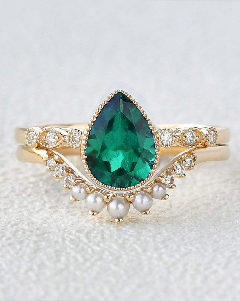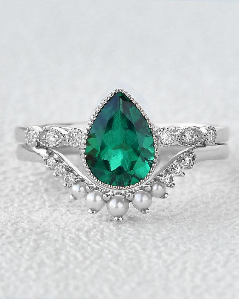 The Vintage Rings collection brings together exquisite rings in a vintage style, adding romance and elegance to your special moments. Each pear ring in this collection has been carefully designed, showcasing the charm of tradition and classic beauty while incorporating modern elements. Our moissanite vintage ring set is one of the highlights of this collection. Featuring high-quality moissanite as the main stone, these rings exude captivating brilliance and shimmer, making your engagement ring truly unique and eye-catching.