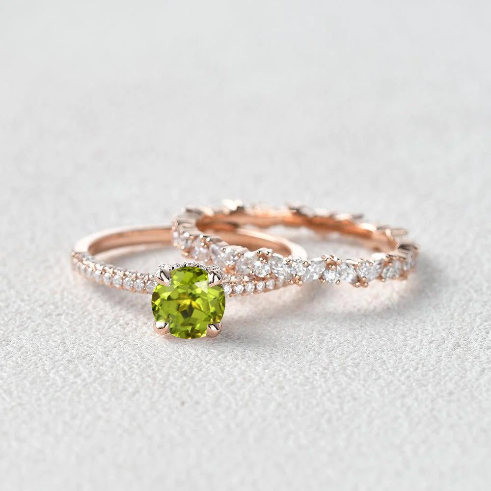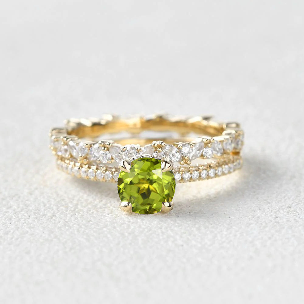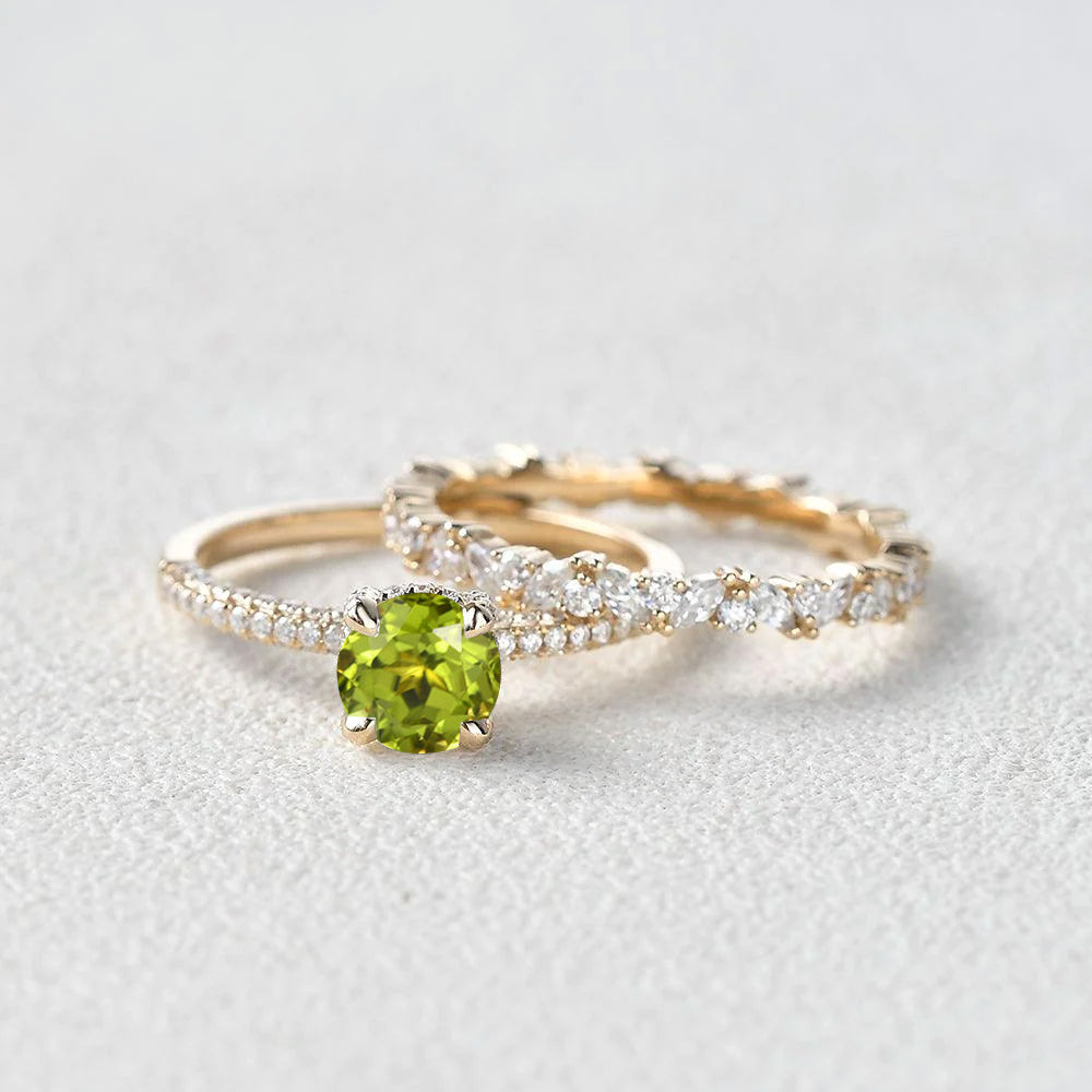 1.0ct Round Peridot Cluster Vintage Gold Ring Set 2pcs