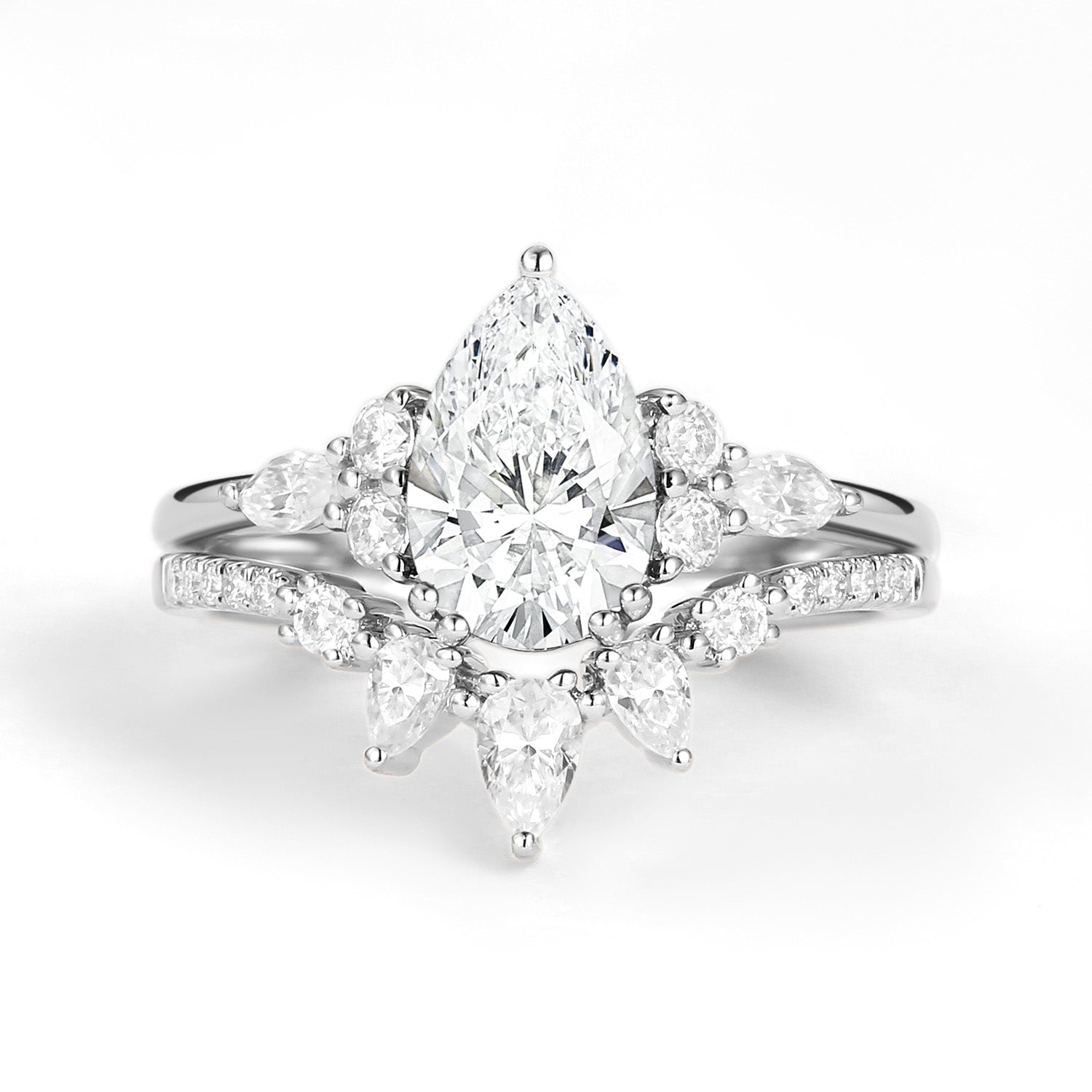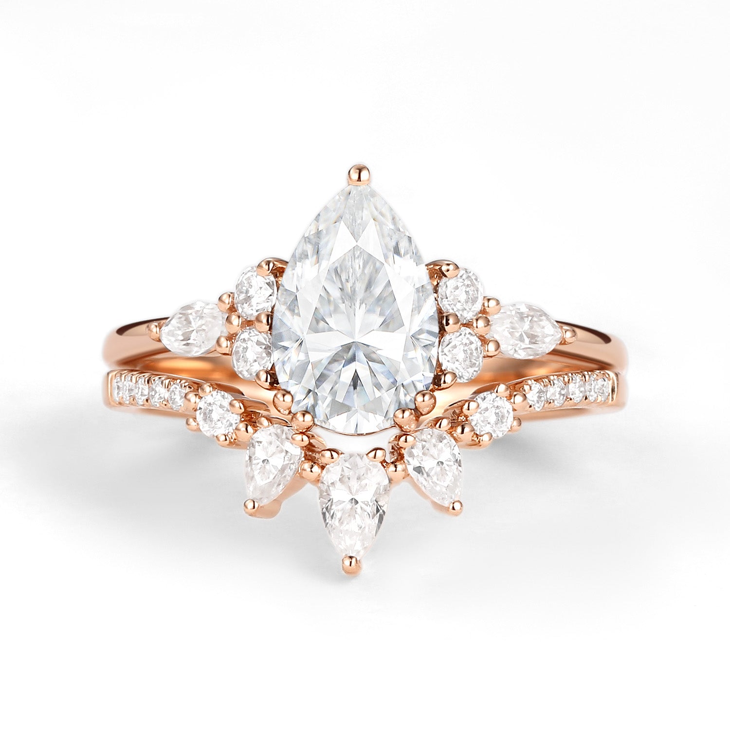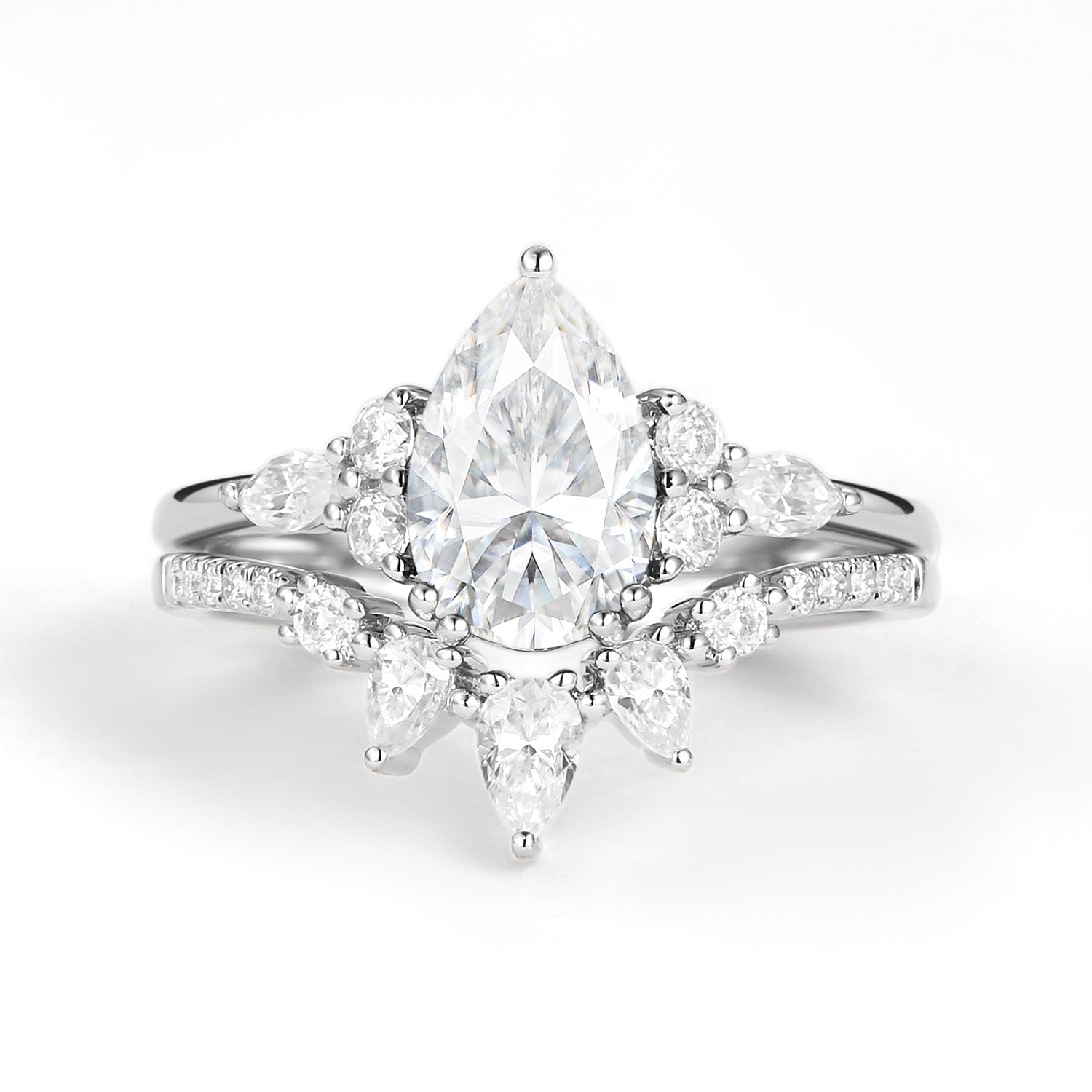 1.5ct Pear Shaped Moissanite Gold Ring Set 2pcs - Sage
