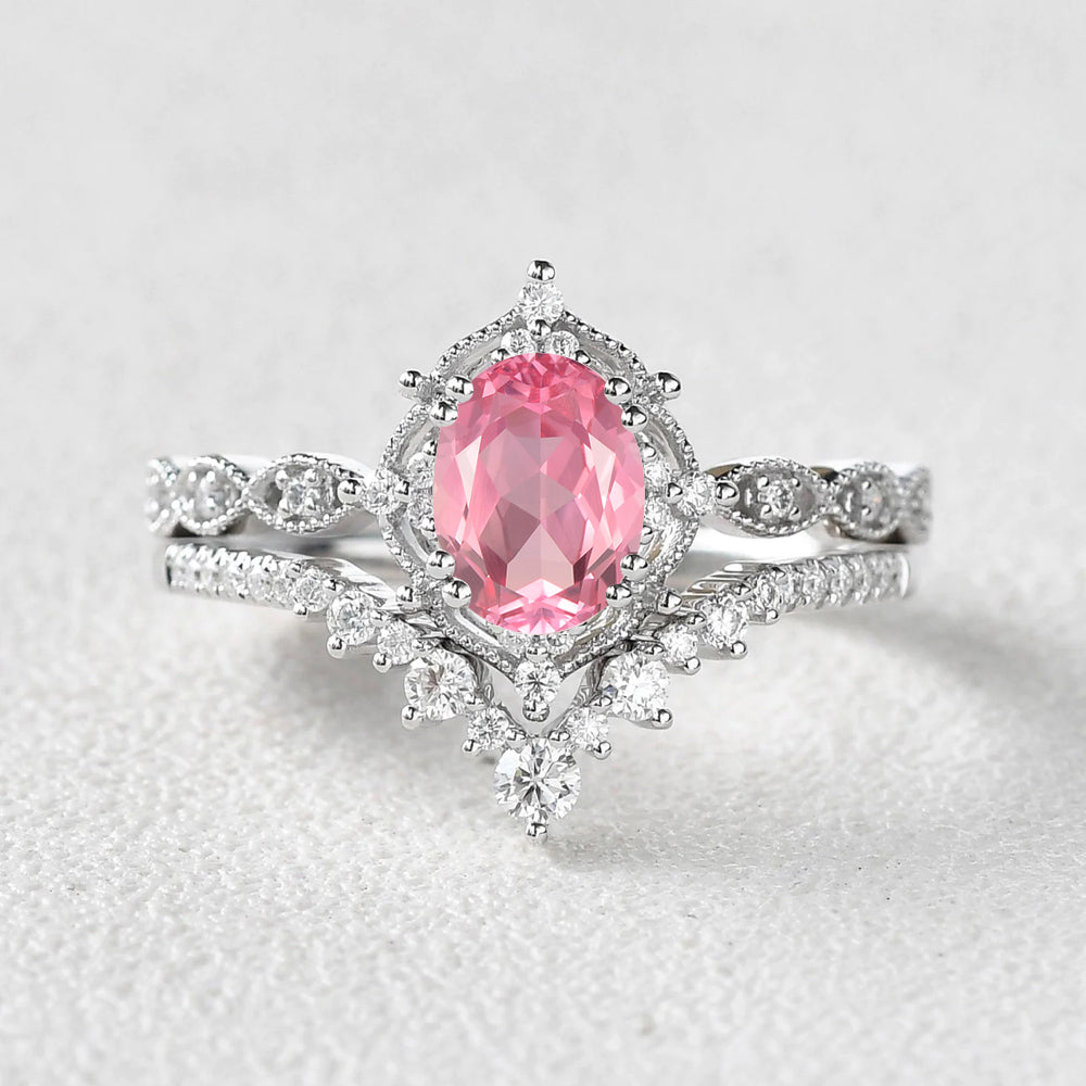 1.5ct Padparadscha Sapphire Signature Vintage Ring Set 2pcs - Charlotte