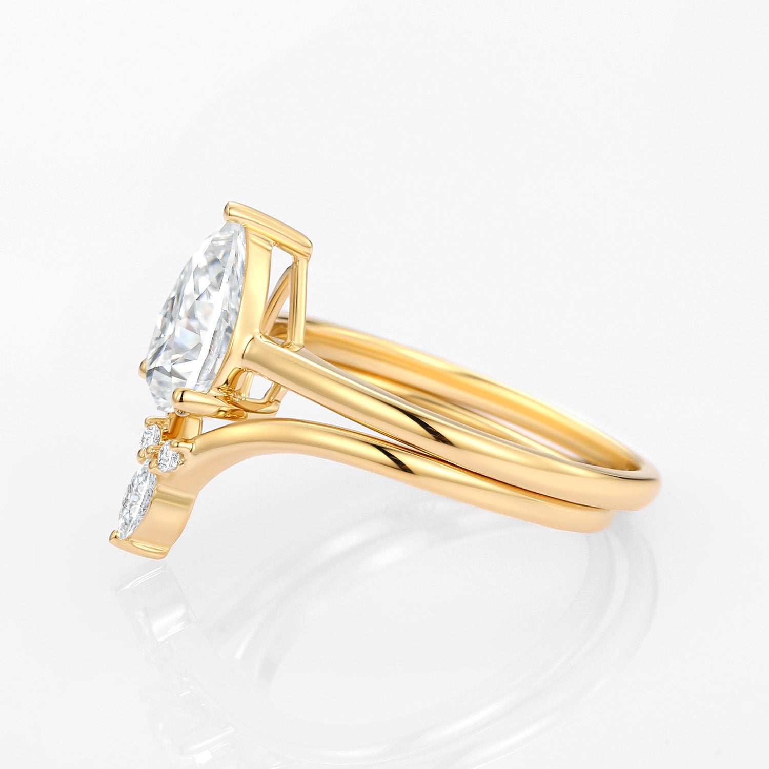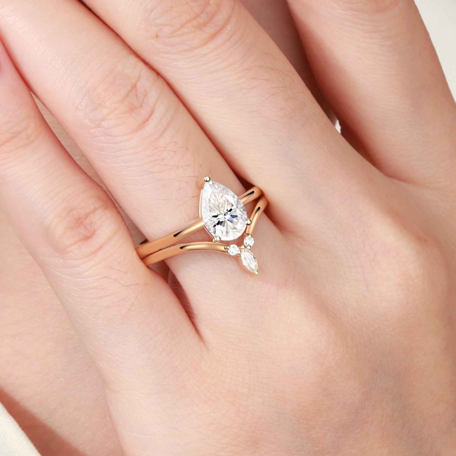 Felicegals Pear Shaped Moissanite Solitaire Ring Bridal Set Moissanite Engagement Rose Gold Ring Minimalist Curved Stacking Wedding Band Gift For Her