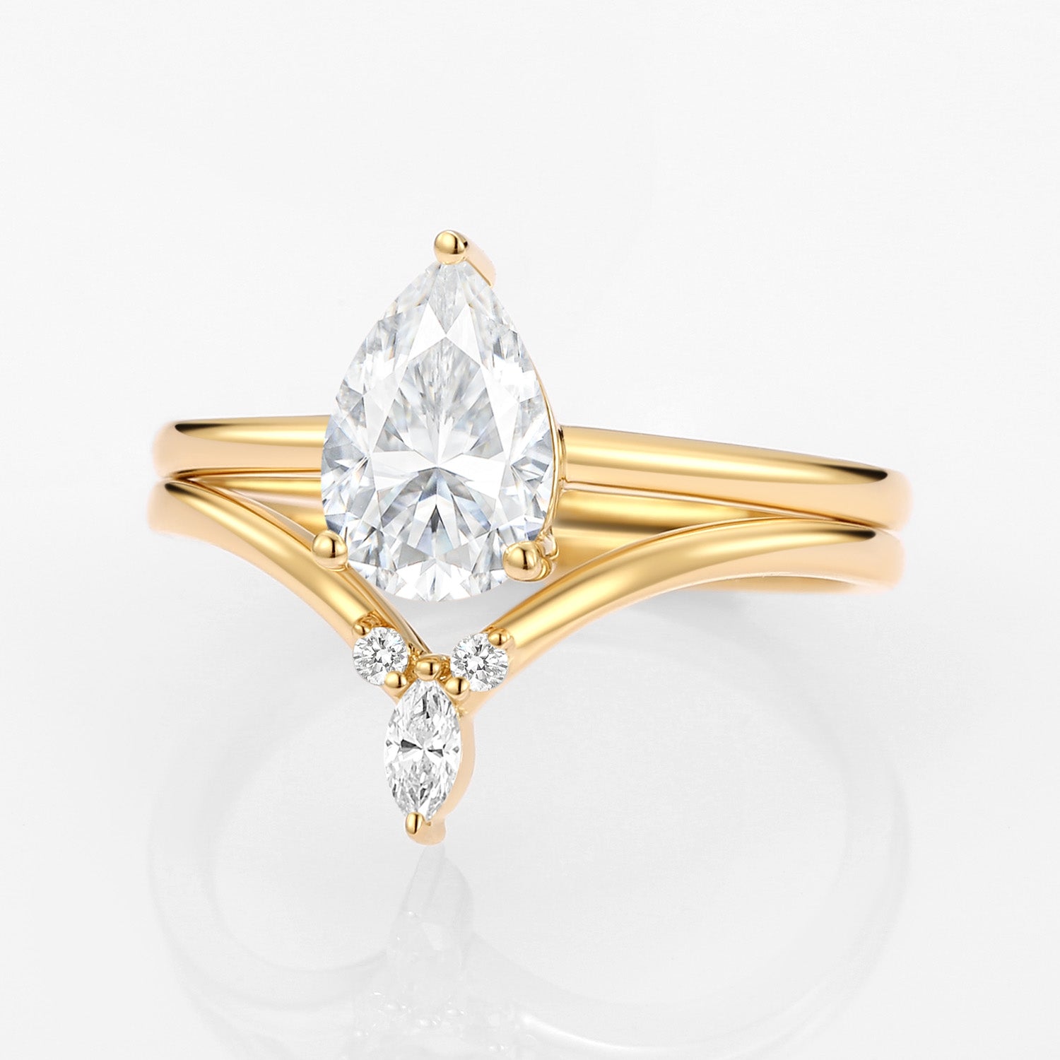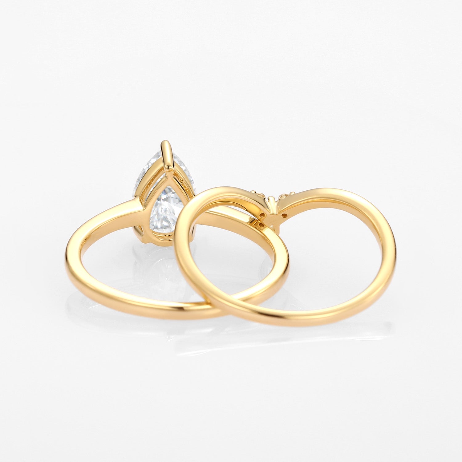 2.0ct Pear Moissanite Classic Solitaire Ring Set 2pcs