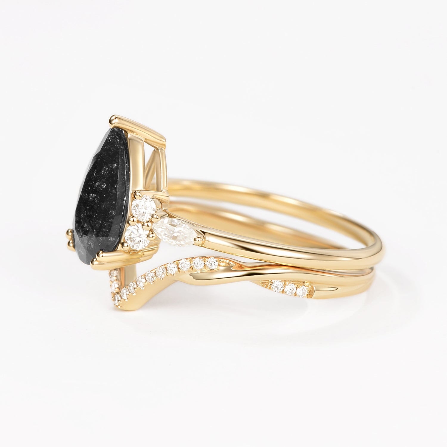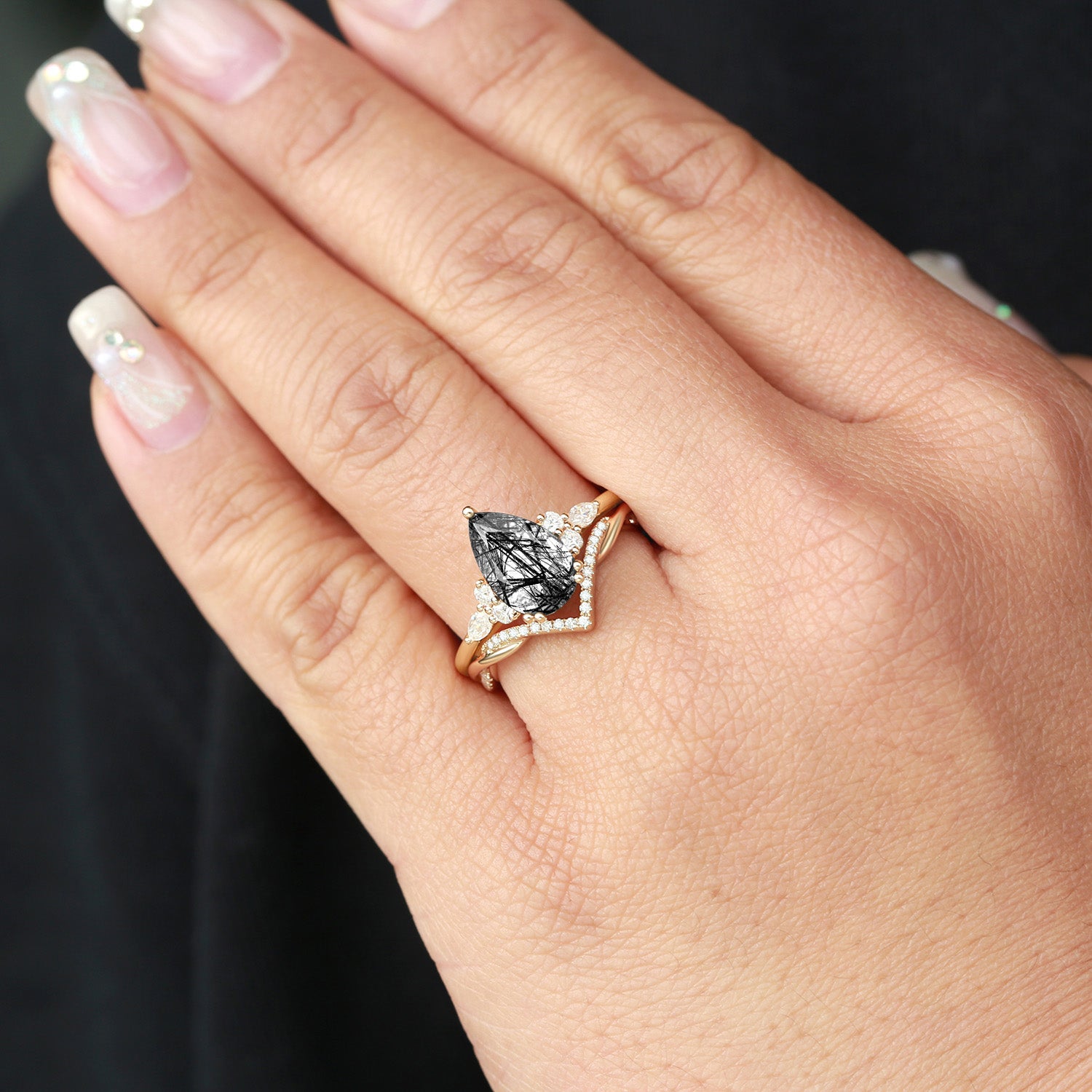 Felicegals 2.0CT Pear Shaped Black Rutilated Quartz Infinity Stacking Ring Set 2pcs Gift for her Anniversary Gift Gemstone
