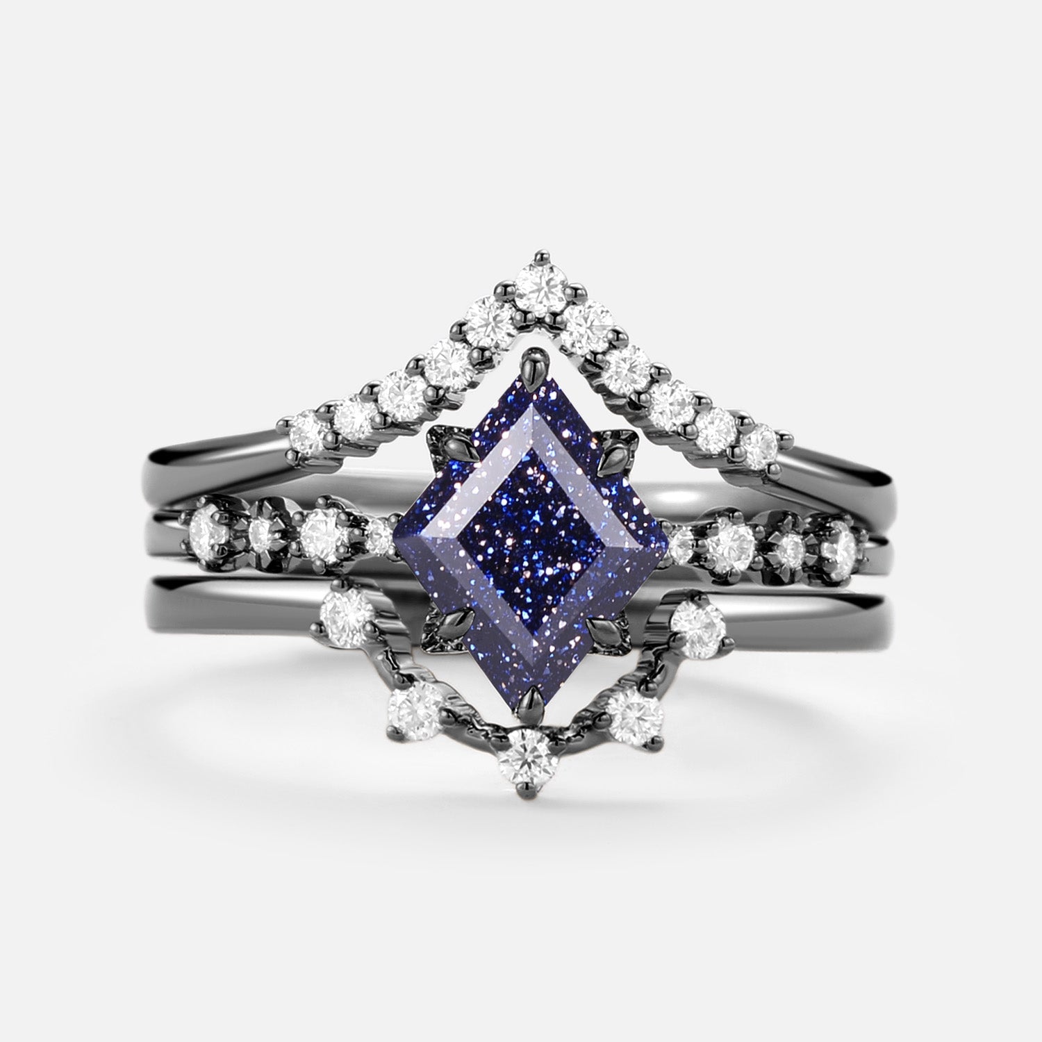 Blue Sandstone & Moissanite Ring Set 3pcs - Violet