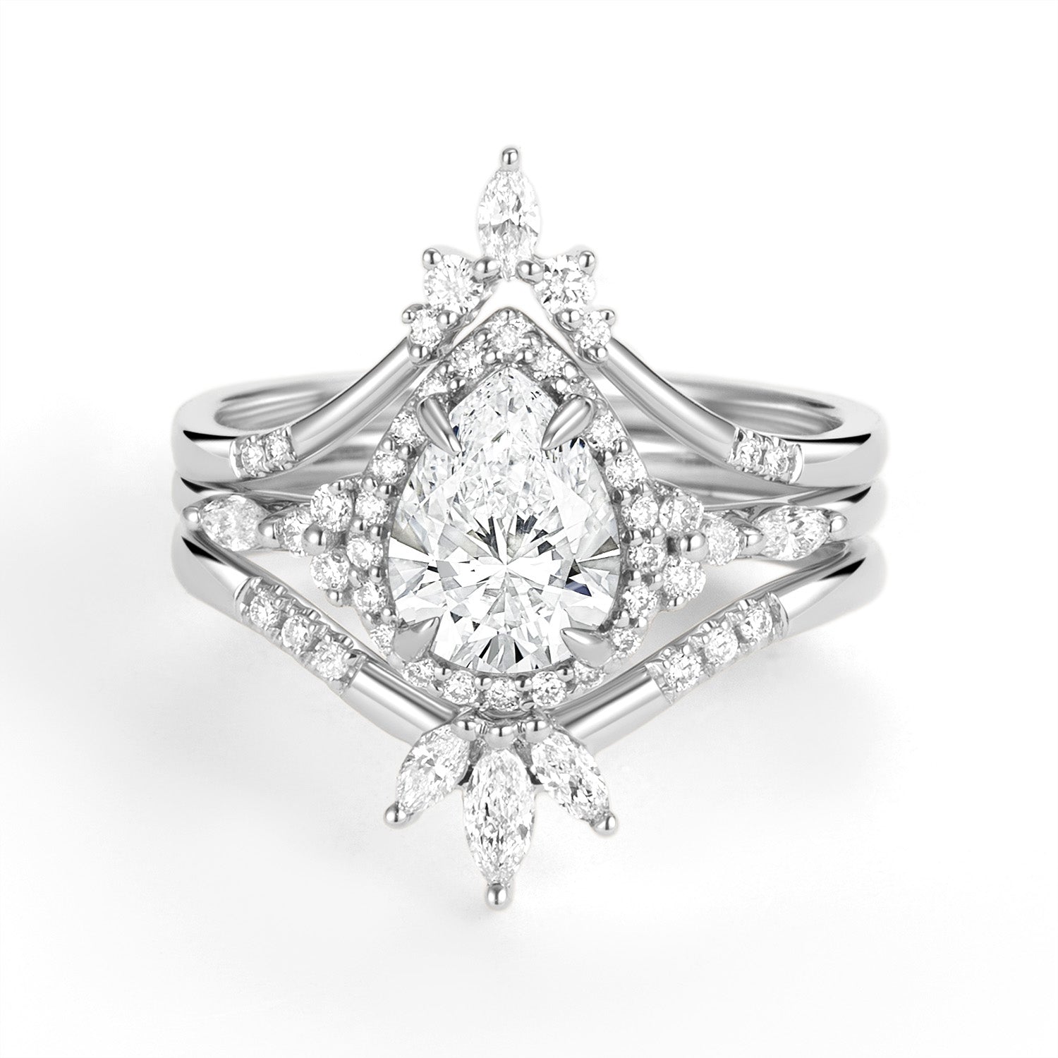 Halo Pear Lab Grown Diamond Engagement Ring Sets 3pcs