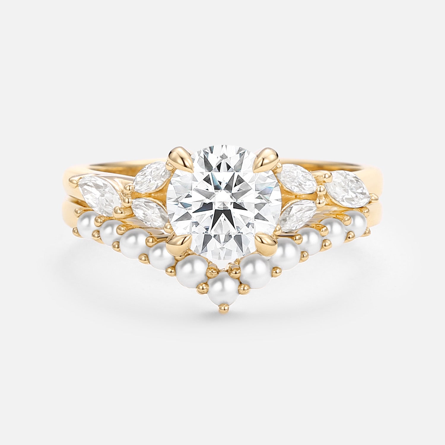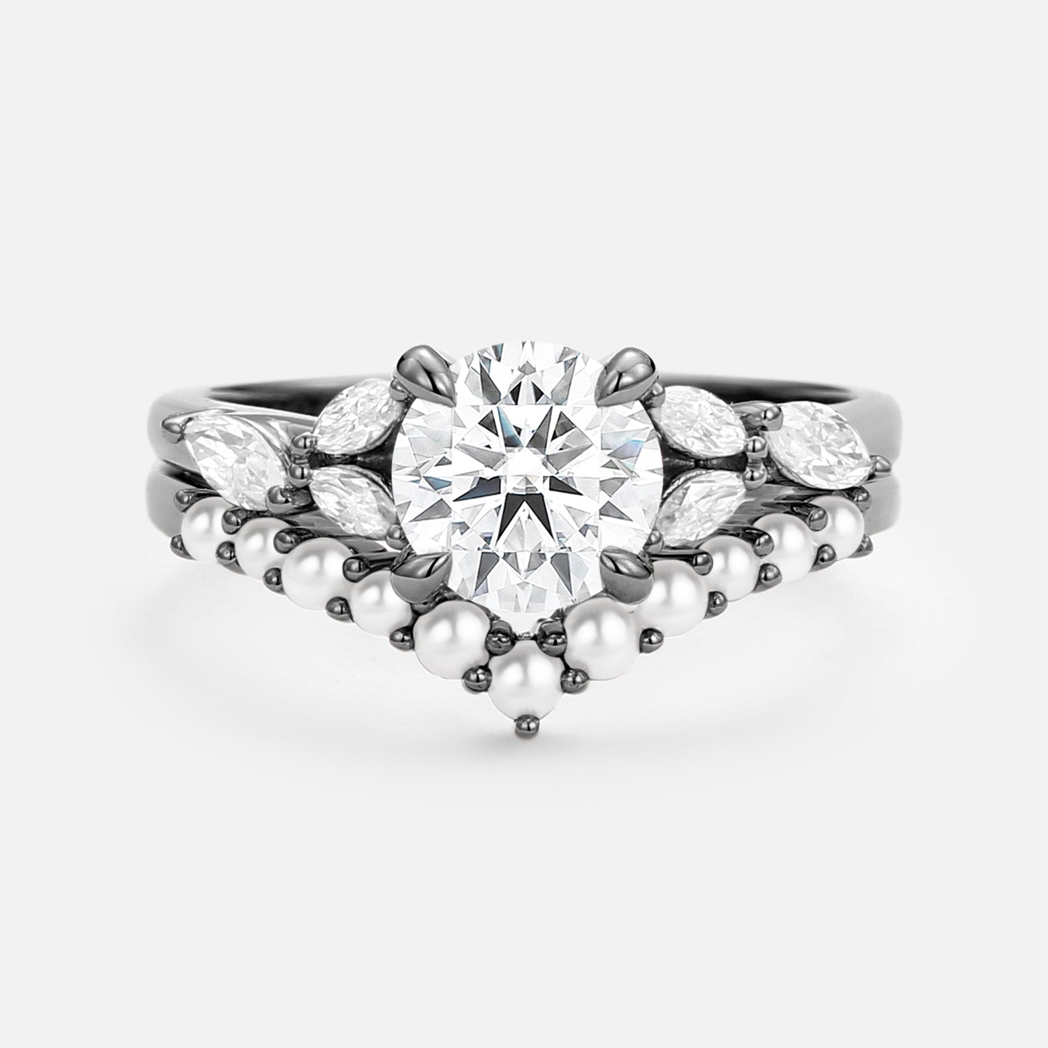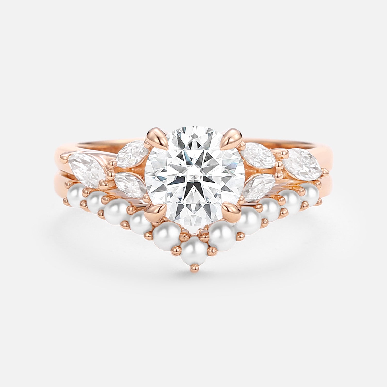 Moissanite & Pearl Rose Gold Ring Set 2pcs