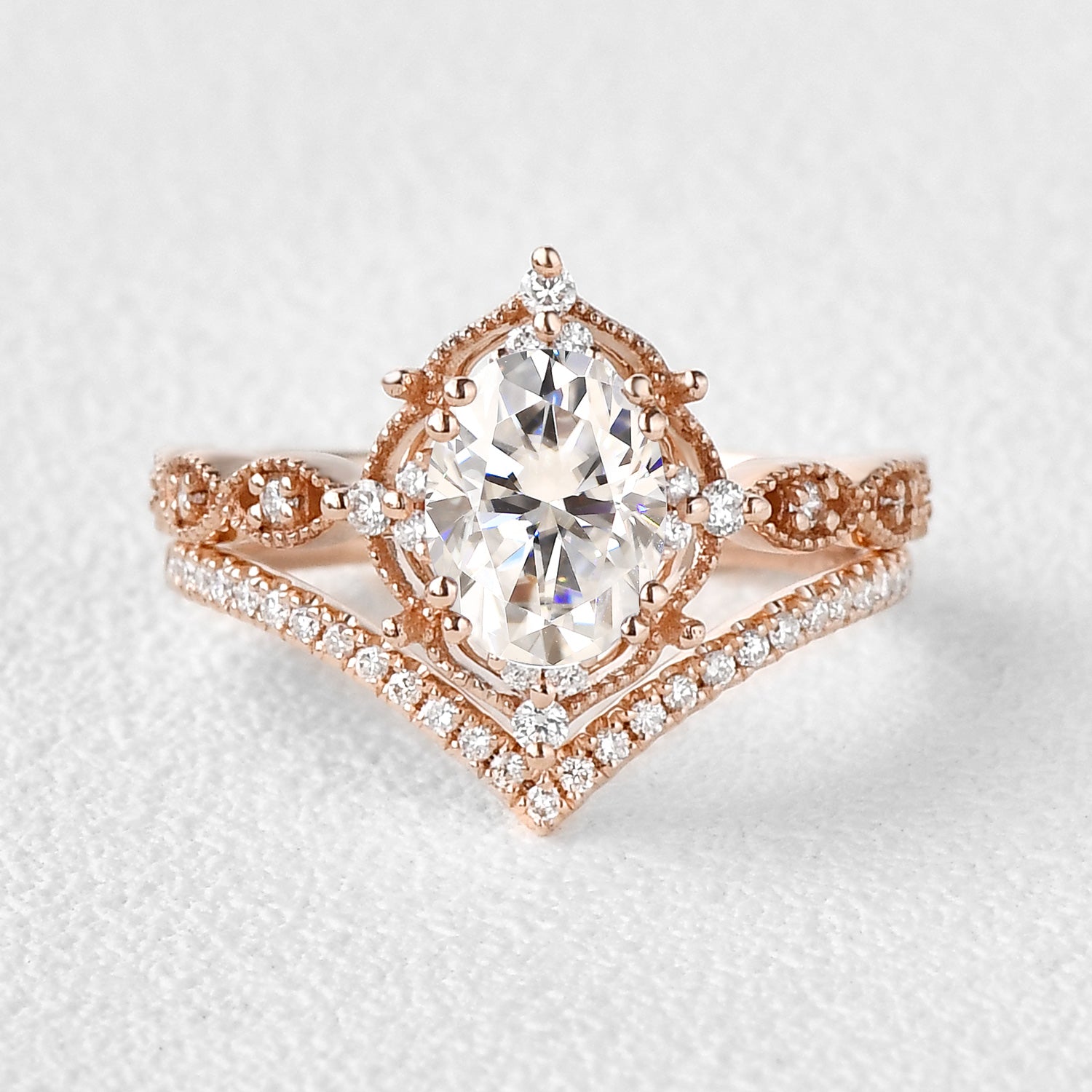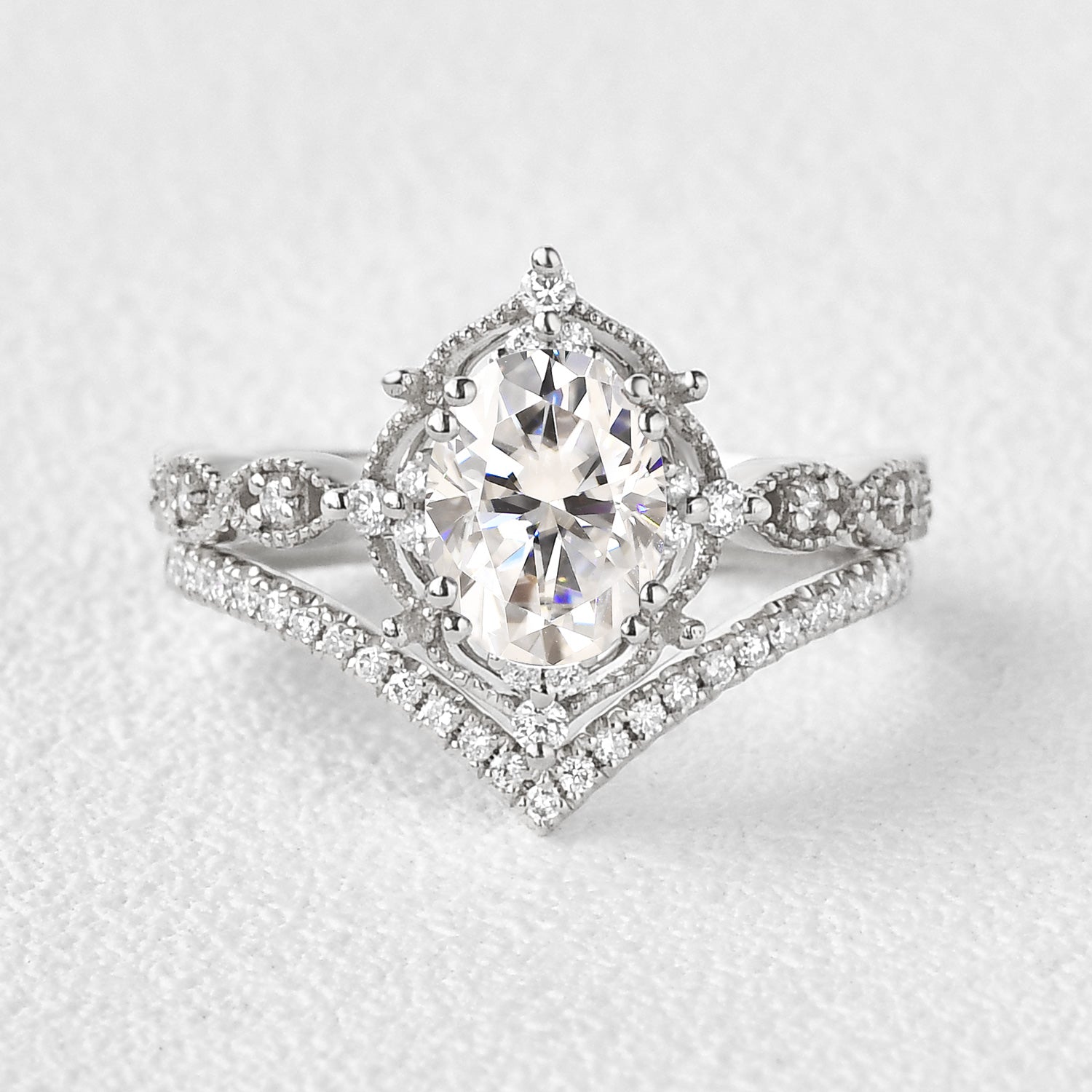 1.5ct Signature Oval Vintage Ring Set 2pcs - Adalee