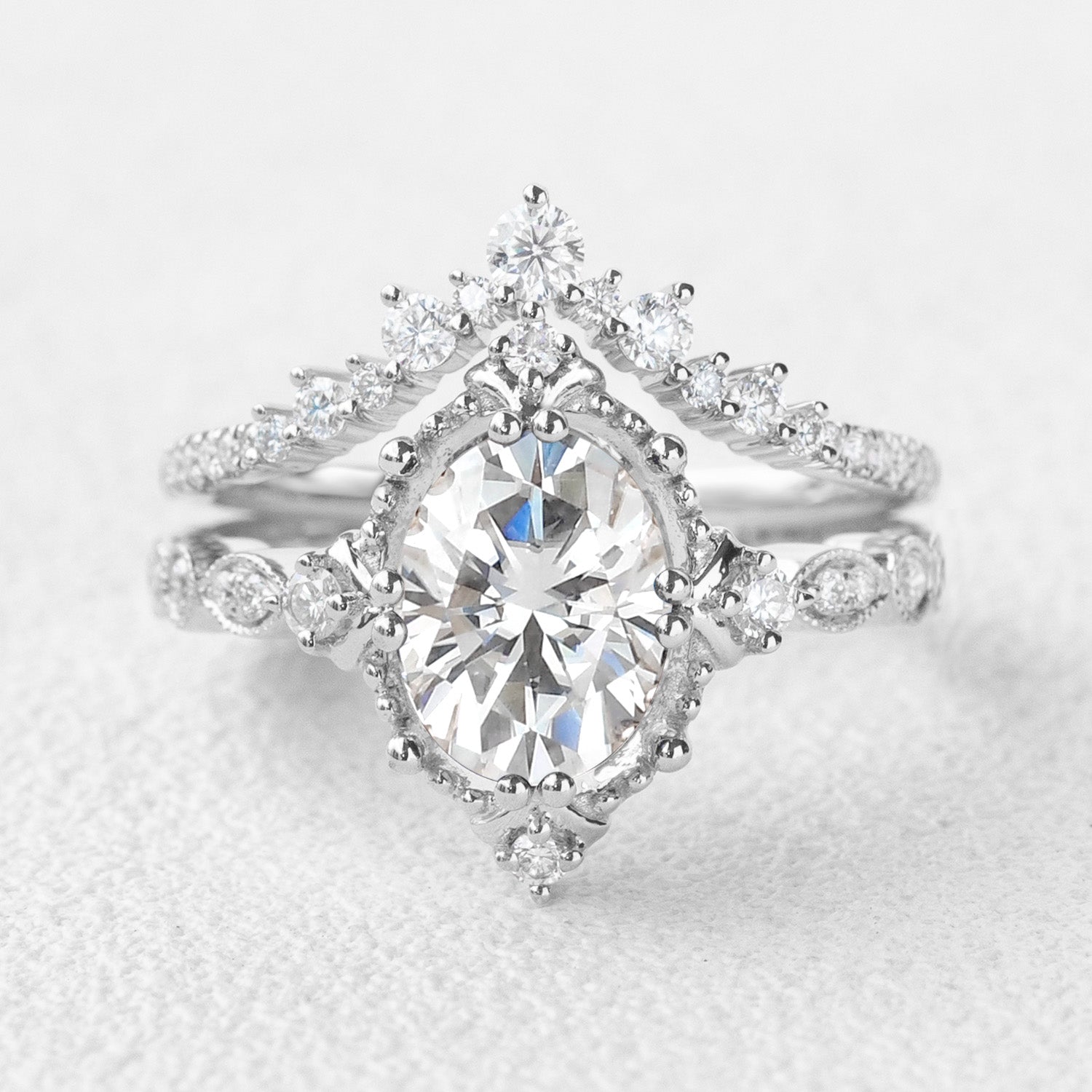 Oval Cut Moissanite Art Deco Ring Set 2pcs