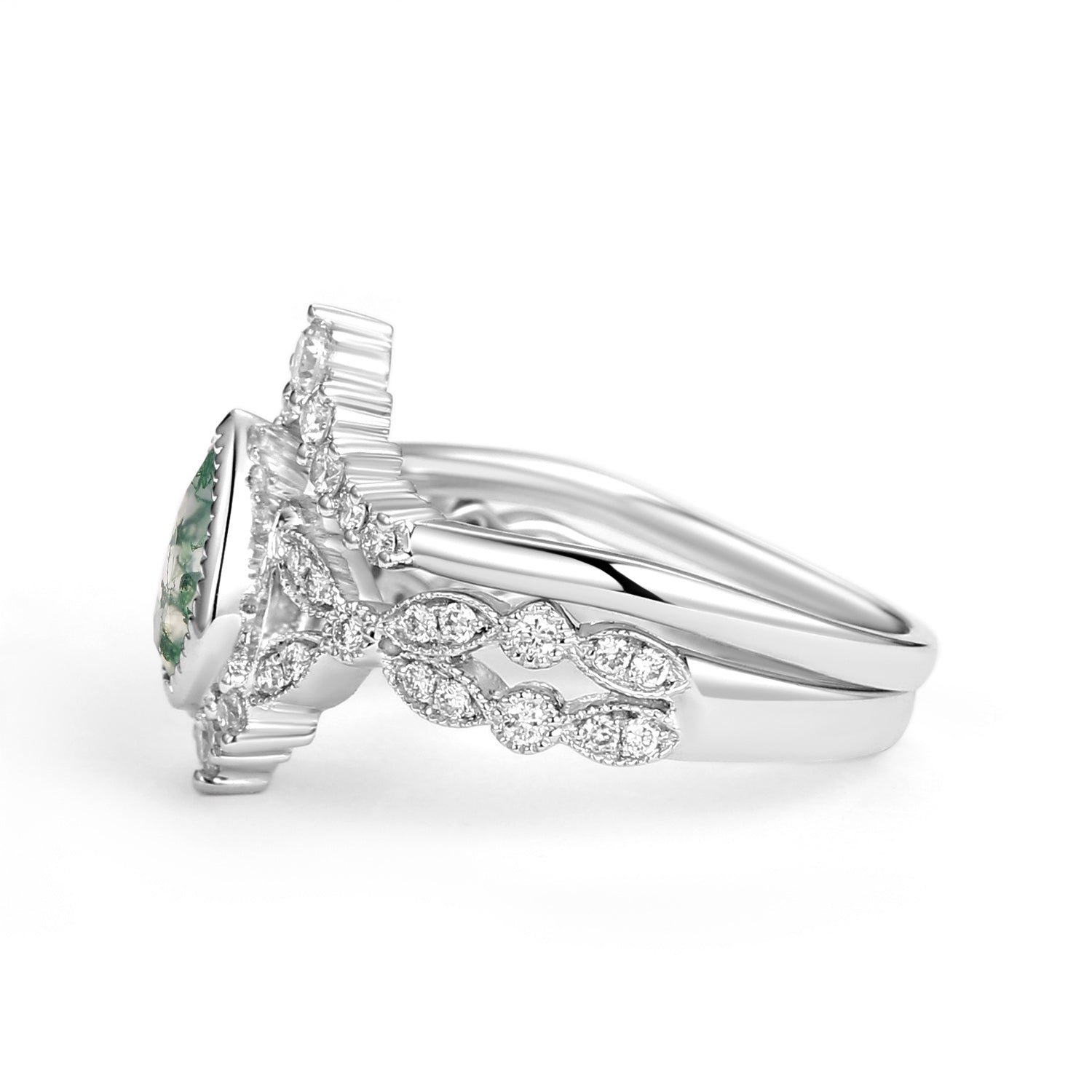 Pear Moss Agate Vintage Infinity Ring Set 2pcs - Vivienne