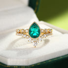 Pear Shaped Lab Emerald Rose Gold Ring Set 2pcs
