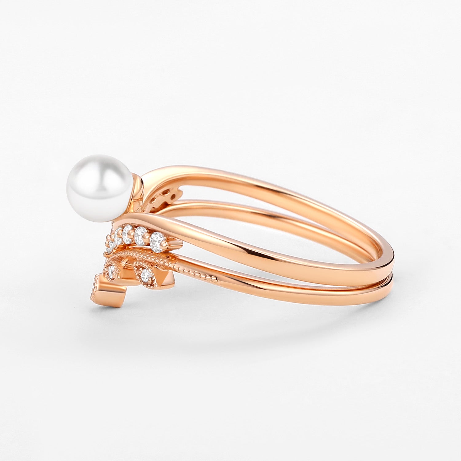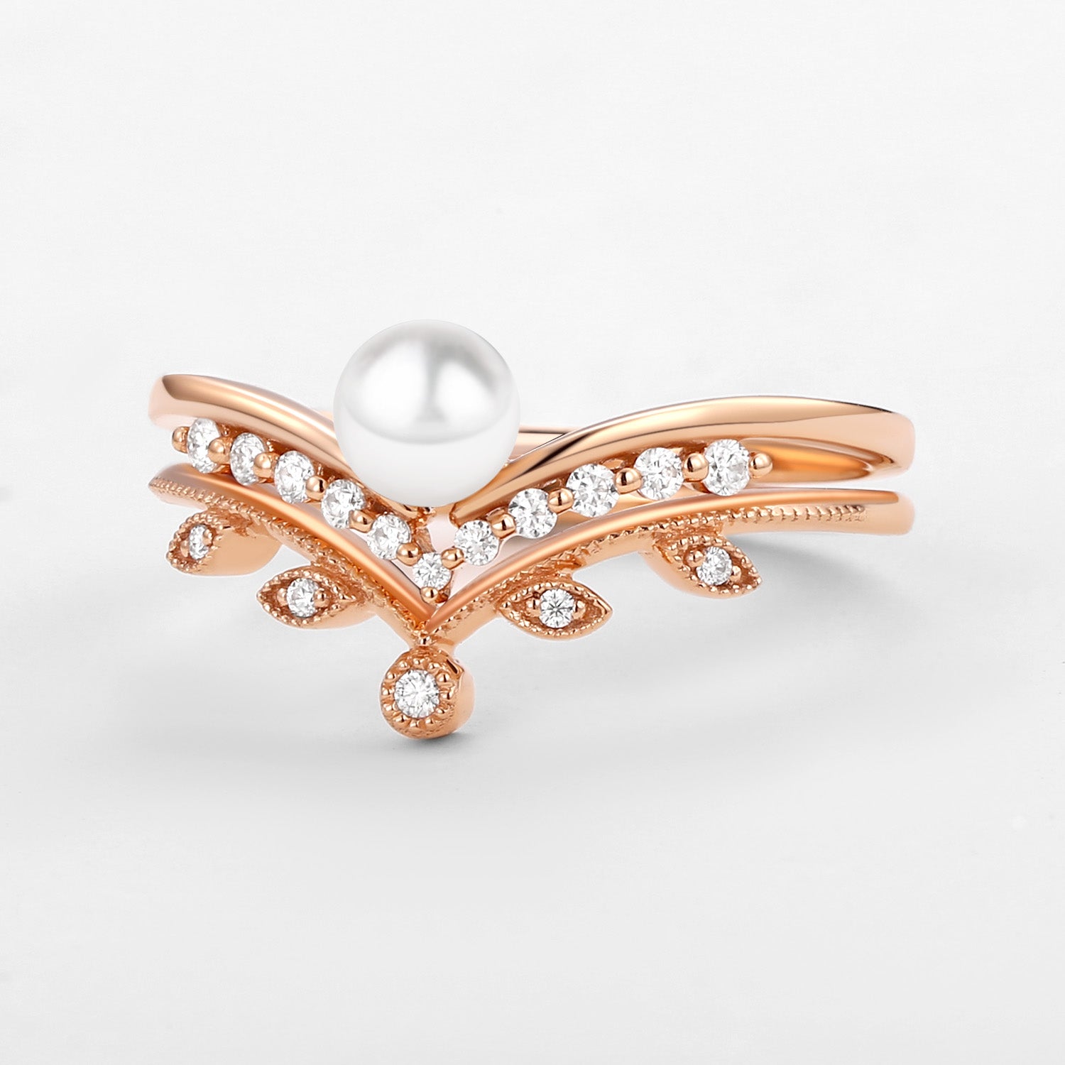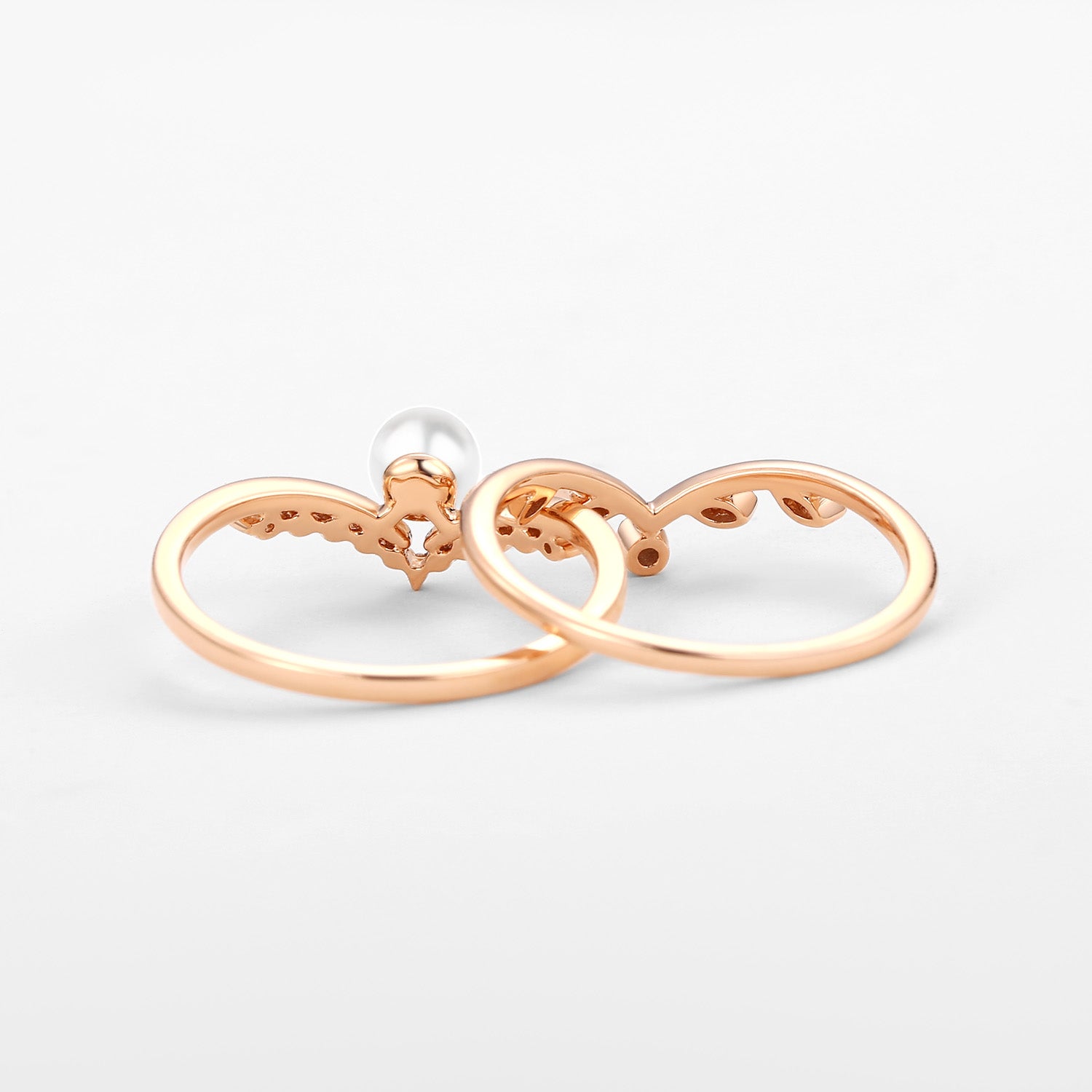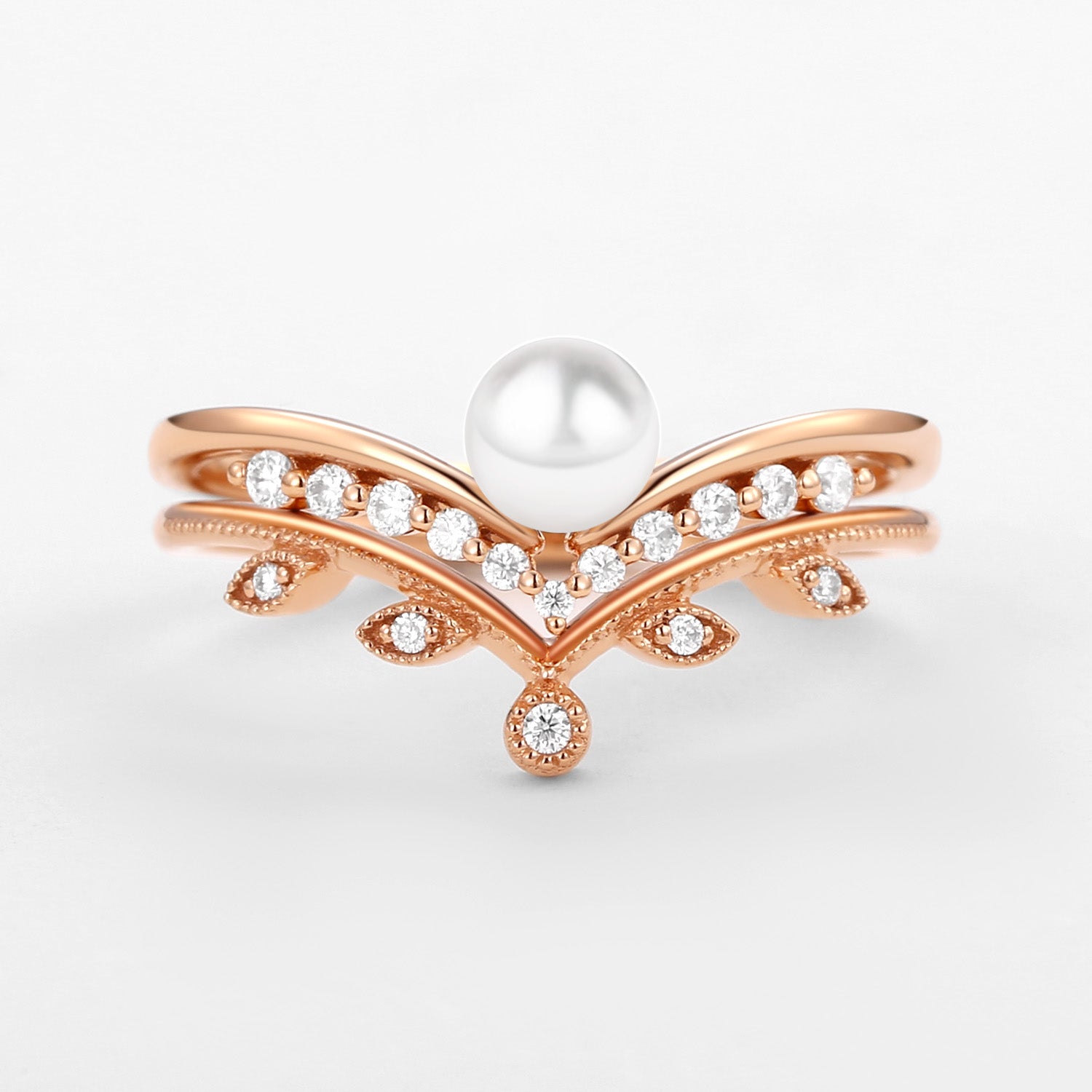 Pearl Bridal Set 2pcs Rose Gold Ring