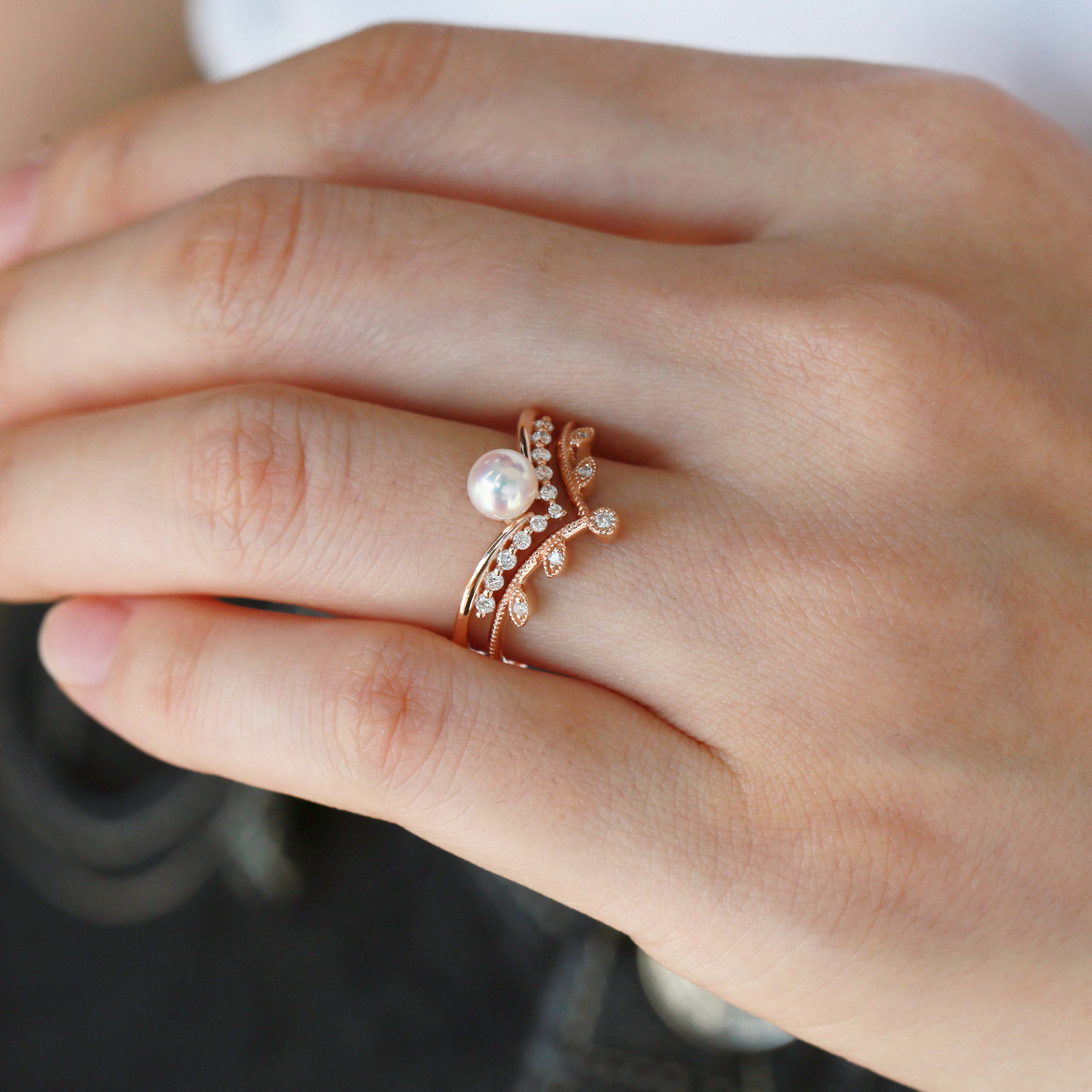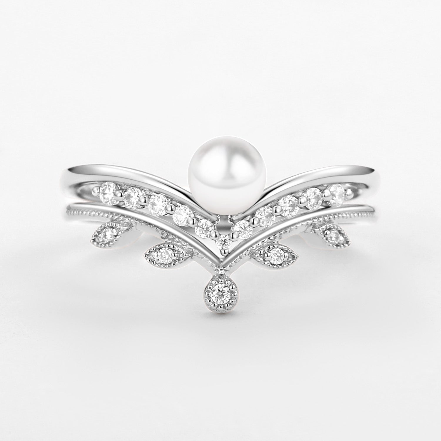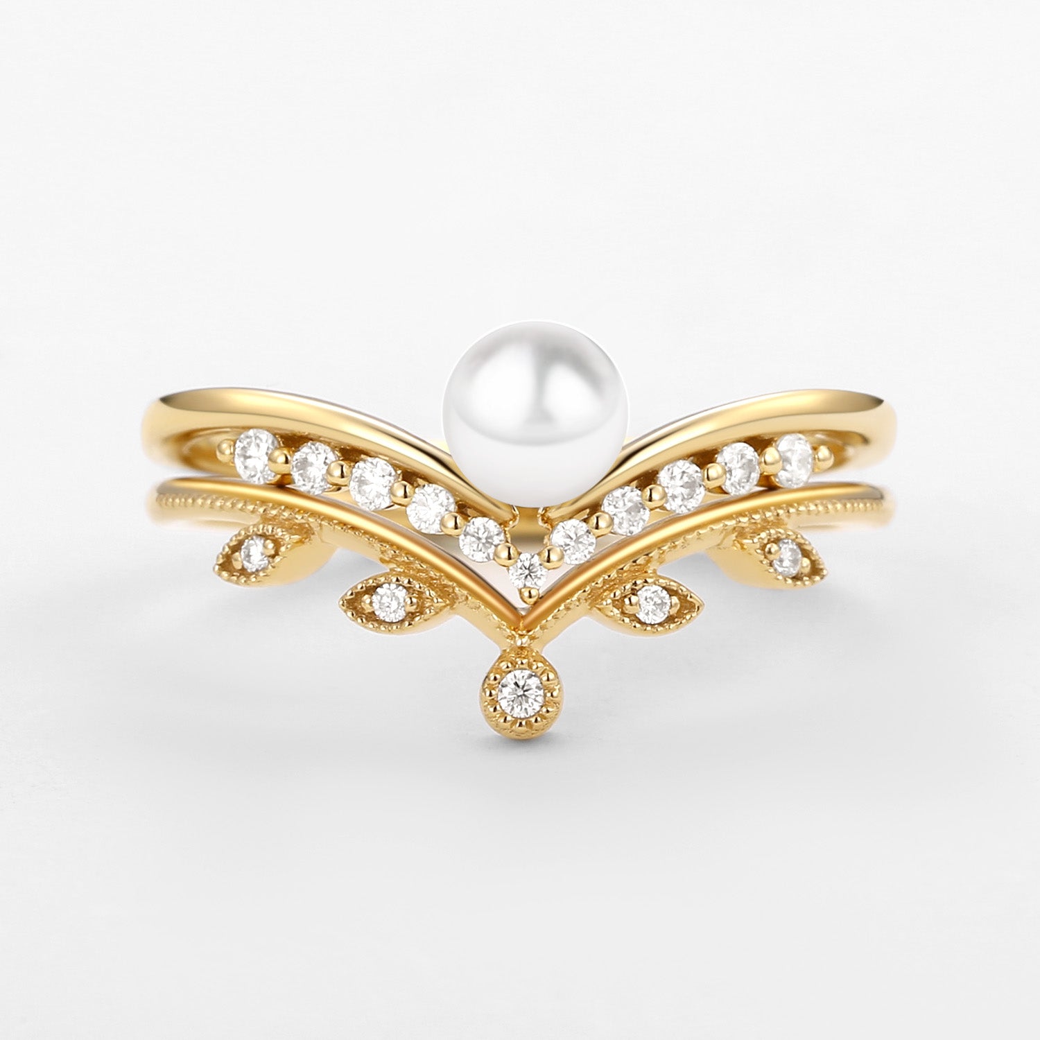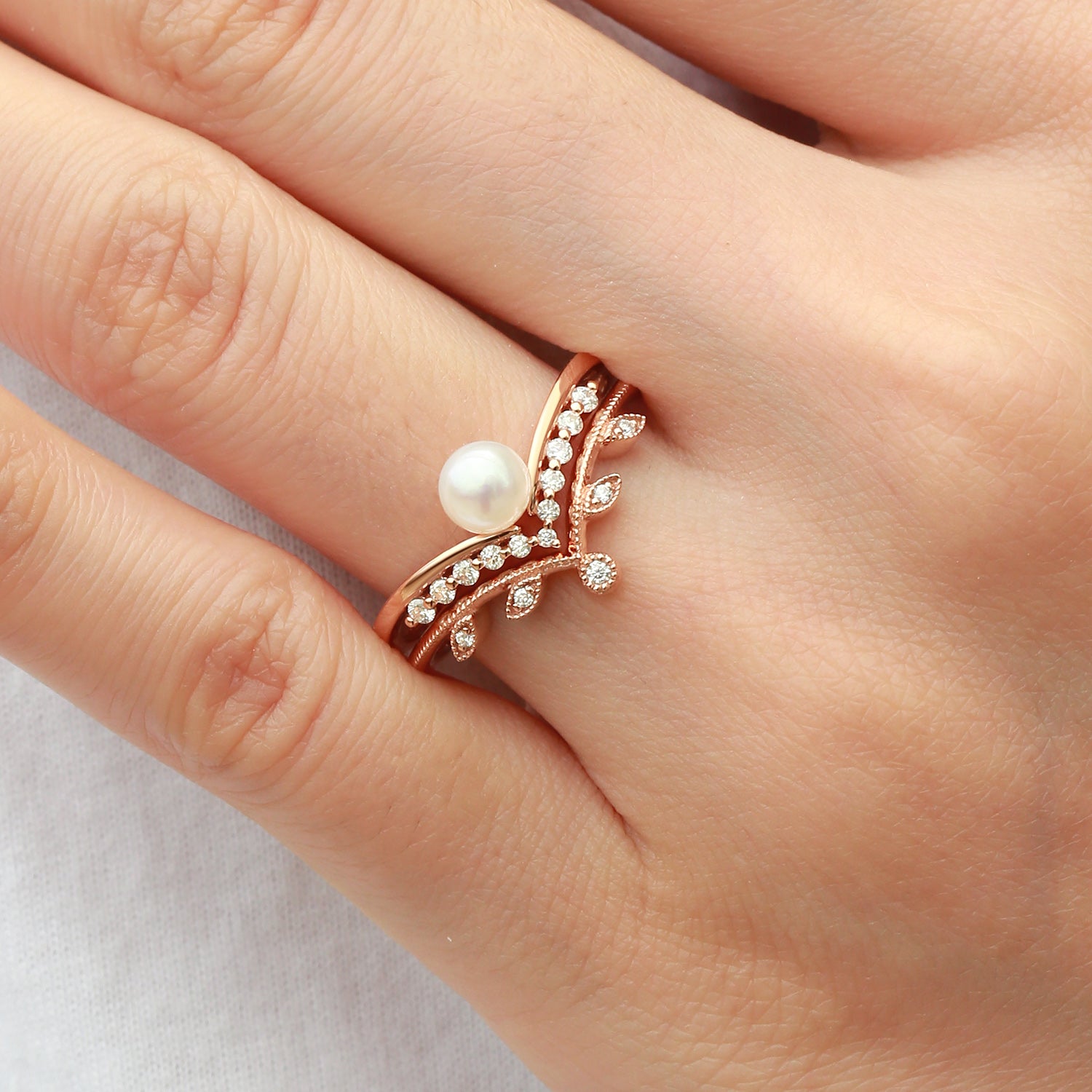 Pearl Bridal Set 2pcs Rose Gold Ring