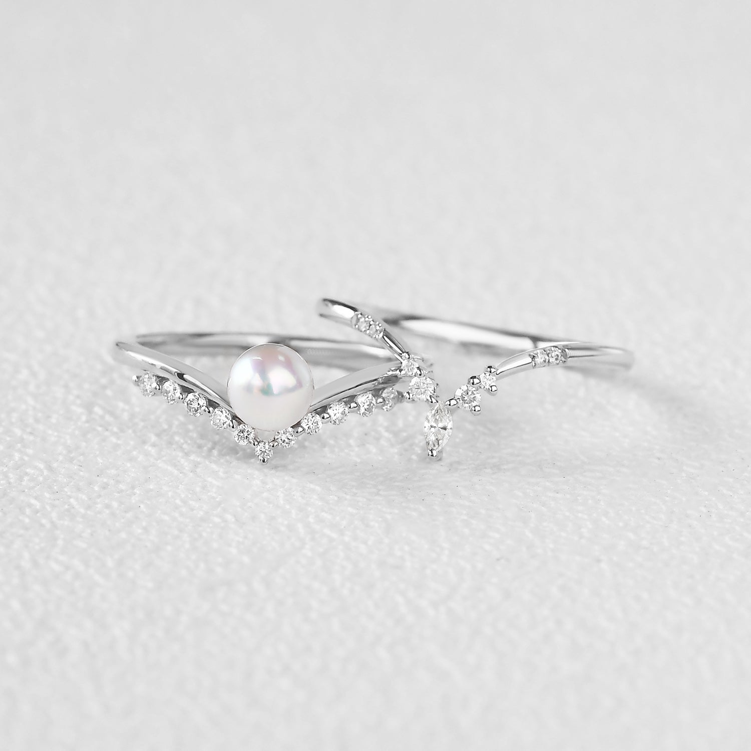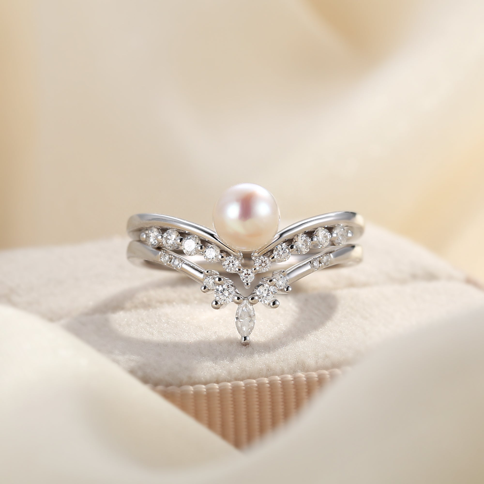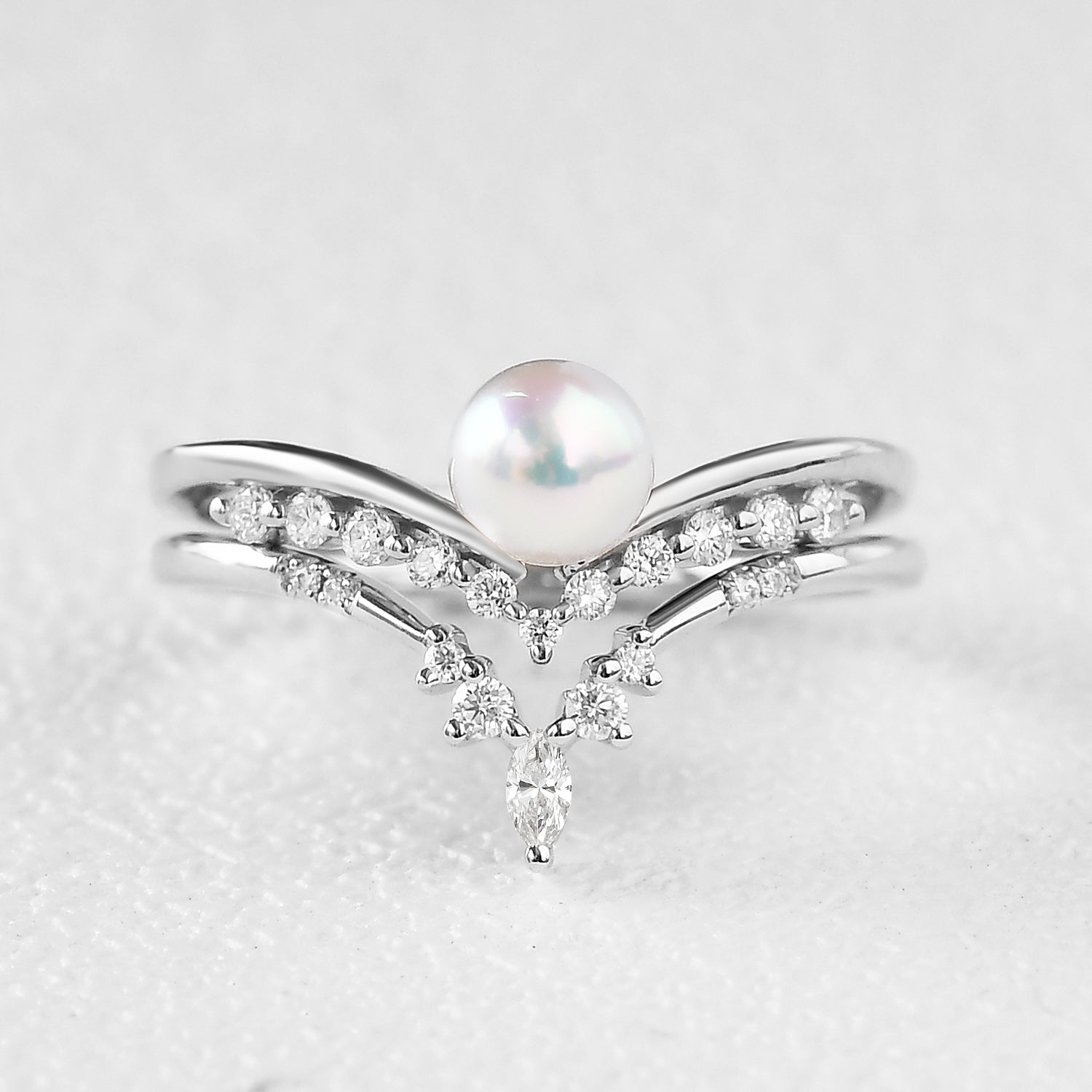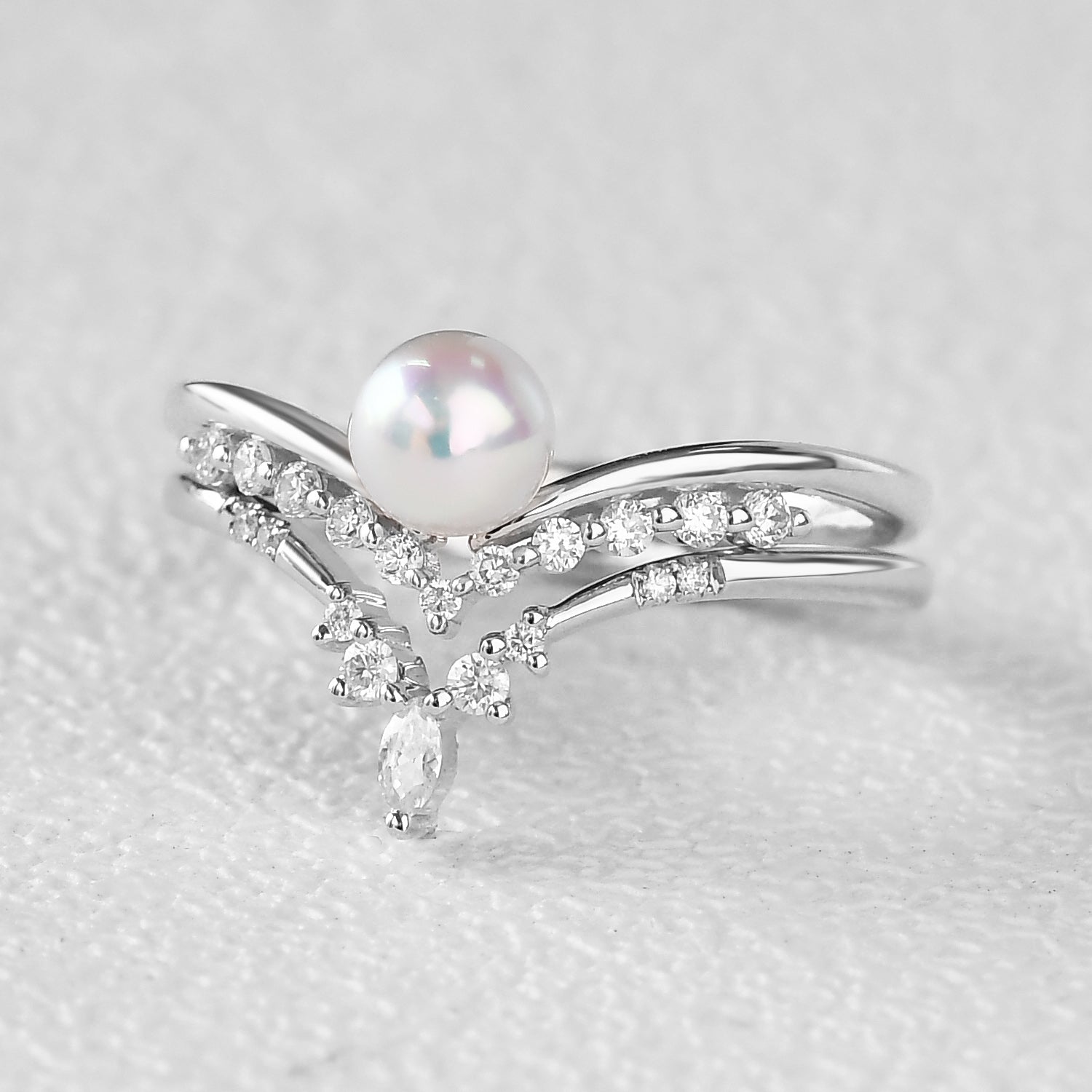 Pearl Engagement Ring Set 2pcs White Gold Ring
