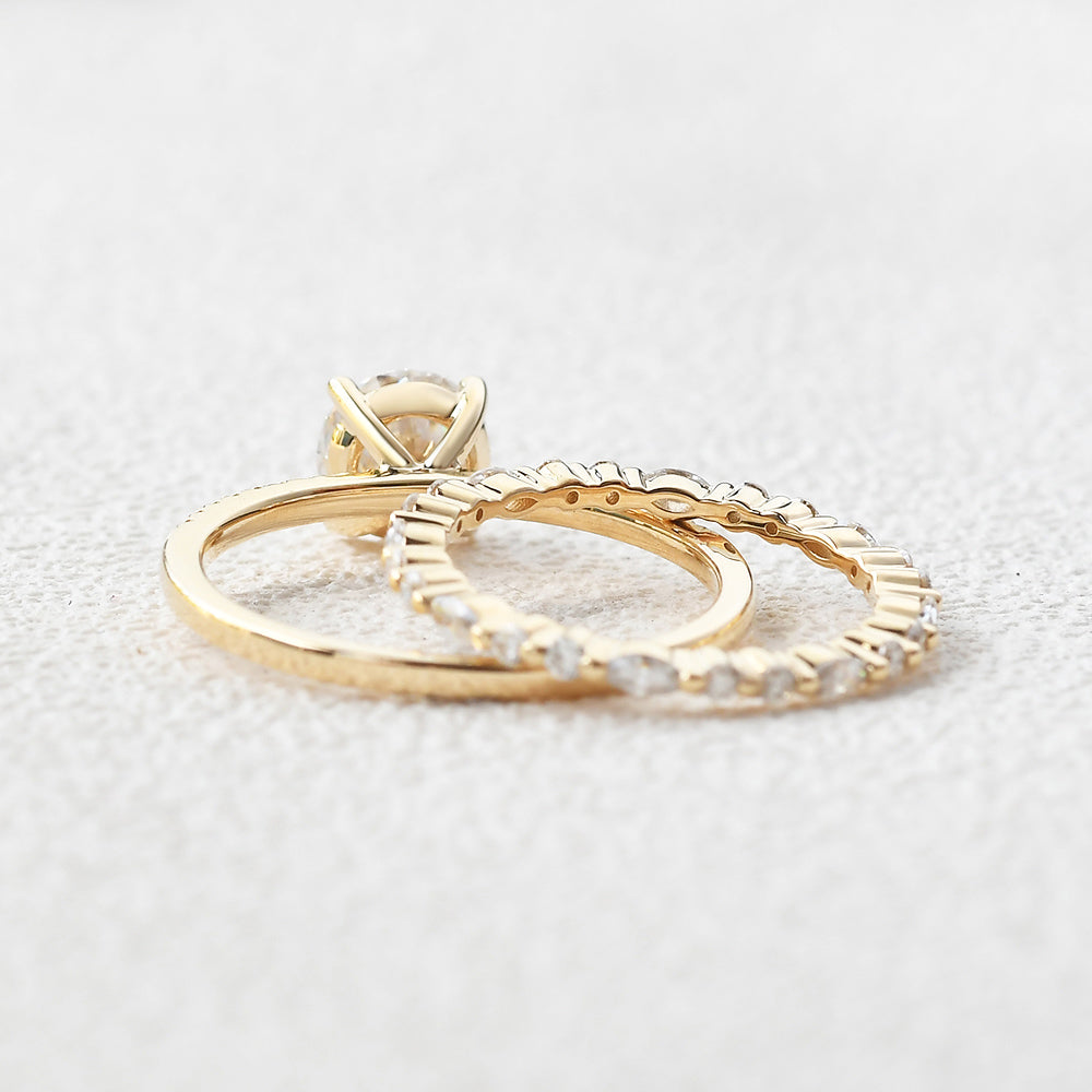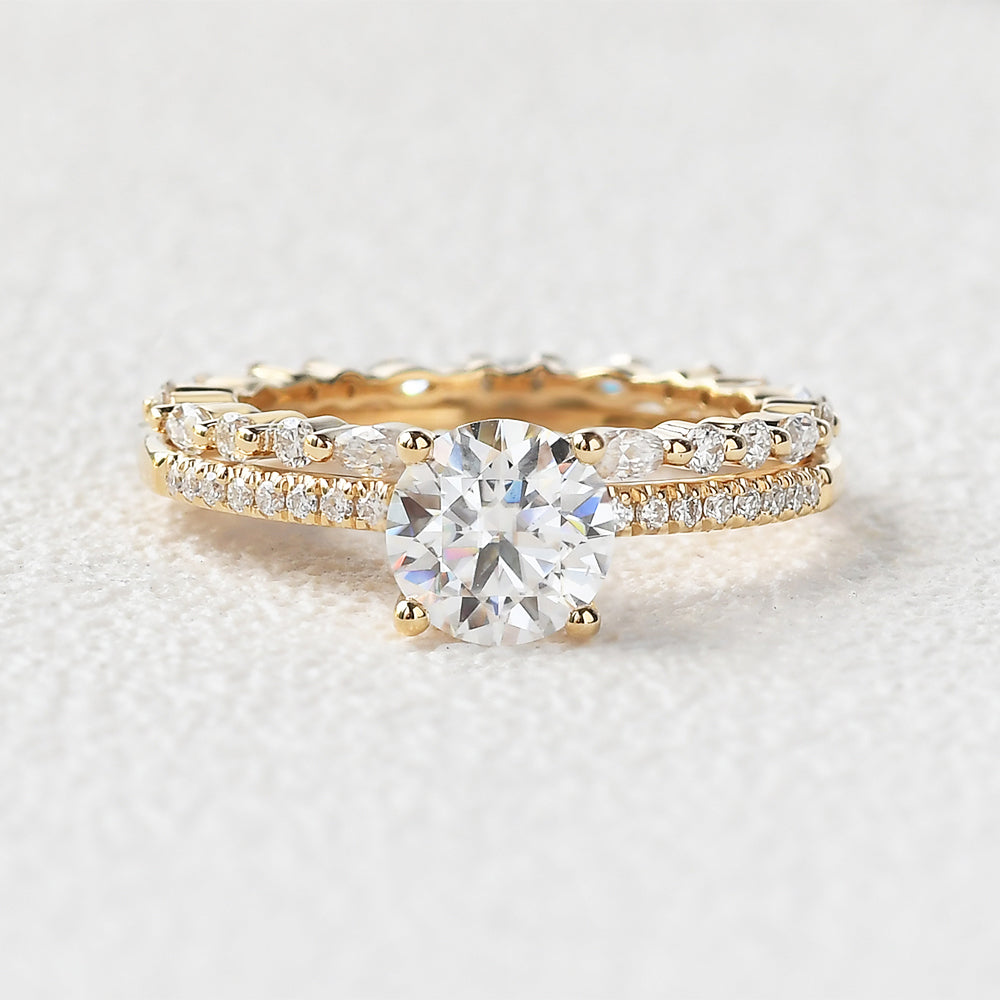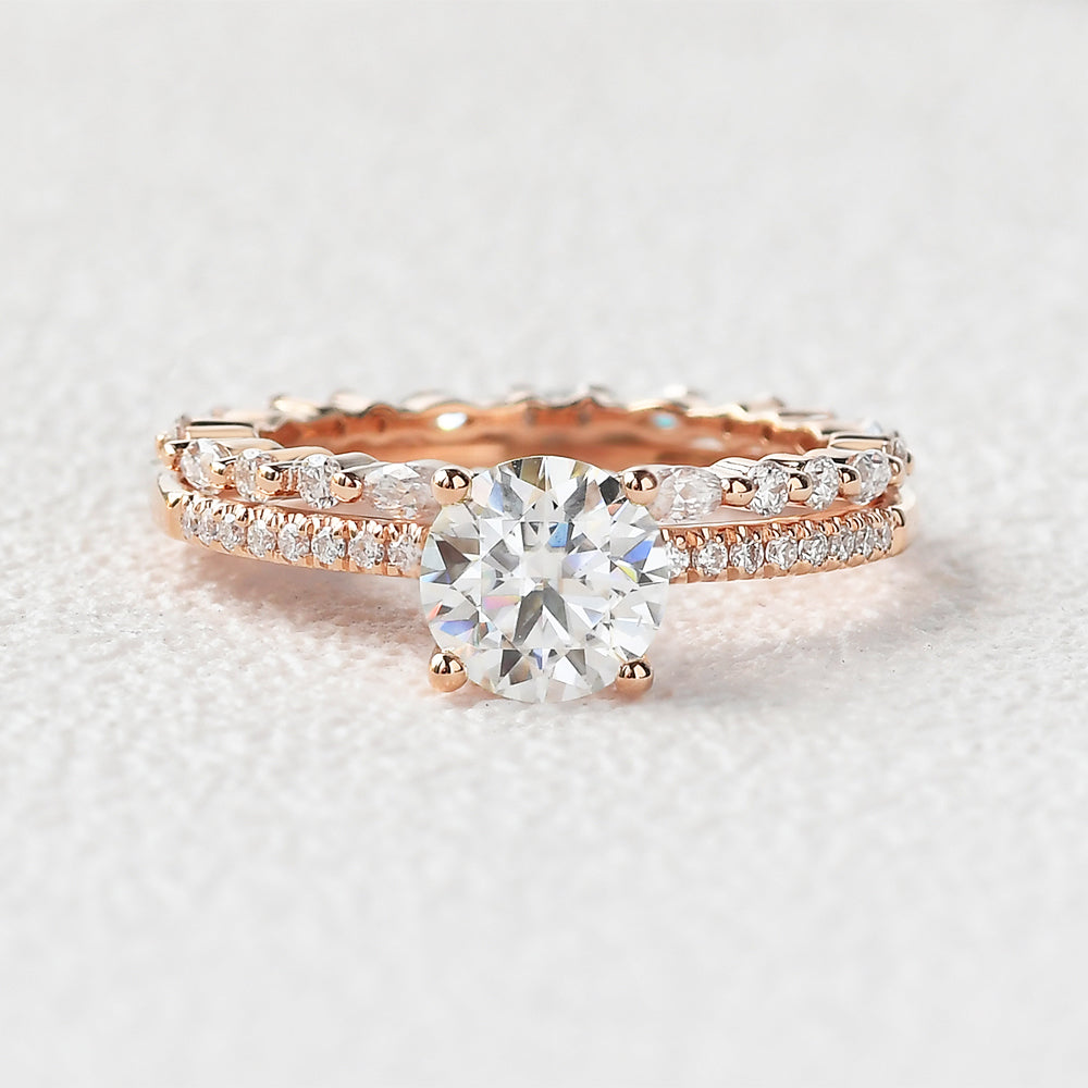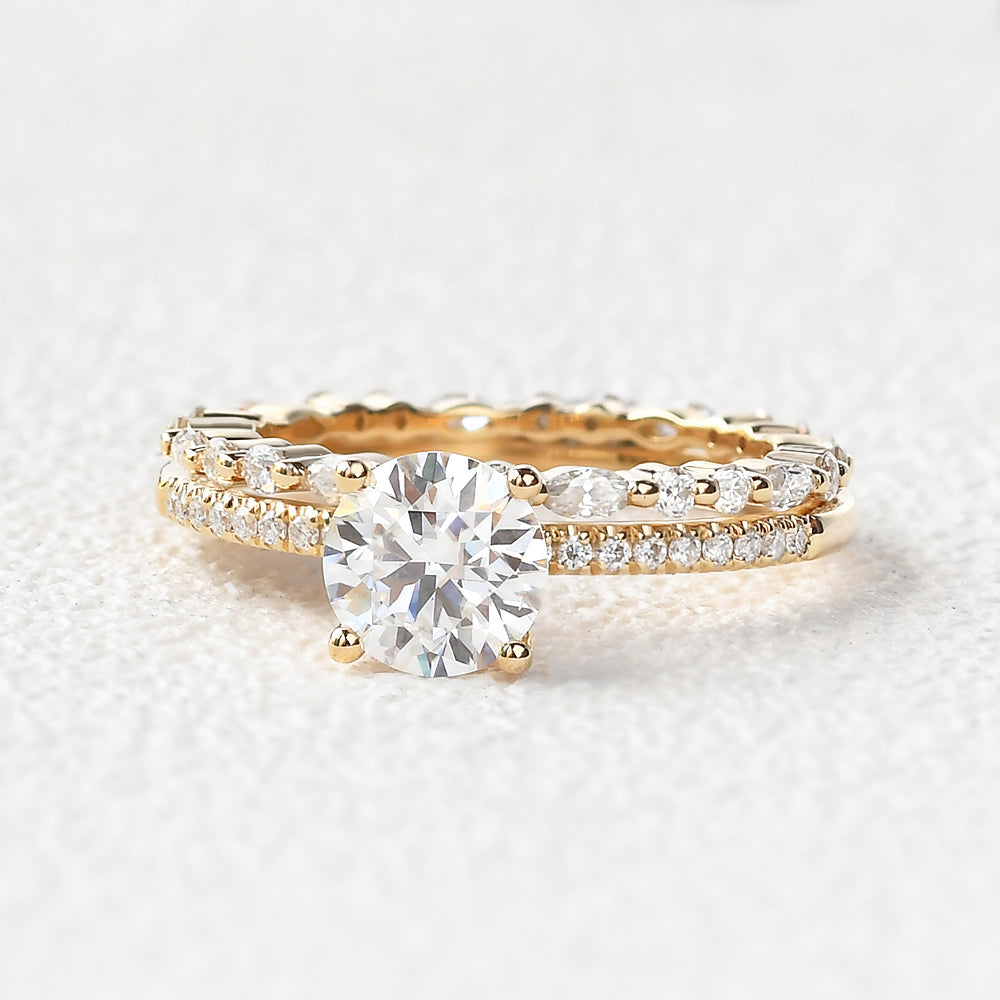 Round Cut 4 Prongs Moissanite Engagement Ring Set 2pcs