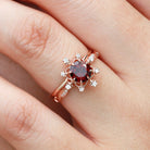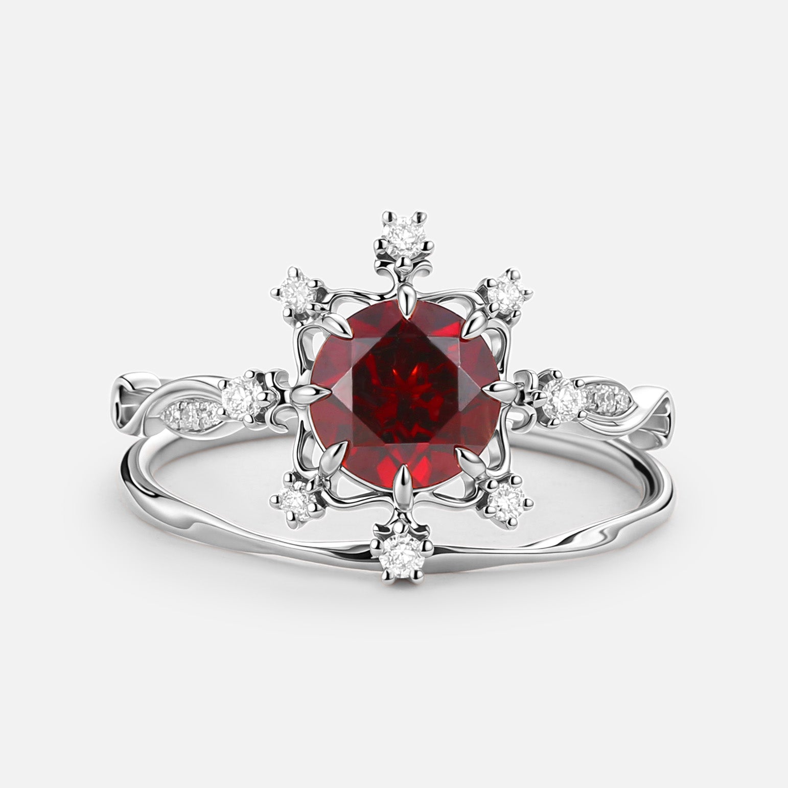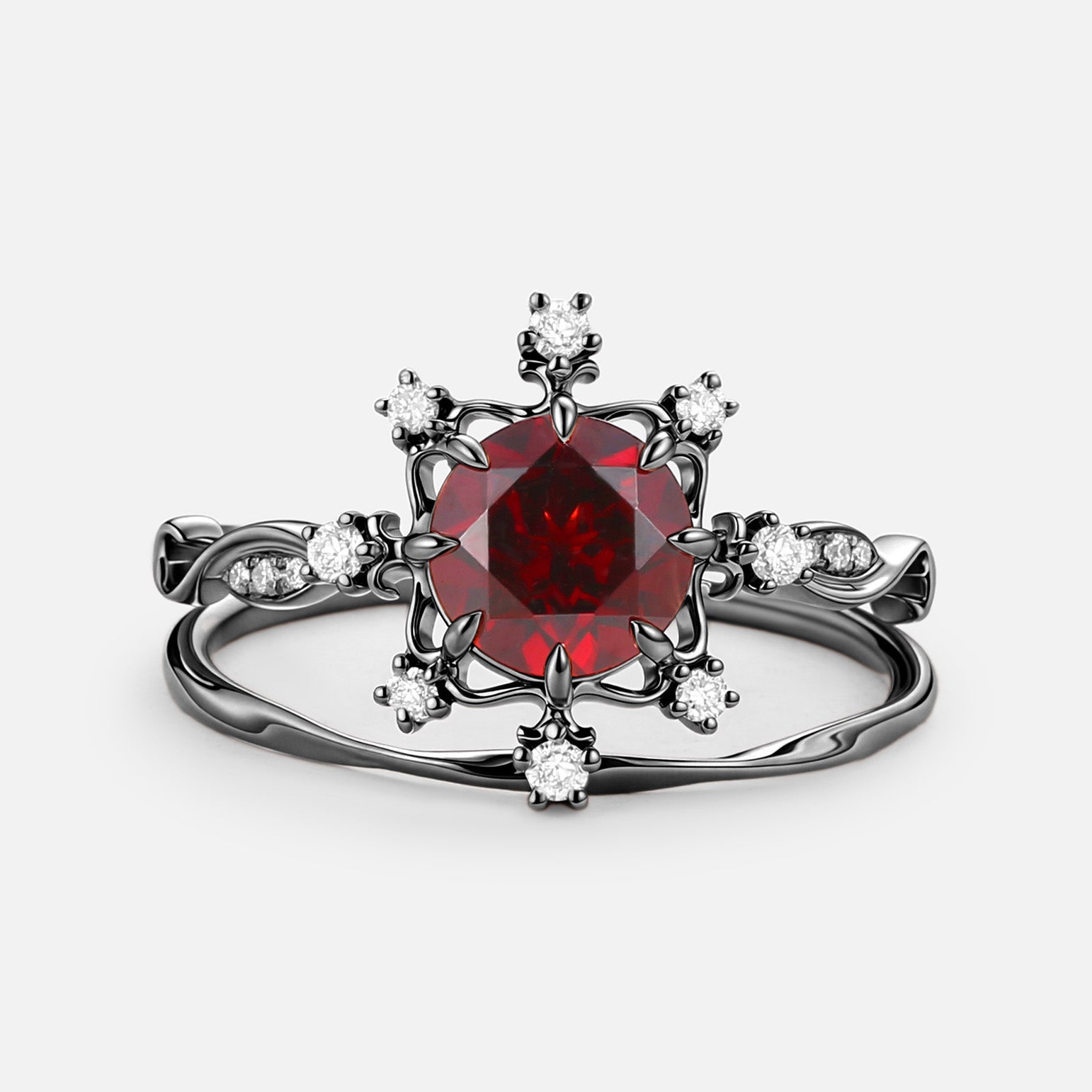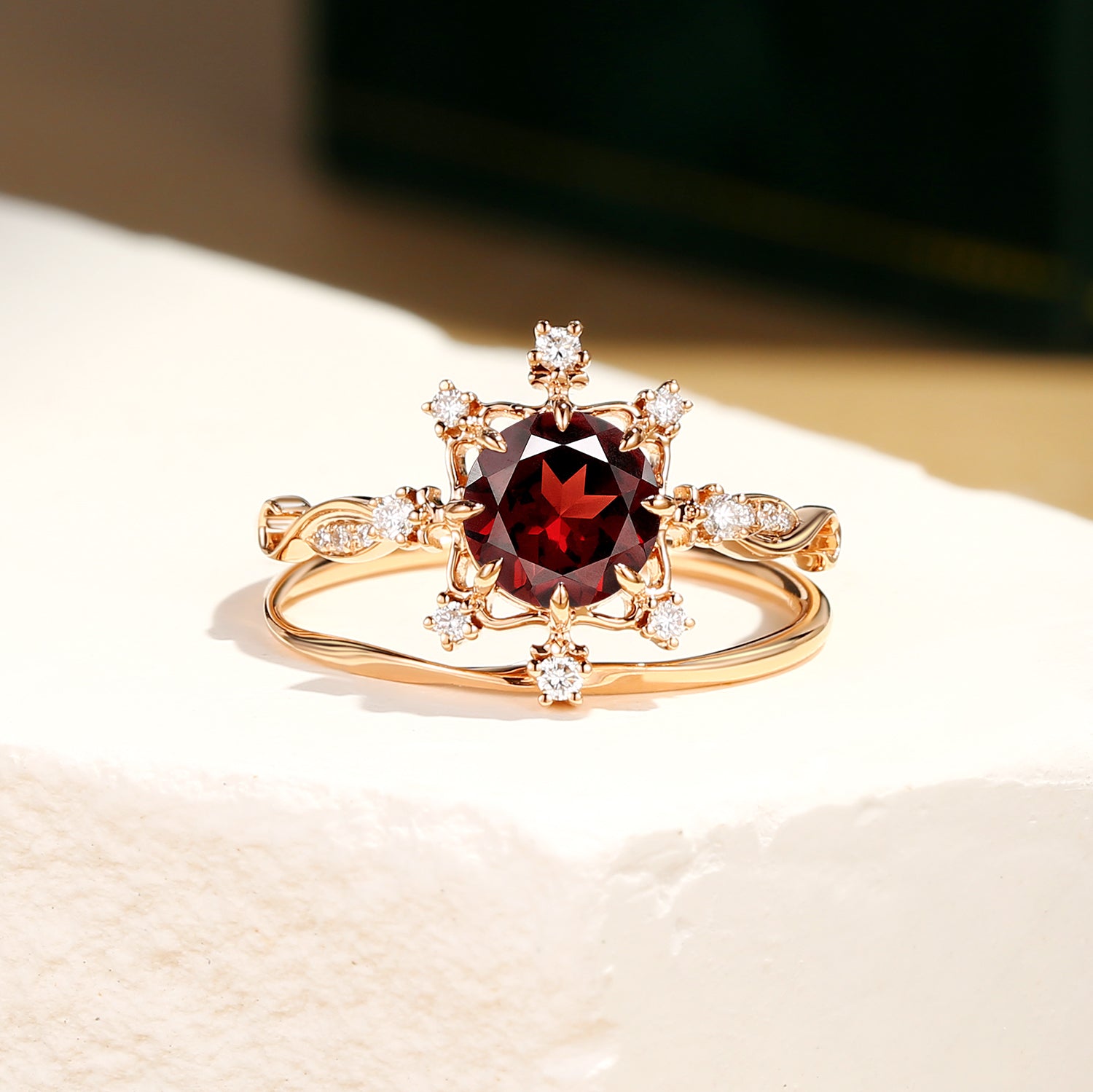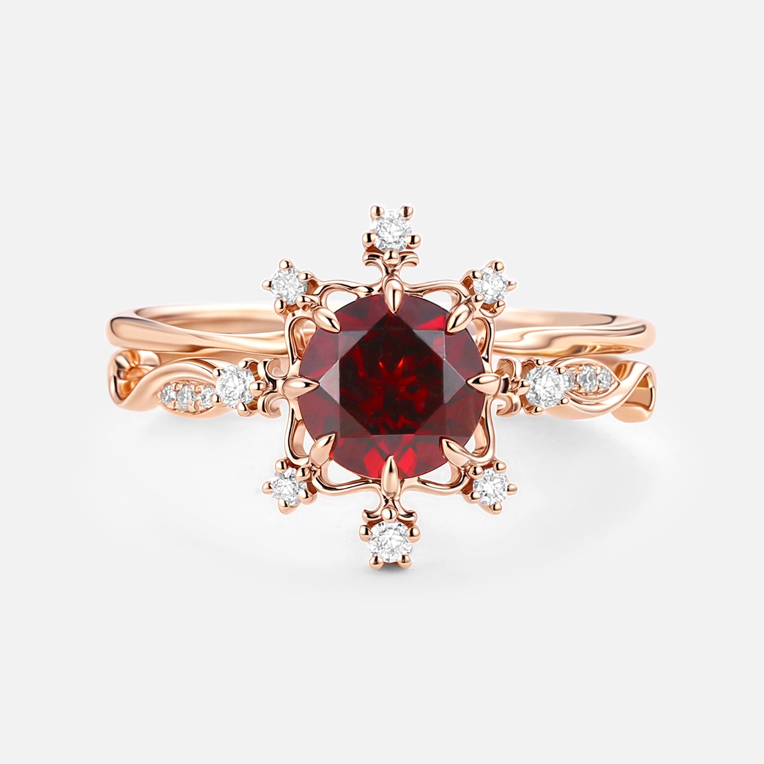 Felicegals Round Cut Garnet Vintage Inspired Ring Set 2pcs Garnet Moissanite Ring Engagement Wedding Ring Anniversary Gift Gemstones