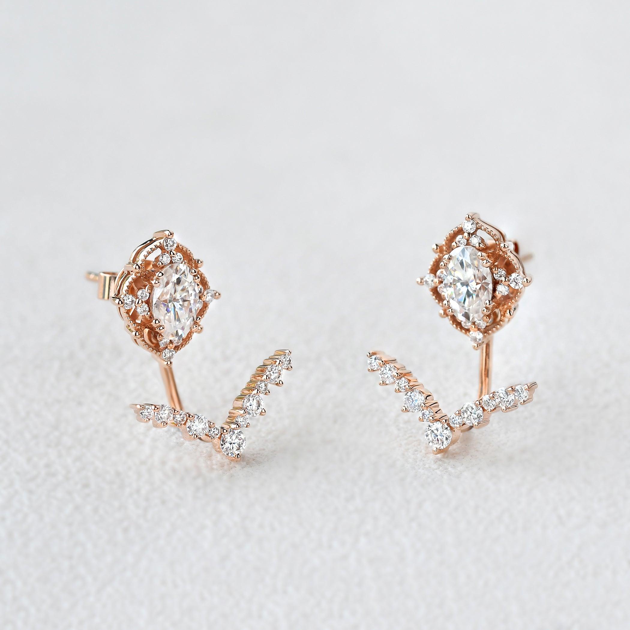 Signature Vintage Moissanite Ring Set & Earring & Necklace 5PCS - Charlotte Sets