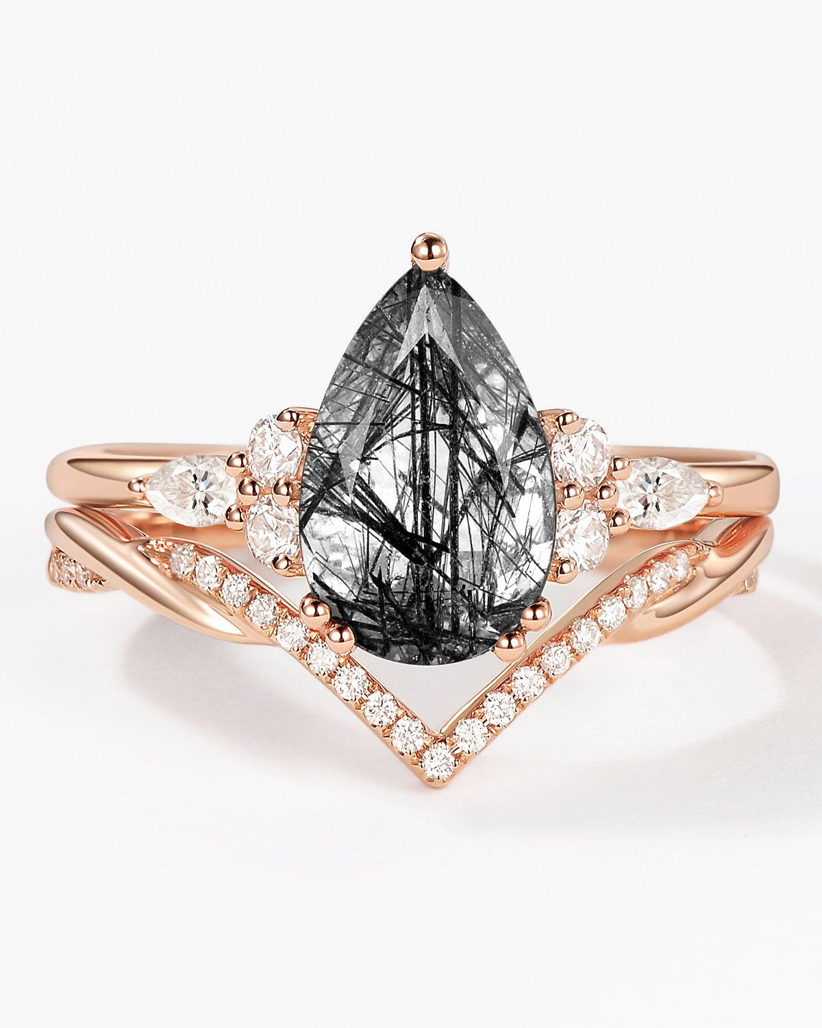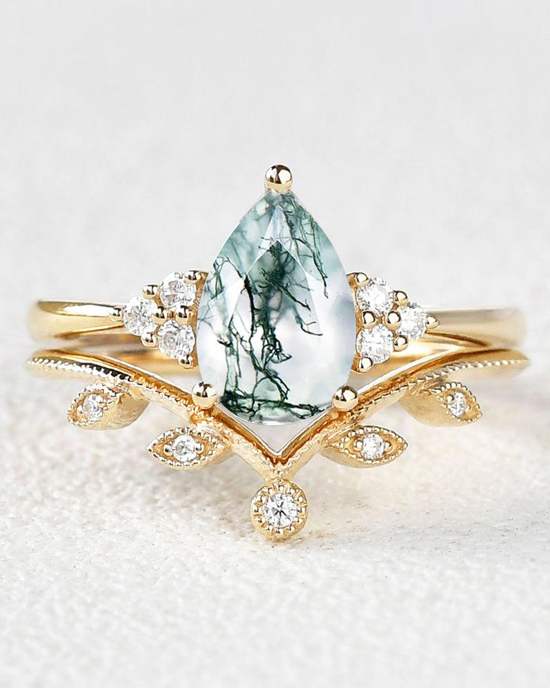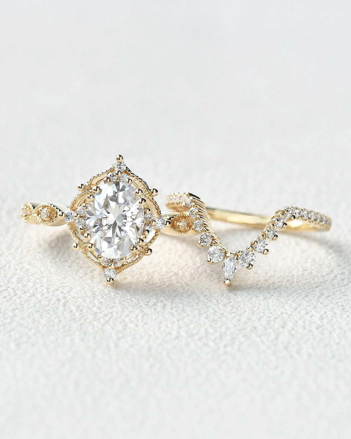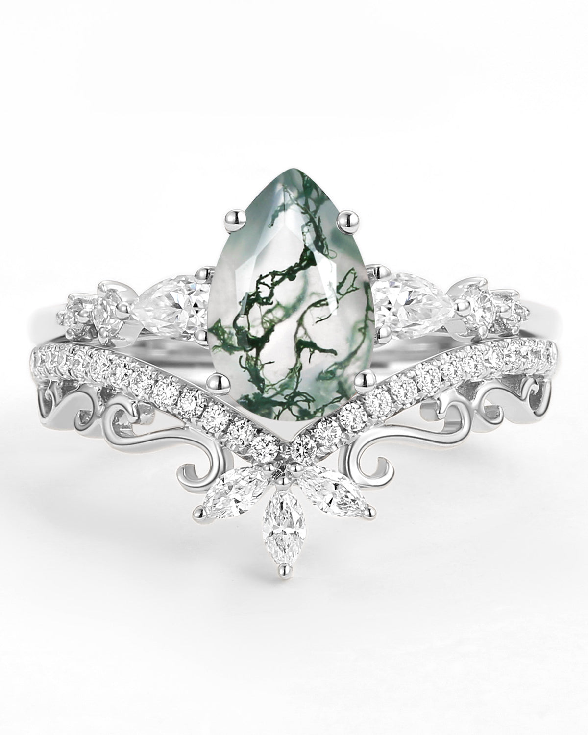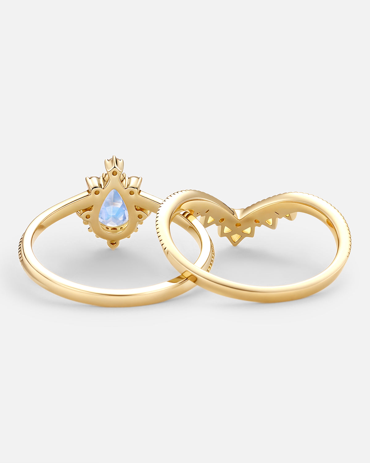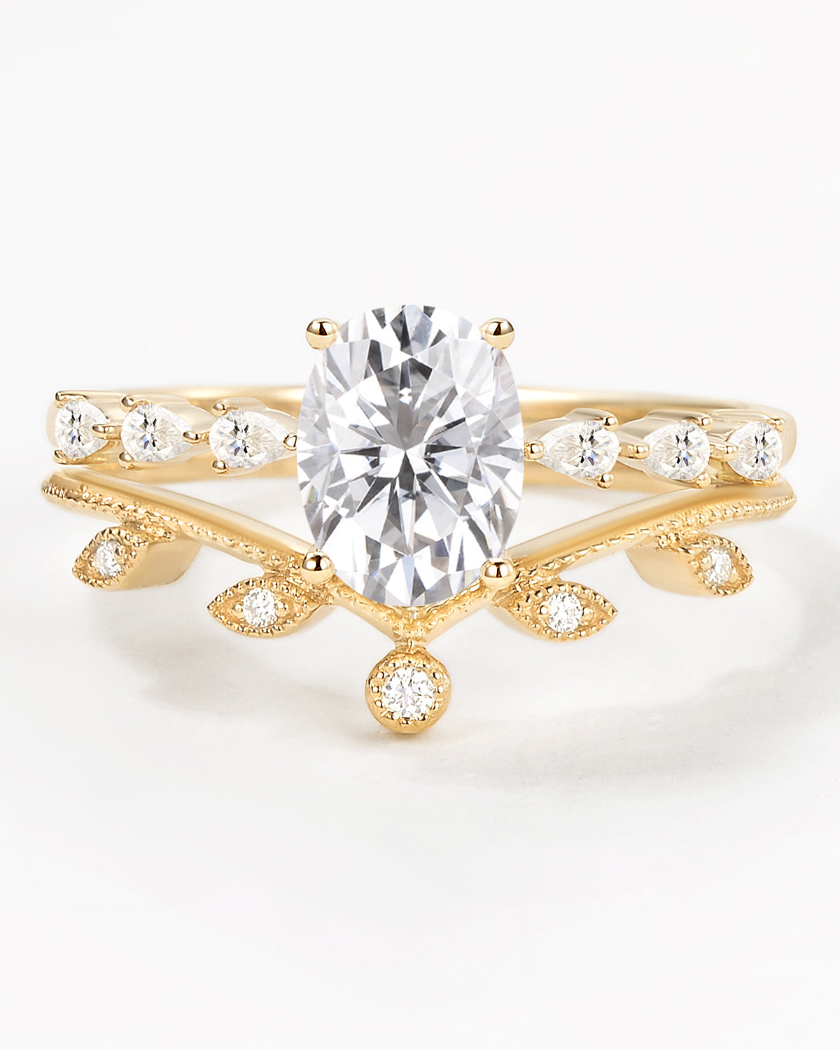 The Vintage Rings collection brings together exquisite rings in a vintage style, adding romance and elegance to your special moments. Each pear ring in this collection has been carefully designed, showcasing the charm of tradition and classic beauty while incorporating modern elements. Our moissanite vintage ring set is one of the highlights of this collection. Featuring high-quality moissanite as the main stone, these rings exude captivating brilliance and shimmer, making your engagement ring truly unique and eye-catching.