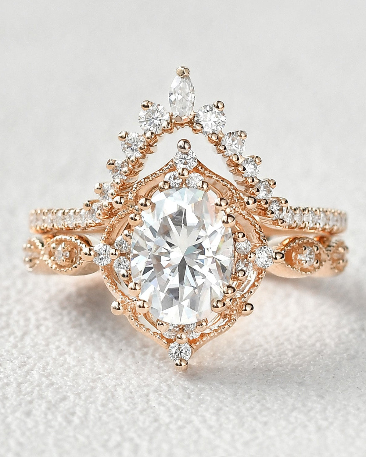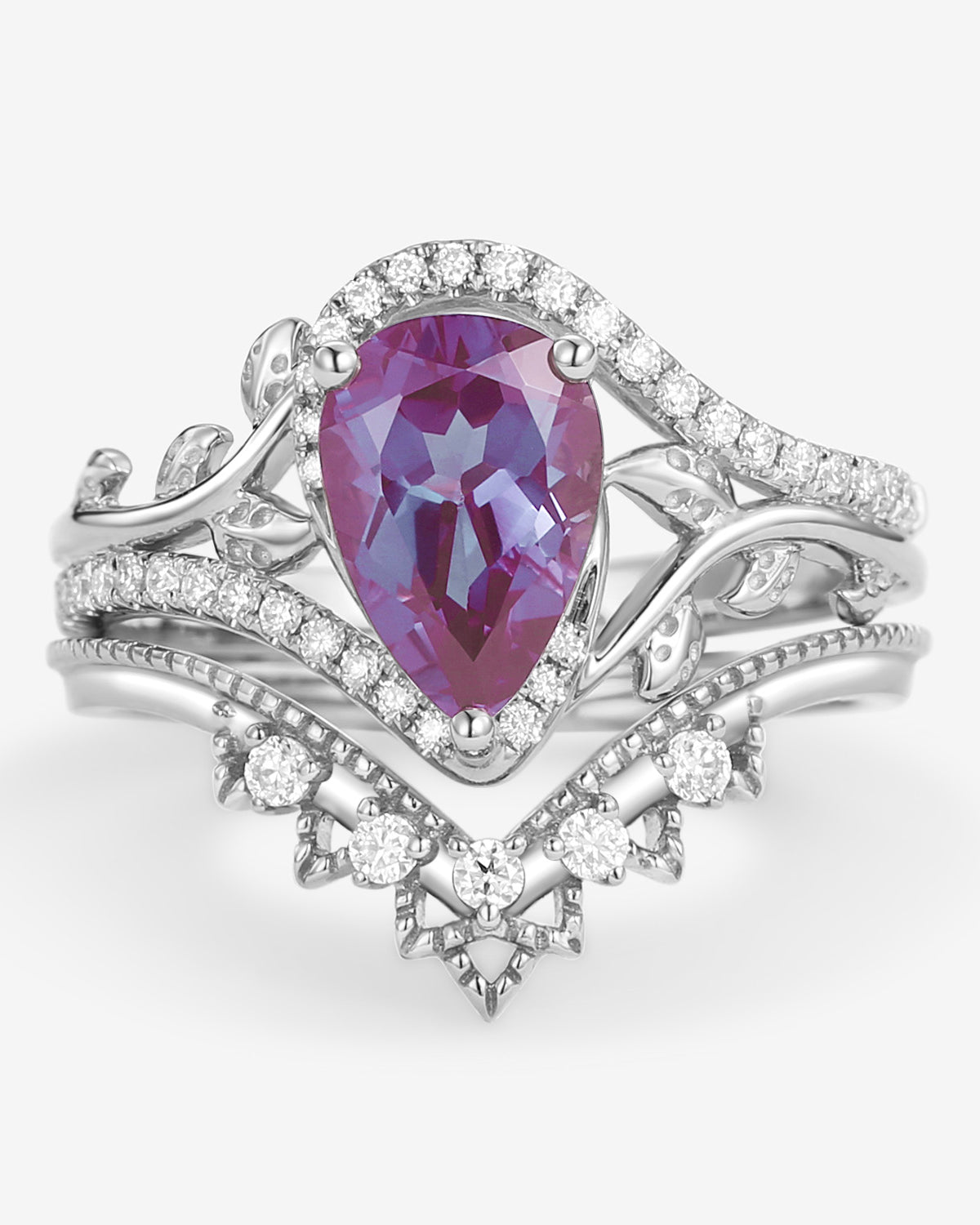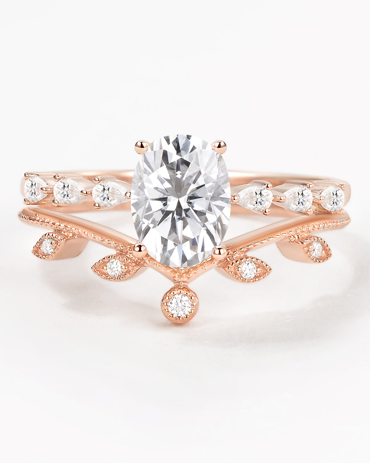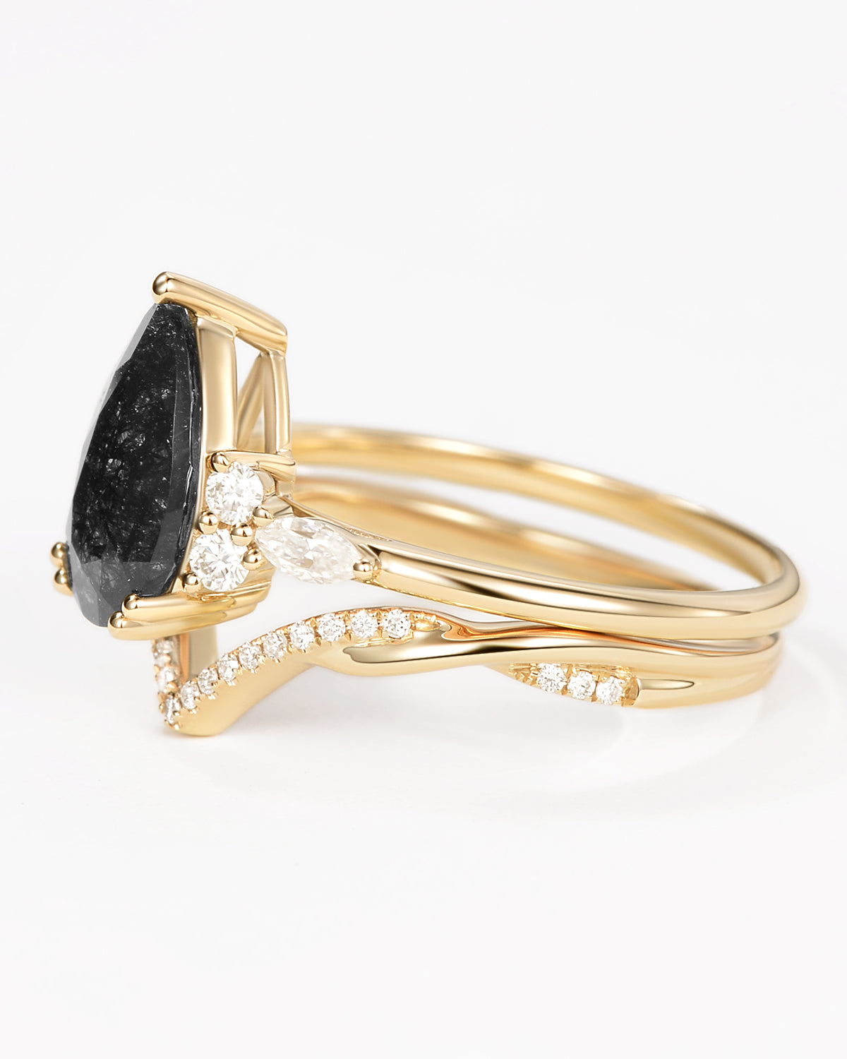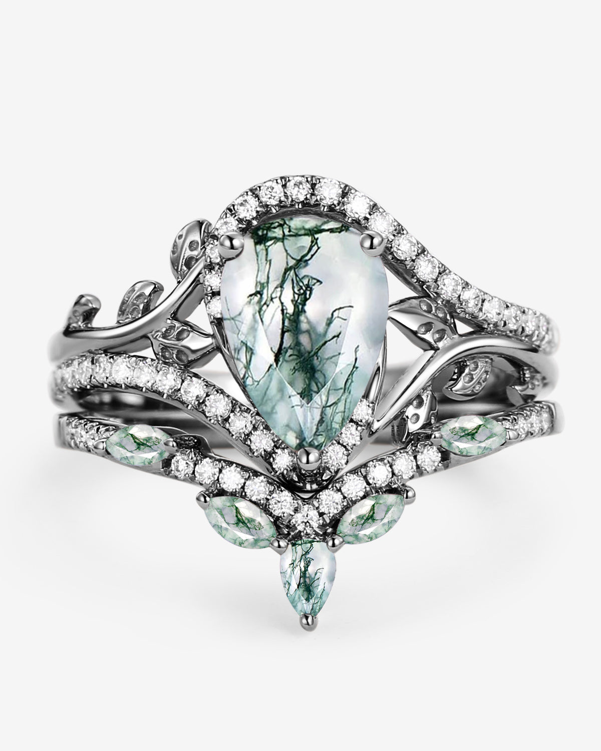 The Vintage Rings collection brings together exquisite rings in a vintage style, adding romance and elegance to your special moments. Each pear ring in this collection has been carefully designed, showcasing the charm of tradition and classic beauty while incorporating modern elements. Our moissanite vintage ring set is one of the highlights of this collection. Featuring high-quality moissanite as the main stone, these rings exude captivating brilliance and shimmer, making your engagement ring truly unique and eye-catching.