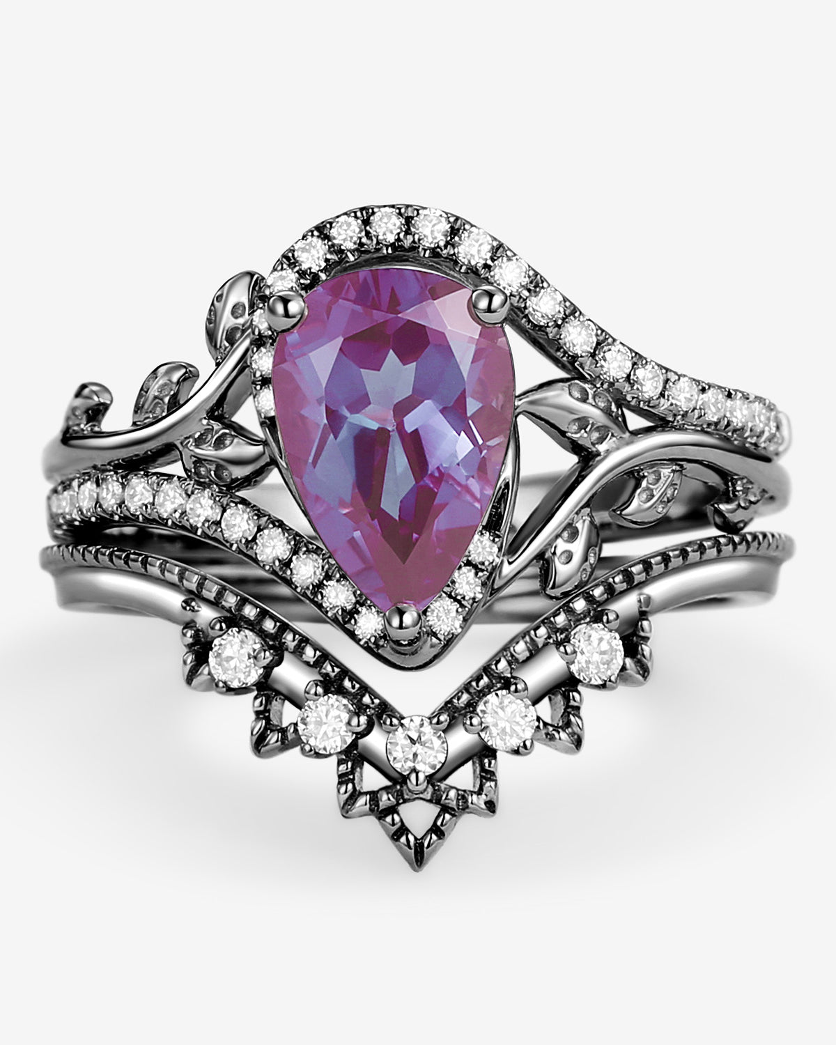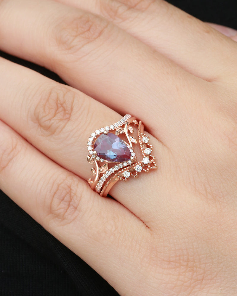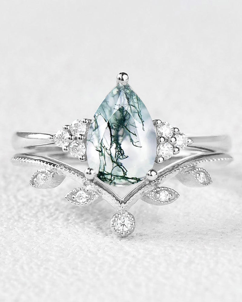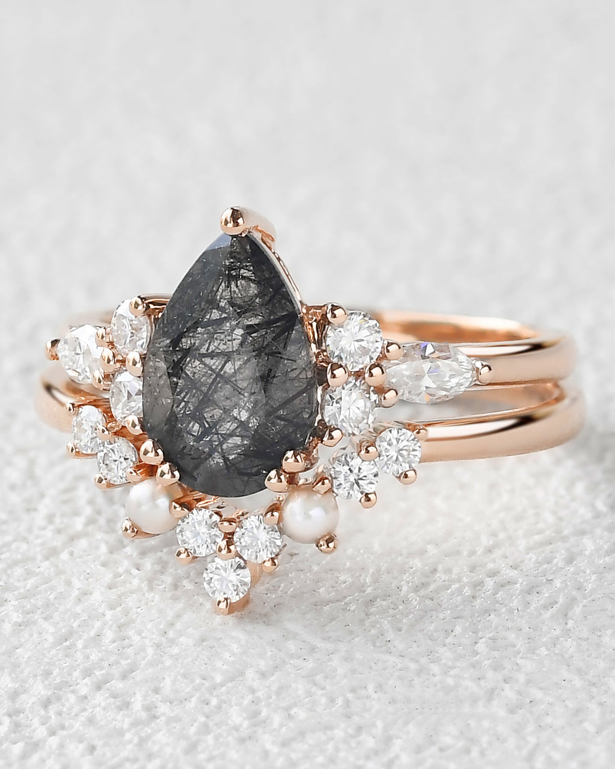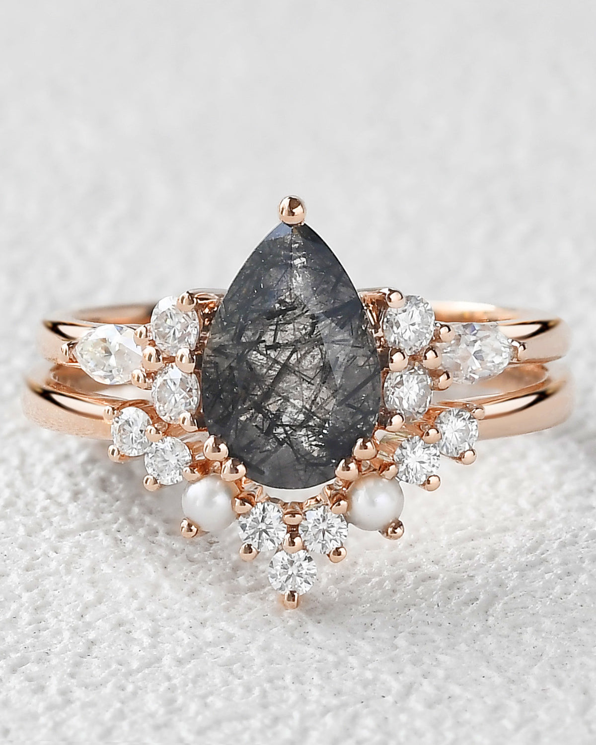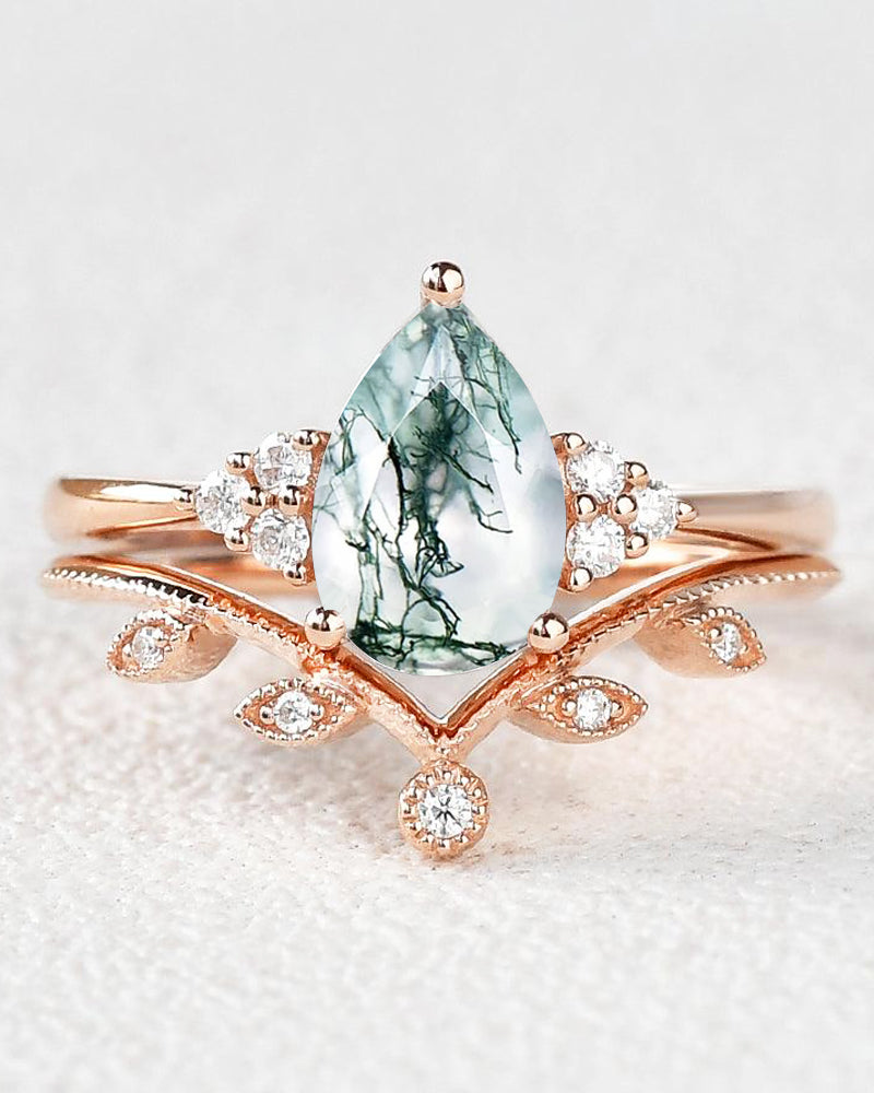 The Vintage Rings collection brings together exquisite rings in a vintage style, adding romance and elegance to your special moments. Each pear ring in this collection has been carefully designed, showcasing the charm of tradition and classic beauty while incorporating modern elements. Our moissanite vintage ring set is one of the highlights of this collection. Featuring high-quality moissanite as the main stone, these rings exude captivating brilliance and shimmer, making your engagement ring truly unique and eye-catching.