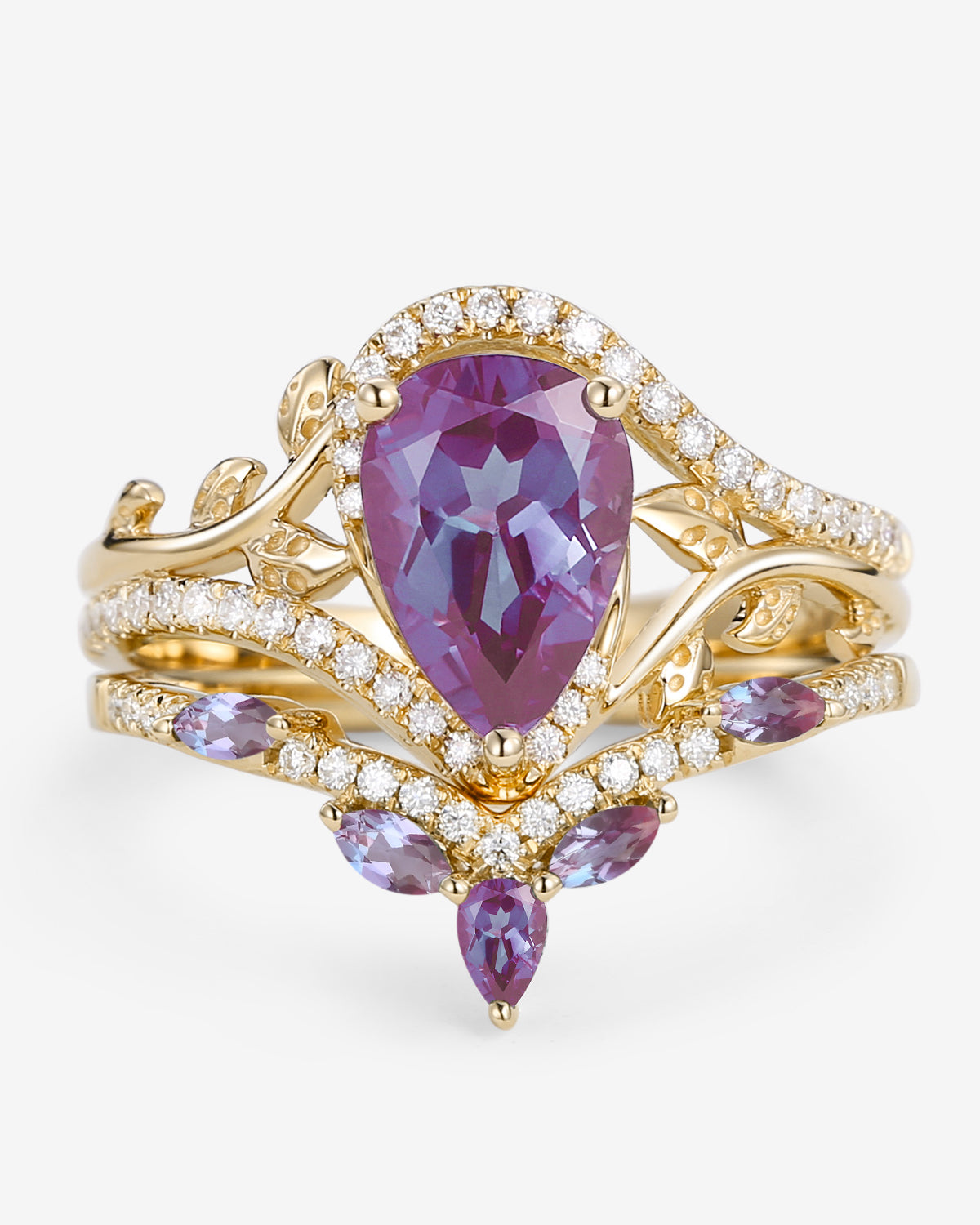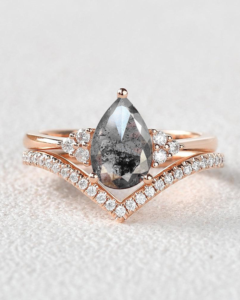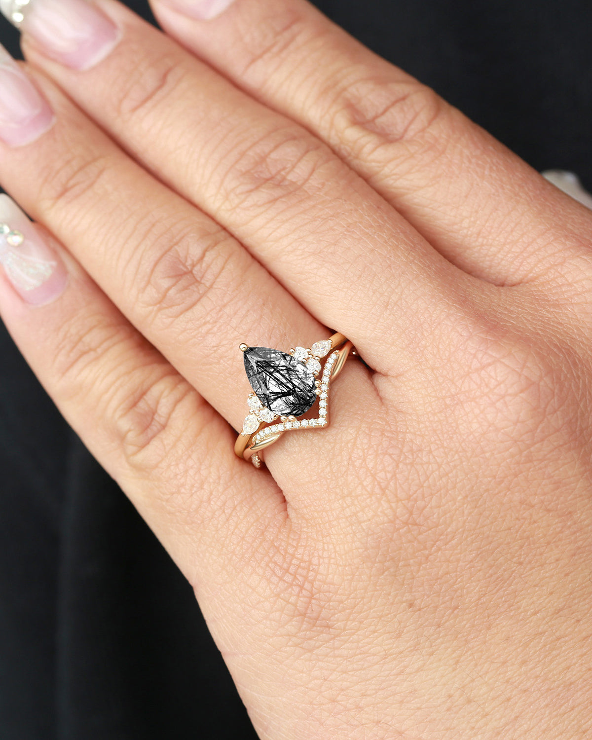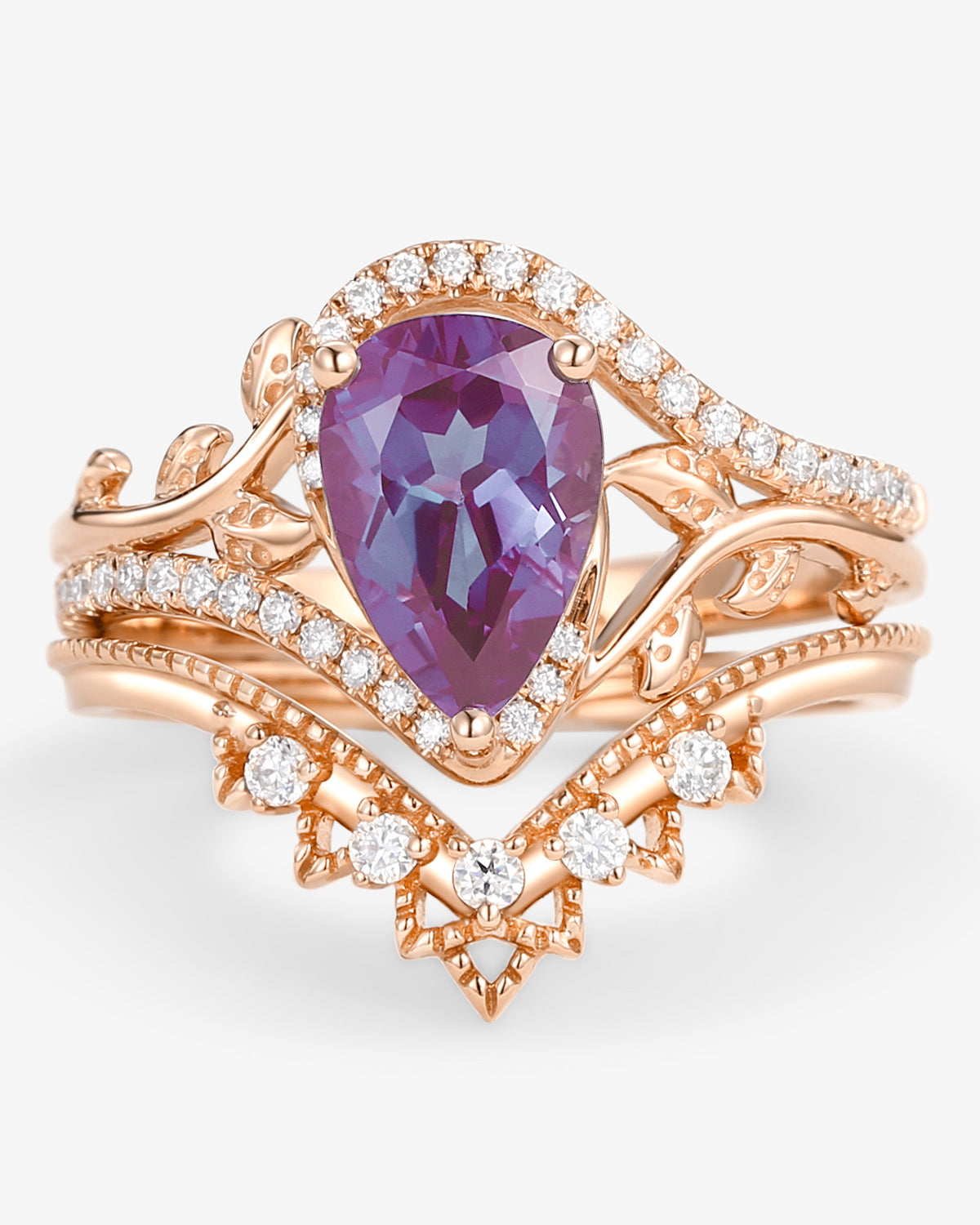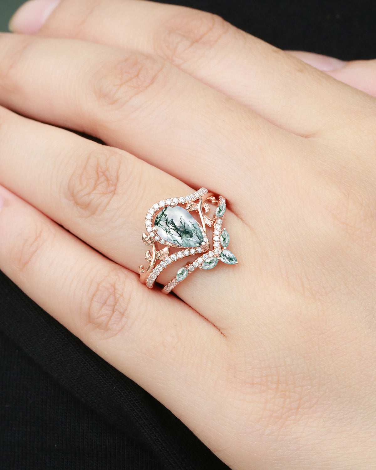 The Vintage Rings collection brings together exquisite rings in a vintage style, adding romance and elegance to your special moments. Each pear ring in this collection has been carefully designed, showcasing the charm of tradition and classic beauty while incorporating modern elements. Our moissanite vintage ring set is one of the highlights of this collection. Featuring high-quality moissanite as the main stone, these rings exude captivating brilliance and shimmer, making your engagement ring truly unique and eye-catching.