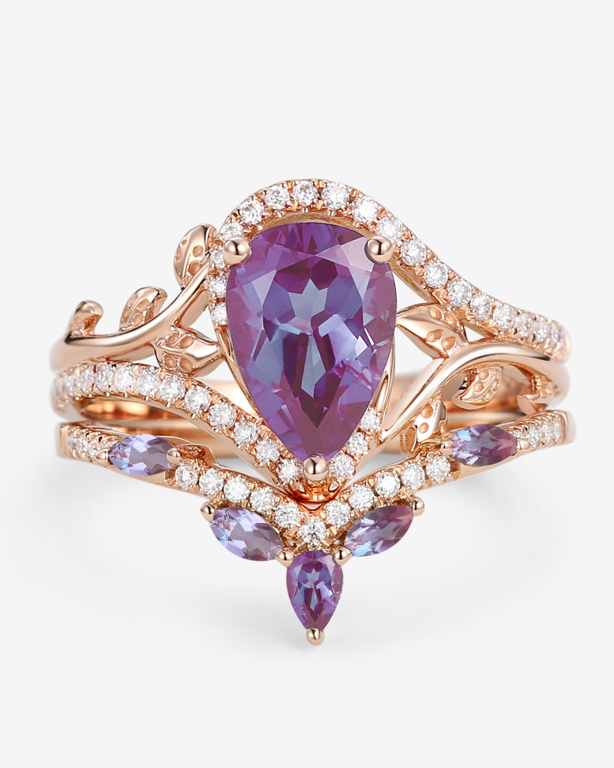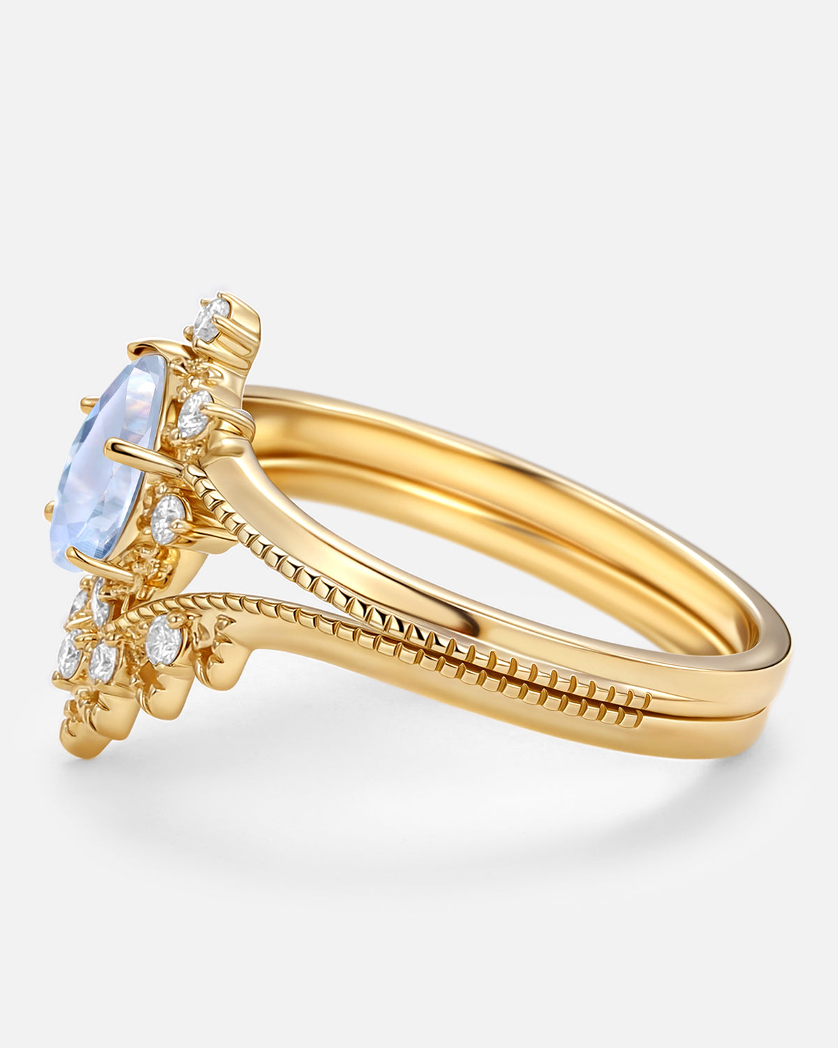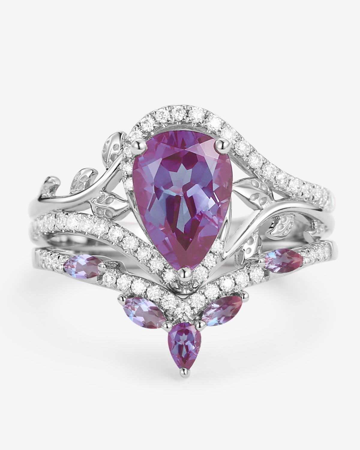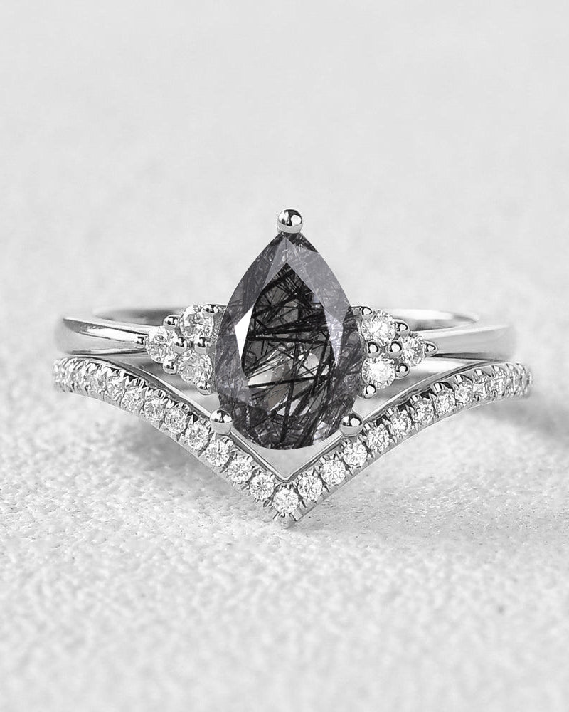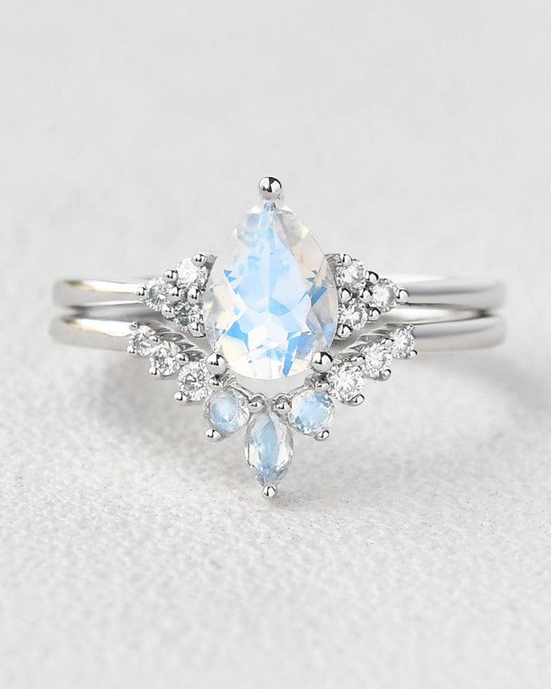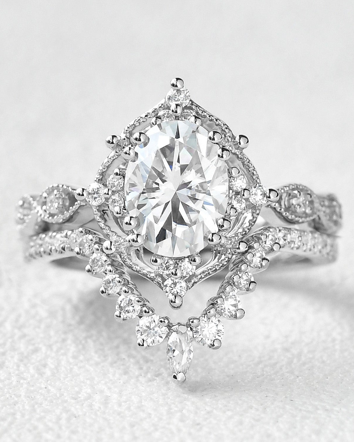 The Vintage Rings collection brings together exquisite rings in a vintage style, adding romance and elegance to your special moments. Each pear ring in this collection has been carefully designed, showcasing the charm of tradition and classic beauty while incorporating modern elements. Our moissanite vintage ring set is one of the highlights of this collection. Featuring high-quality moissanite as the main stone, these rings exude captivating brilliance and shimmer, making your engagement ring truly unique and eye-catching.