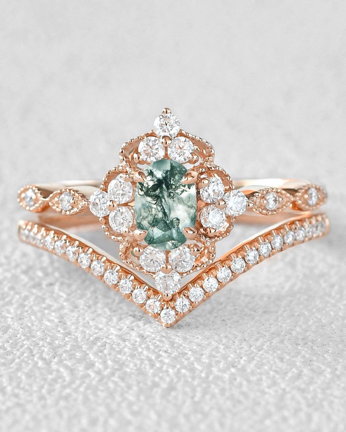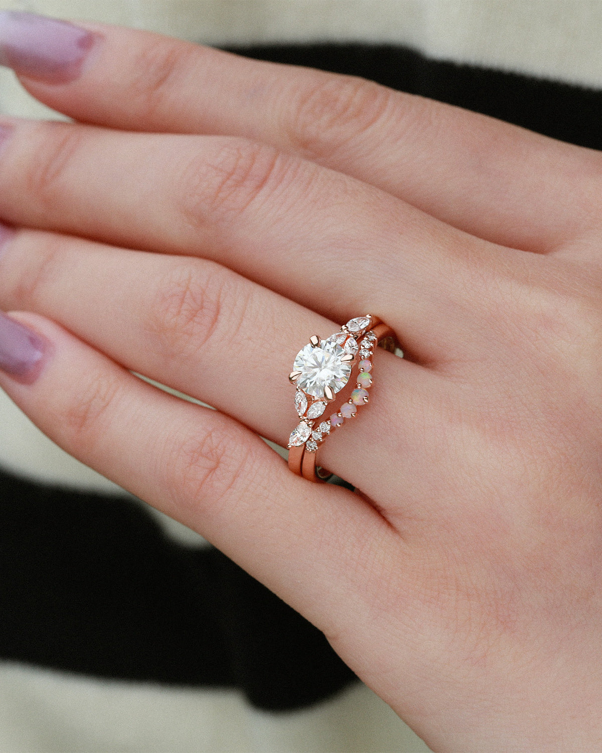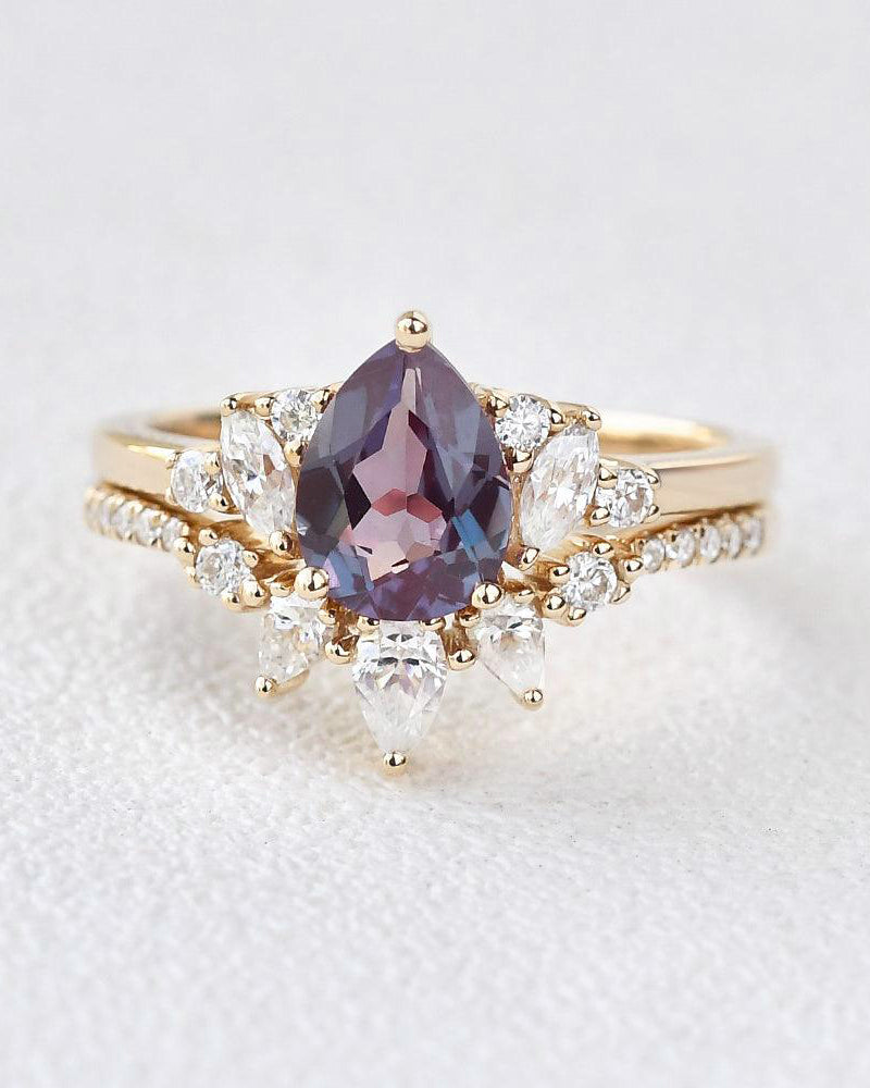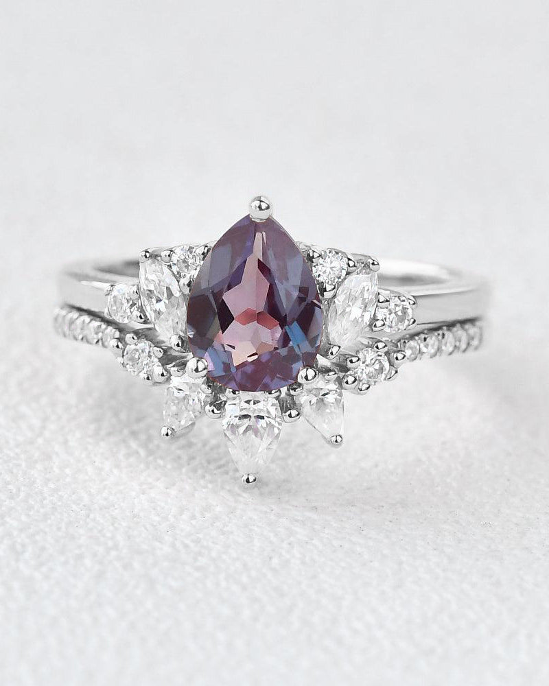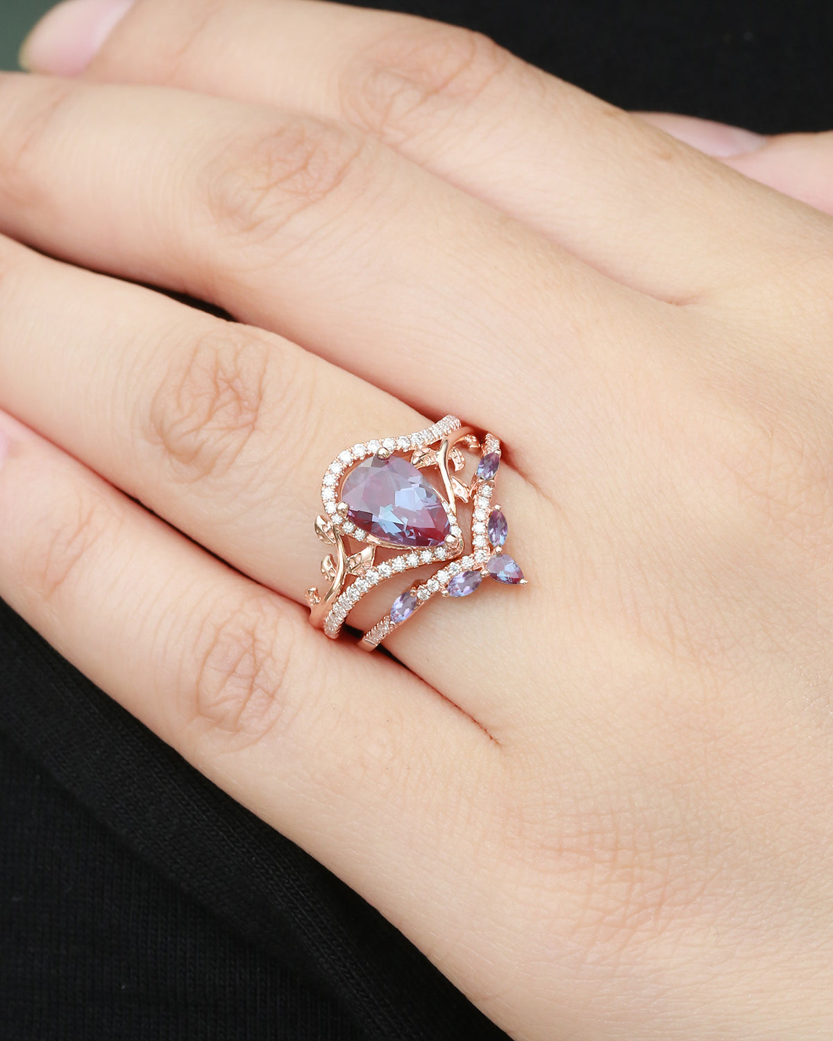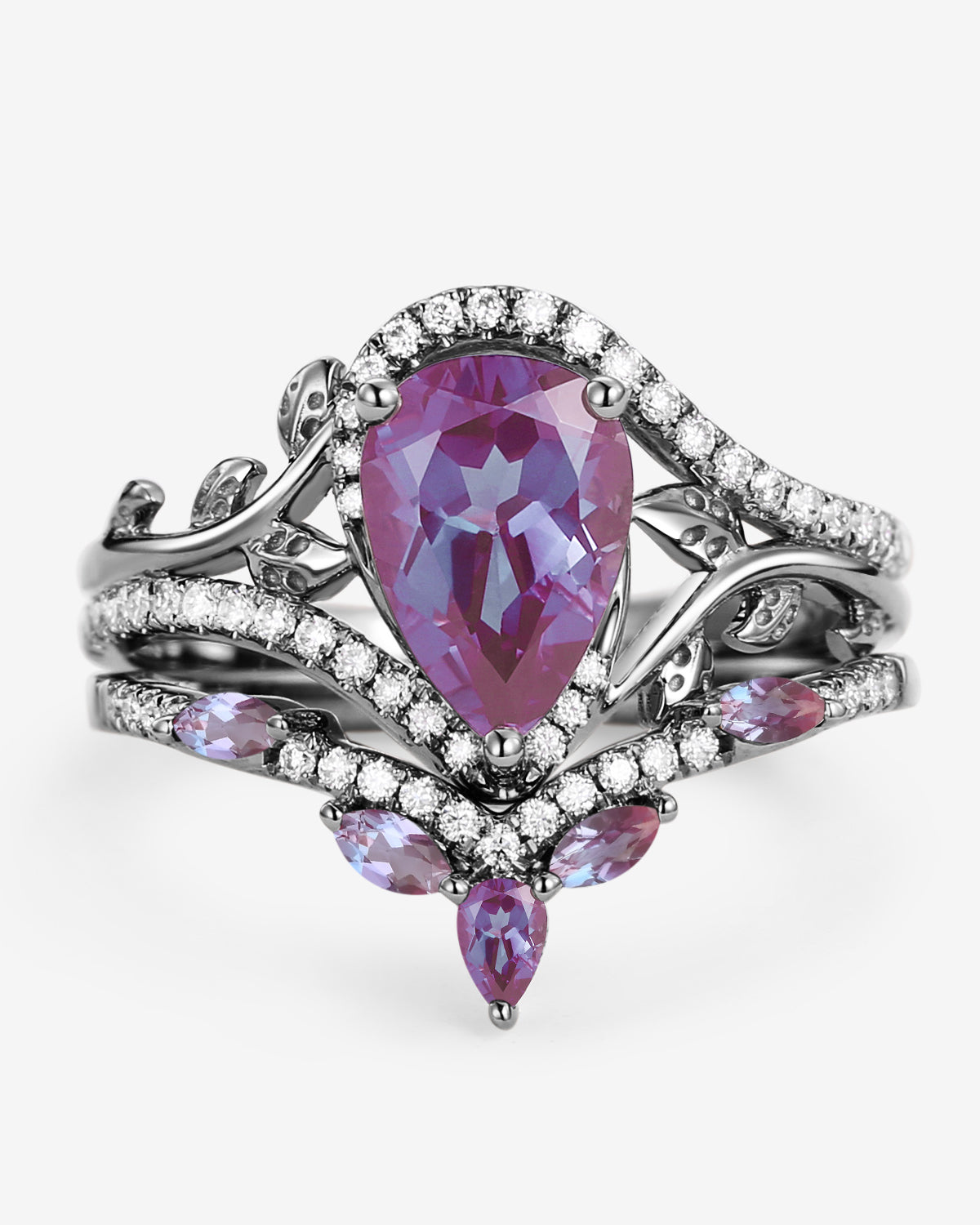 The Vintage Rings collection brings together exquisite rings in a vintage style, adding romance and elegance to your special moments. Each pear ring in this collection has been carefully designed, showcasing the charm of tradition and classic beauty while incorporating modern elements. Our moissanite vintage ring set is one of the highlights of this collection. Featuring high-quality moissanite as the main stone, these rings exude captivating brilliance and shimmer, making your engagement ring truly unique and eye-catching.