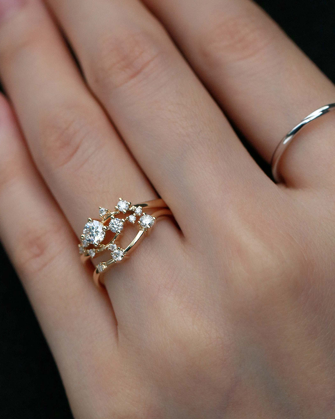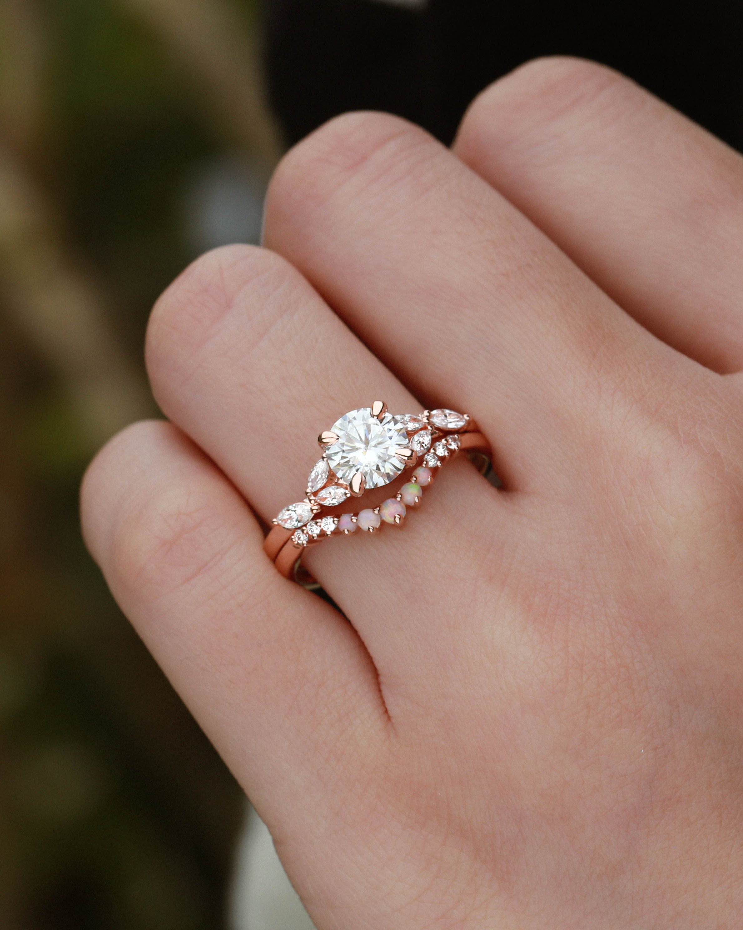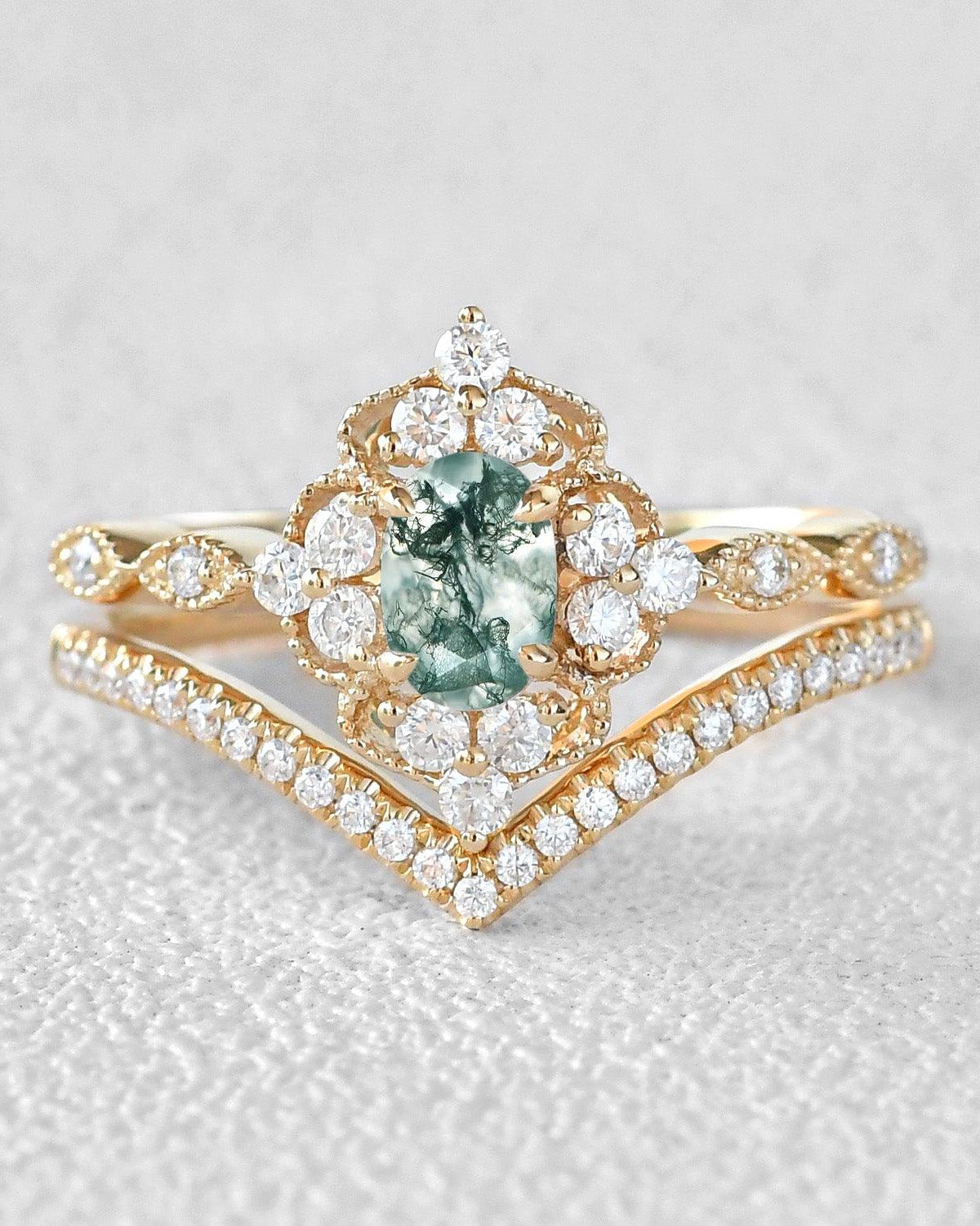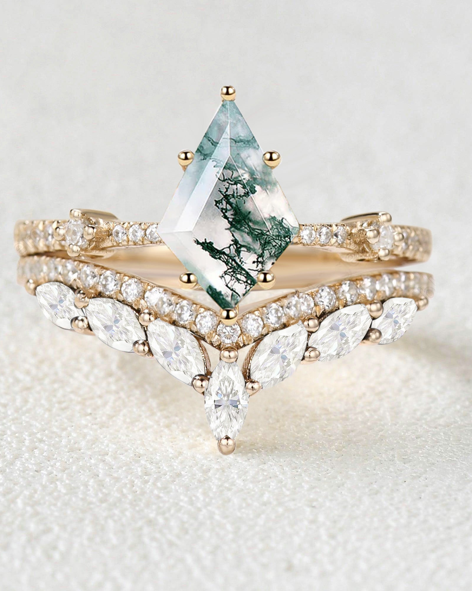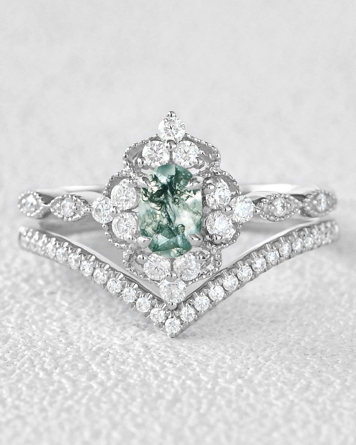 The Vintage Rings collection brings together exquisite rings in a vintage style, adding romance and elegance to your special moments. Each pear ring in this collection has been carefully designed, showcasing the charm of tradition and classic beauty while incorporating modern elements. Our moissanite vintage ring set is one of the highlights of this collection. Featuring high-quality moissanite as the main stone, these rings exude captivating brilliance and shimmer, making your engagement ring truly unique and eye-catching.