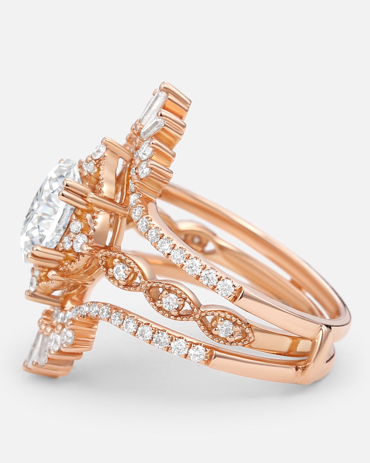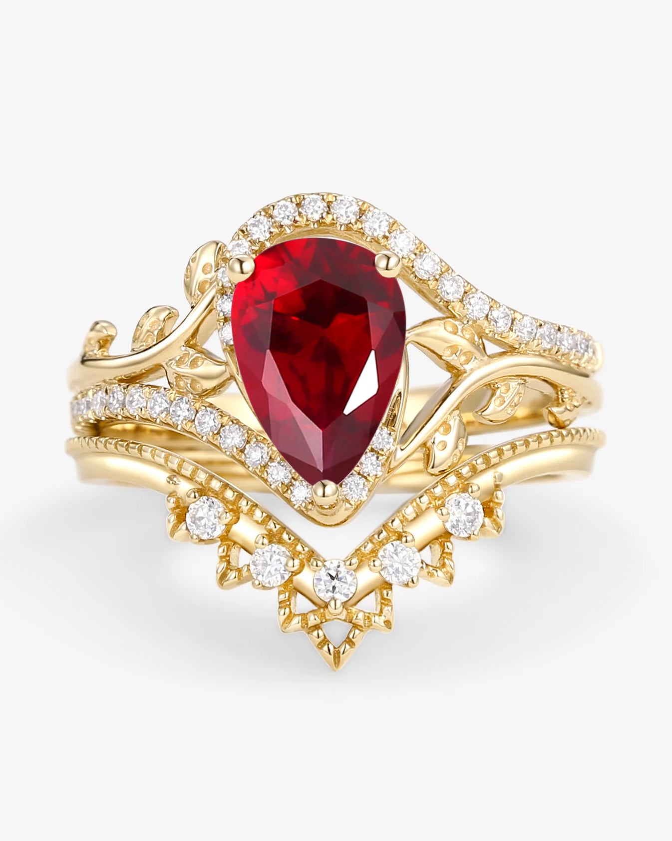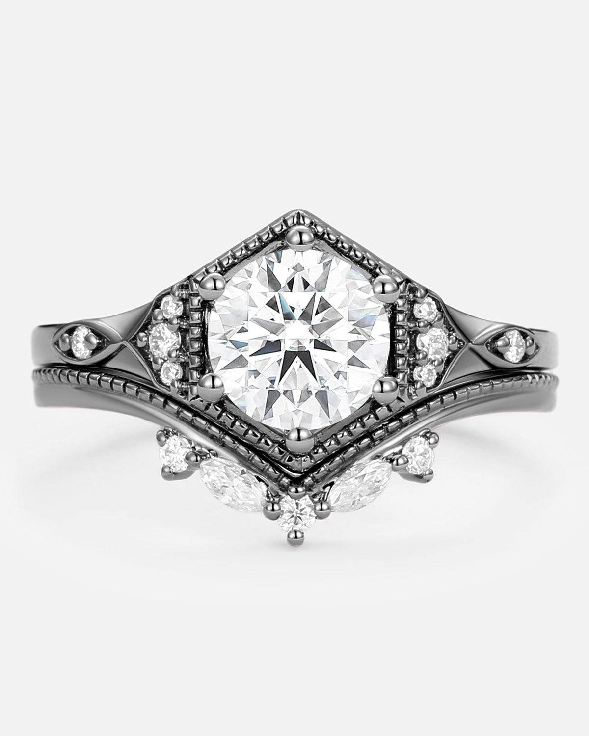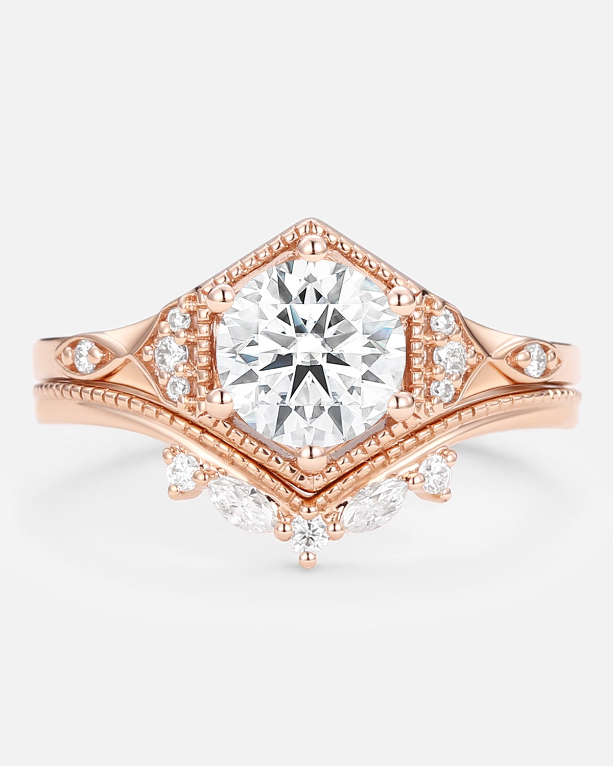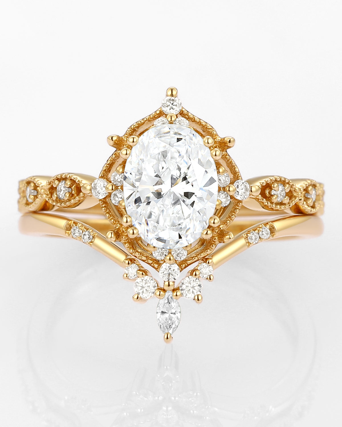 The Vintage Rings collection brings together exquisite rings in a vintage style, adding romance and elegance to your special moments. Each pear ring in this collection has been carefully designed, showcasing the charm of tradition and classic beauty while incorporating modern elements. Our moissanite vintage ring set is one of the highlights of this collection. Featuring high-quality moissanite as the main stone, these rings exude captivating brilliance and shimmer, making your engagement ring truly unique and eye-catching.