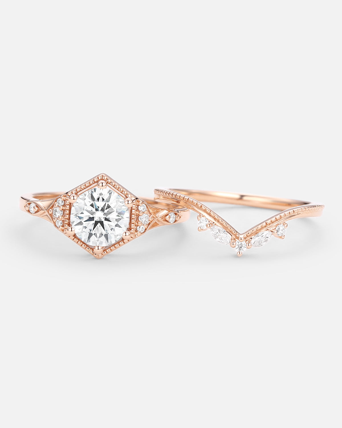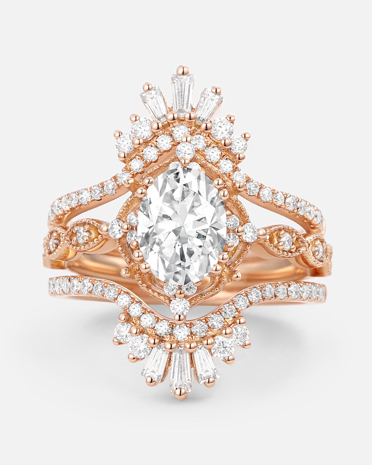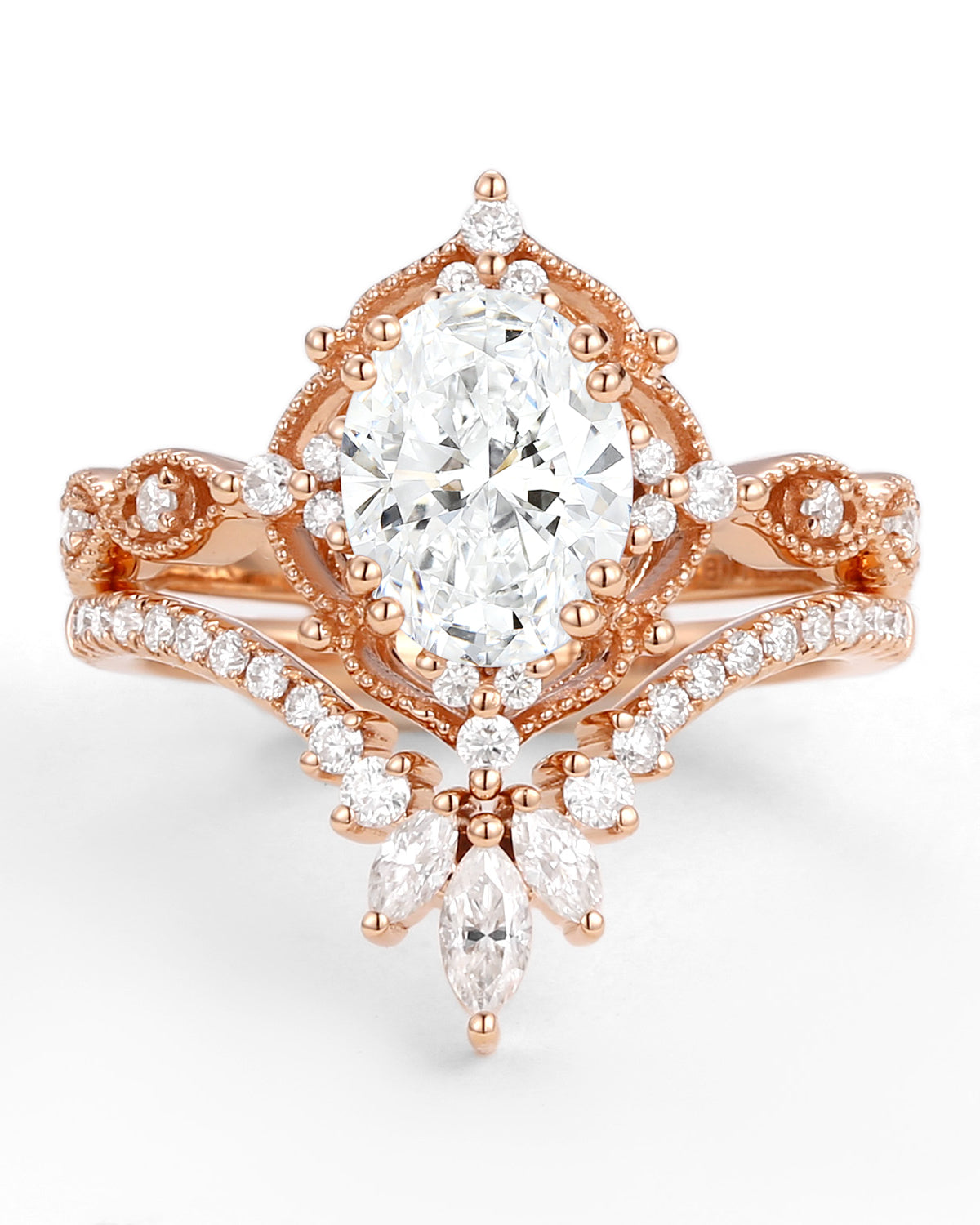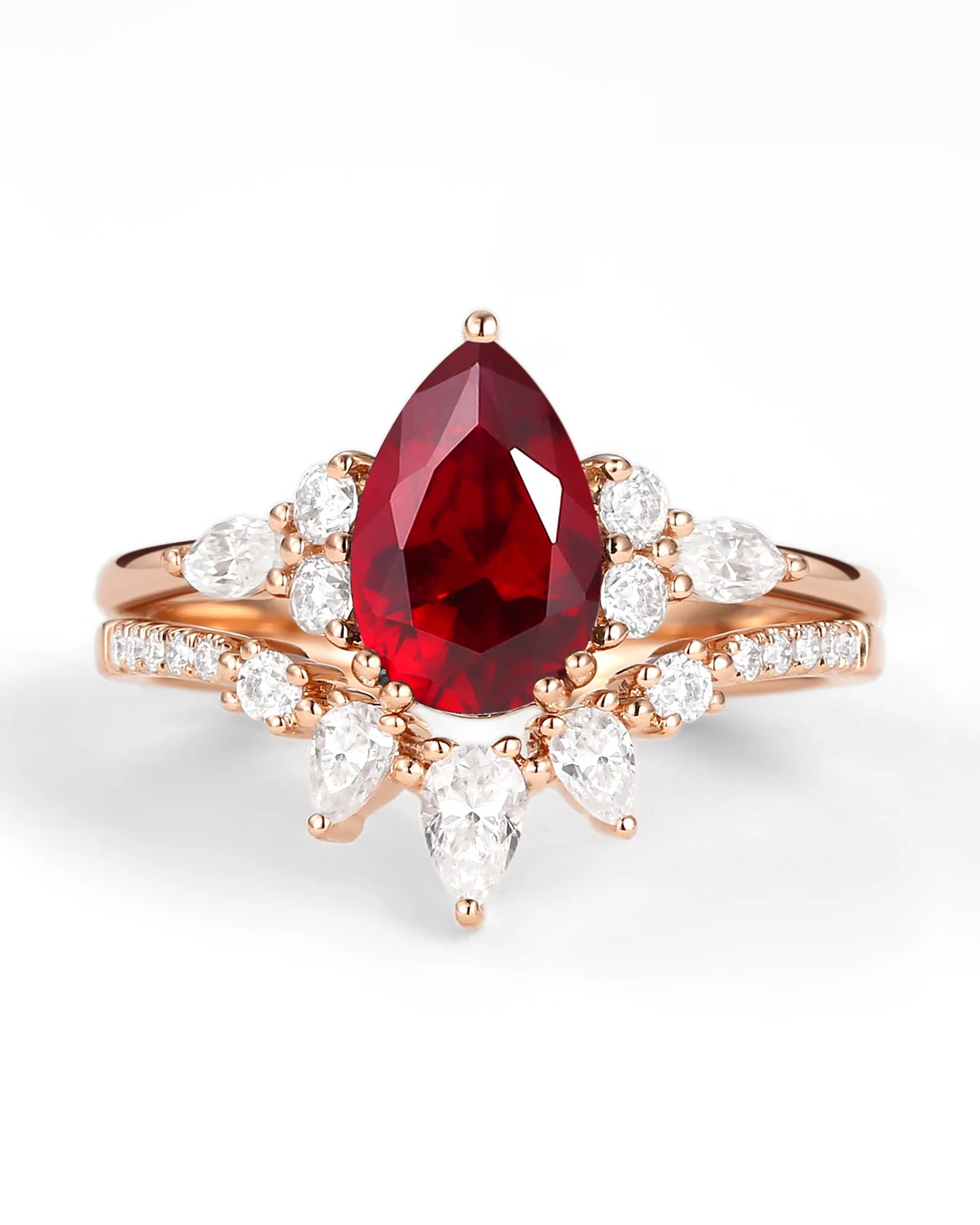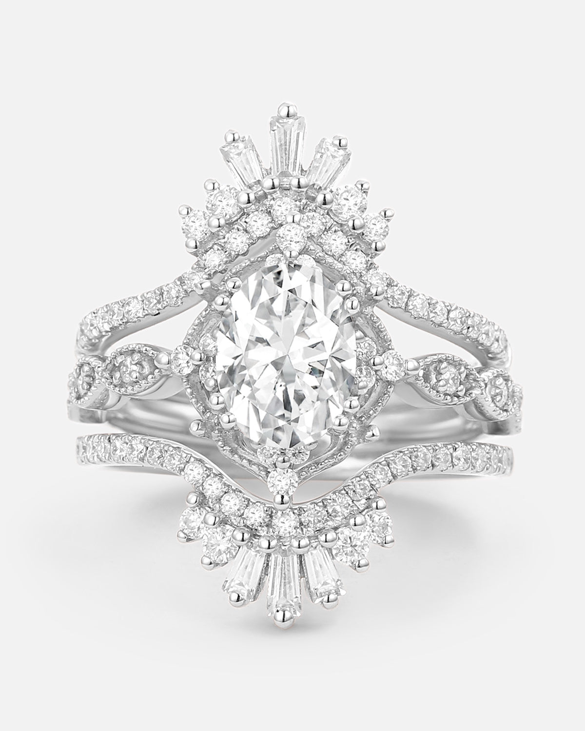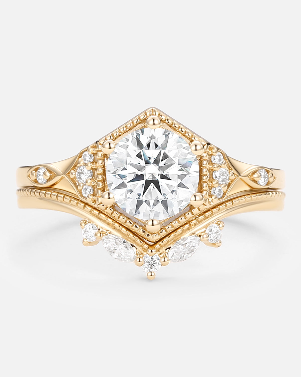 The Vintage Rings collection brings together exquisite rings in a vintage style, adding romance and elegance to your special moments. Each pear ring in this collection has been carefully designed, showcasing the charm of tradition and classic beauty while incorporating modern elements. Our moissanite vintage ring set is one of the highlights of this collection. Featuring high-quality moissanite as the main stone, these rings exude captivating brilliance and shimmer, making your engagement ring truly unique and eye-catching.