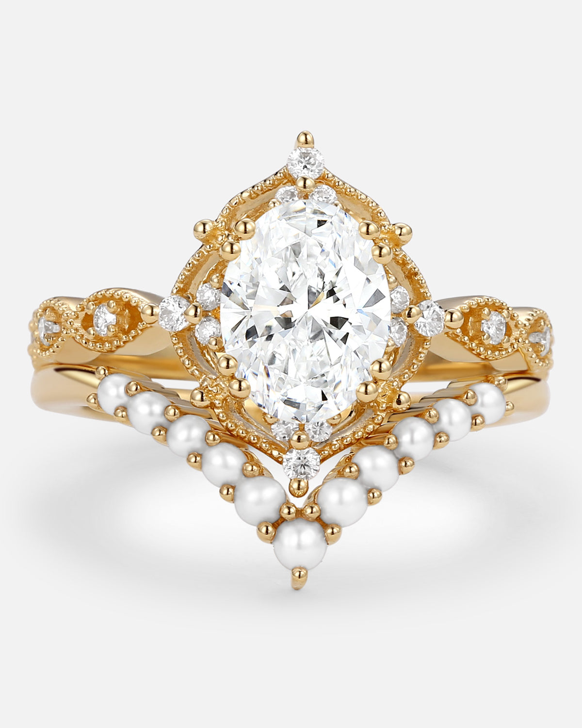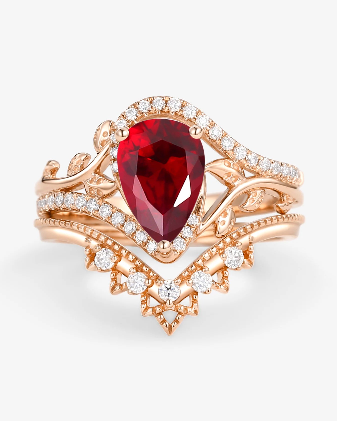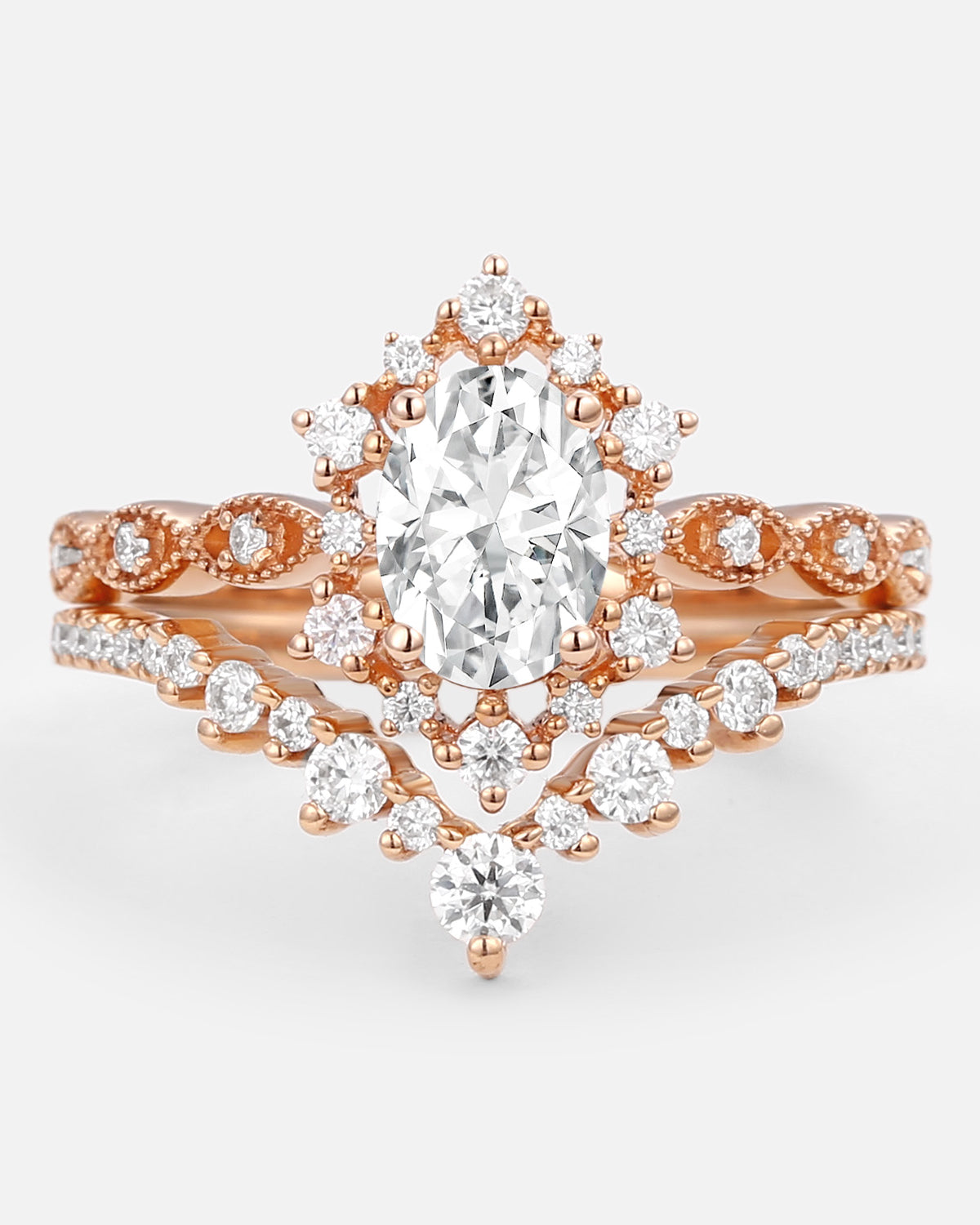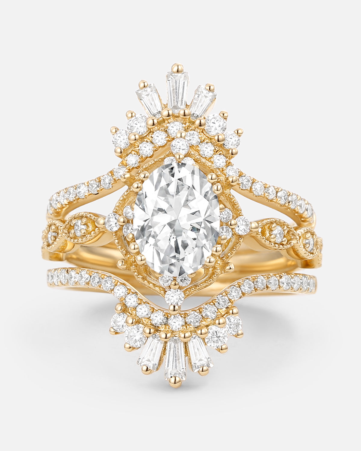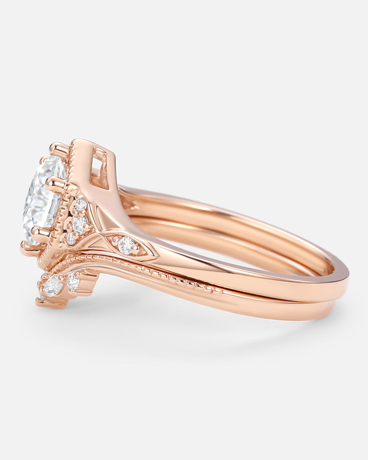 The Vintage Rings collection brings together exquisite rings in a vintage style, adding romance and elegance to your special moments. Each pear ring in this collection has been carefully designed, showcasing the charm of tradition and classic beauty while incorporating modern elements. Our moissanite vintage ring set is one of the highlights of this collection. Featuring high-quality moissanite as the main stone, these rings exude captivating brilliance and shimmer, making your engagement ring truly unique and eye-catching.