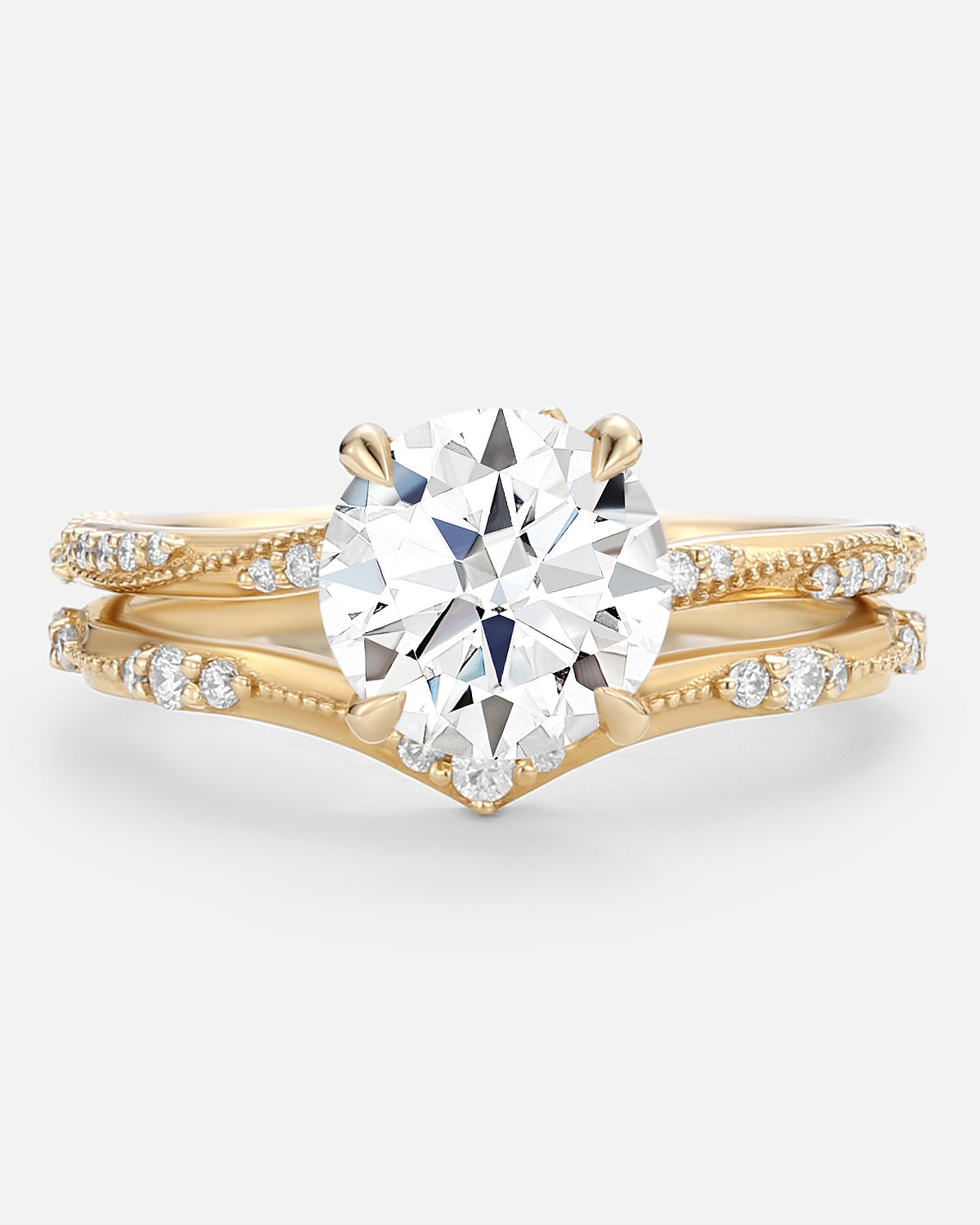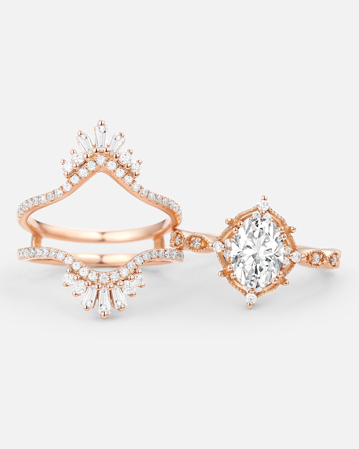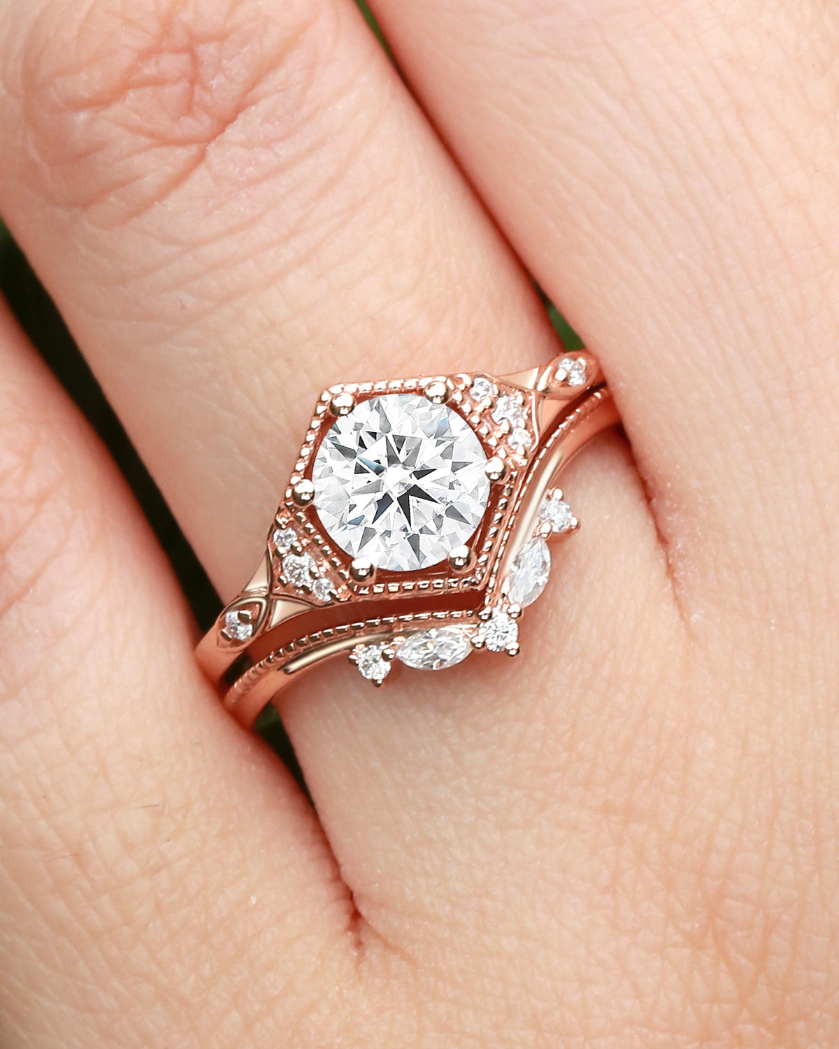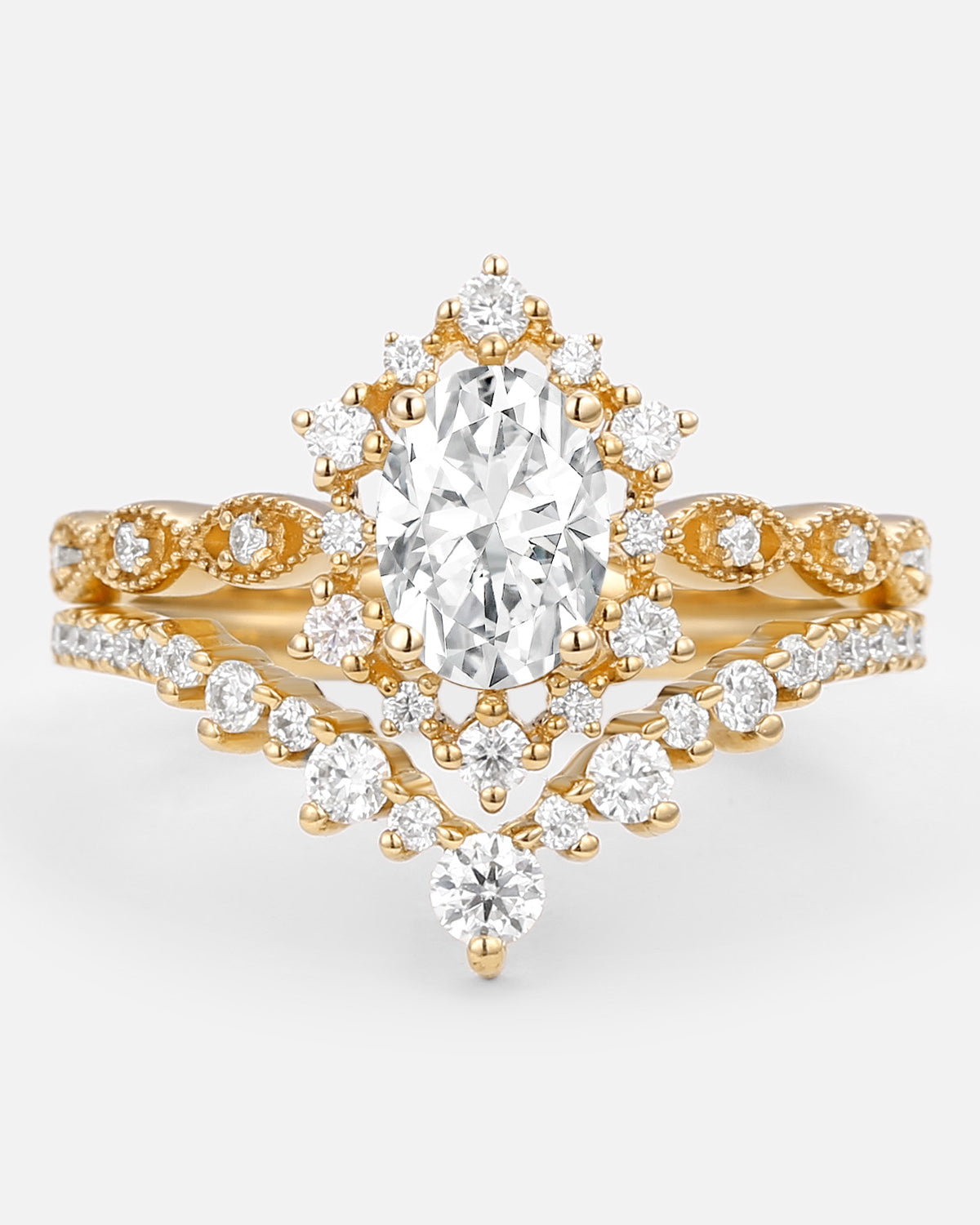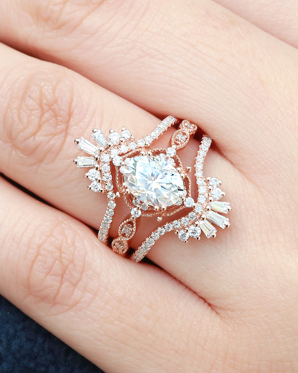 The Vintage Rings collection brings together exquisite rings in a vintage style, adding romance and elegance to your special moments. Each pear ring in this collection has been carefully designed, showcasing the charm of tradition and classic beauty while incorporating modern elements. Our moissanite vintage ring set is one of the highlights of this collection. Featuring high-quality moissanite as the main stone, these rings exude captivating brilliance and shimmer, making your engagement ring truly unique and eye-catching.