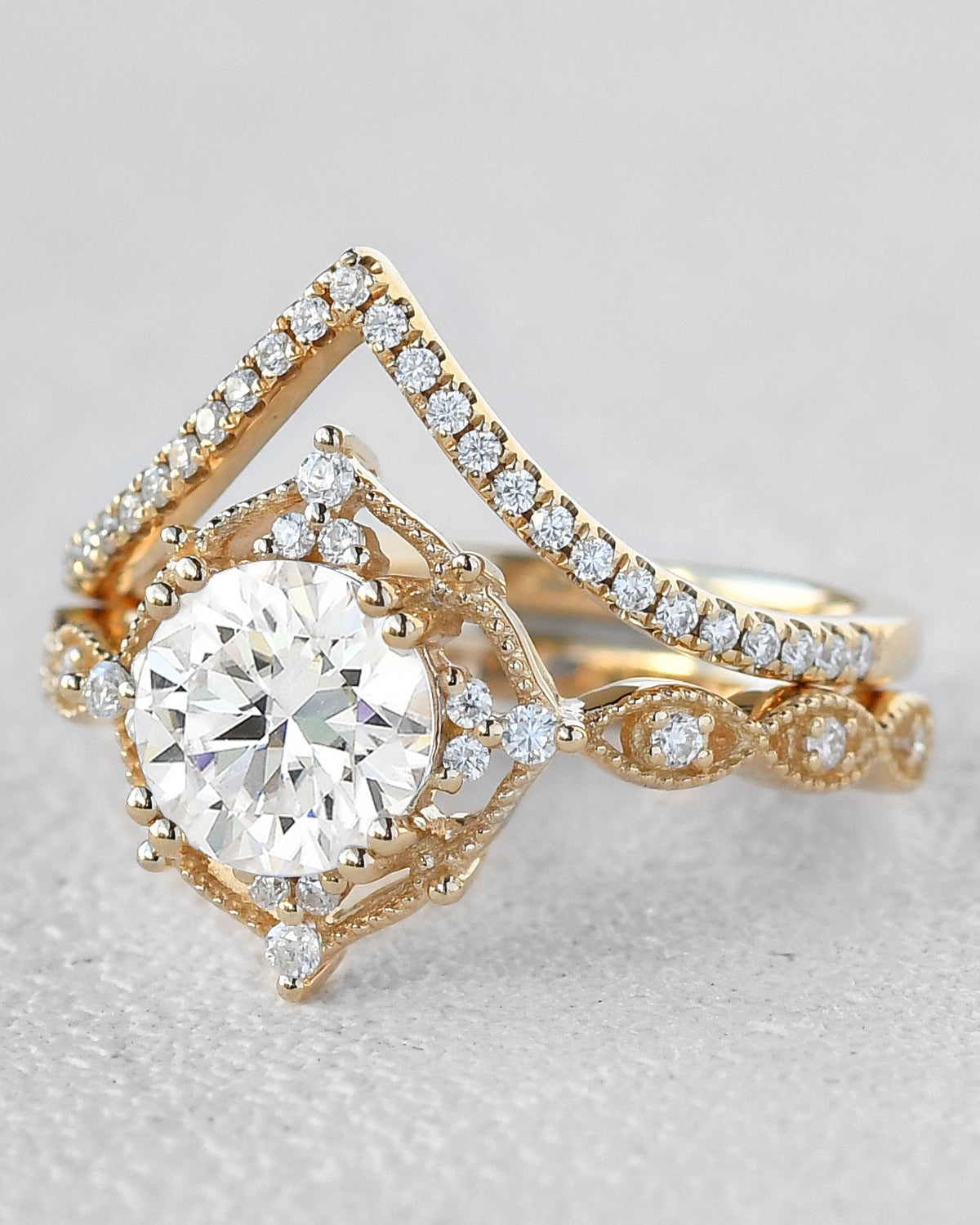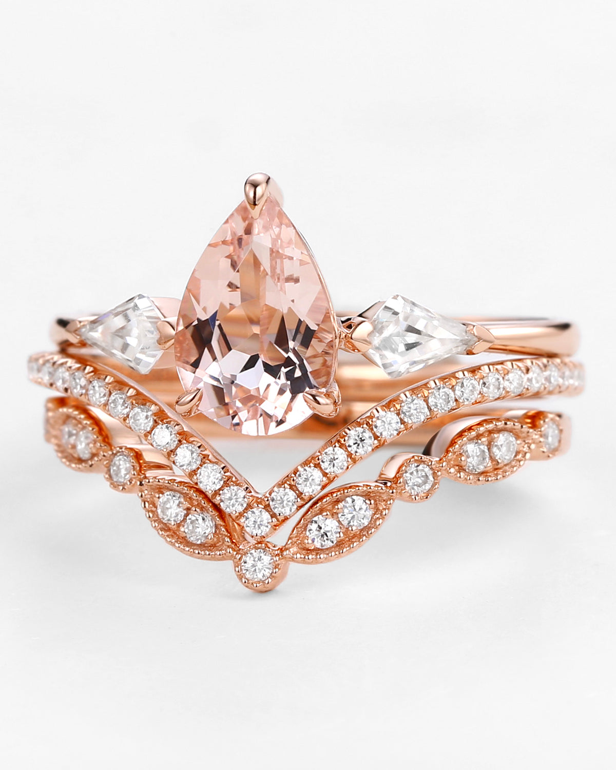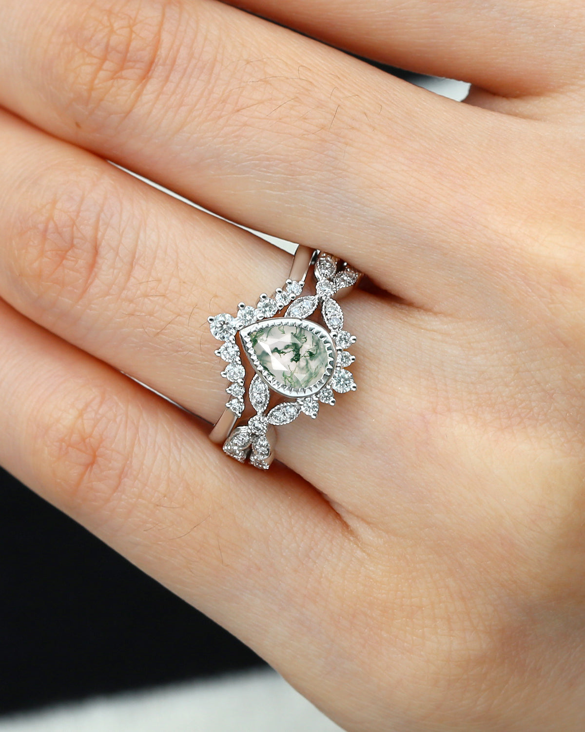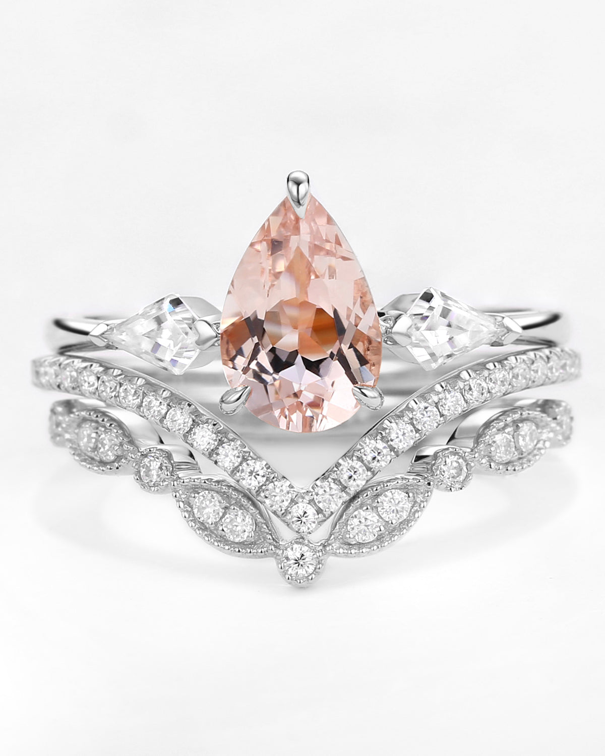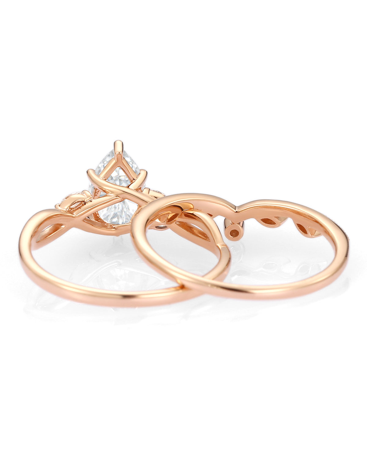 The Vintage Rings collection brings together exquisite rings in a vintage style, adding romance and elegance to your special moments. Each pear ring in this collection has been carefully designed, showcasing the charm of tradition and classic beauty while incorporating modern elements. Our moissanite vintage ring set is one of the highlights of this collection. Featuring high-quality moissanite as the main stone, these rings exude captivating brilliance and shimmer, making your engagement ring truly unique and eye-catching.