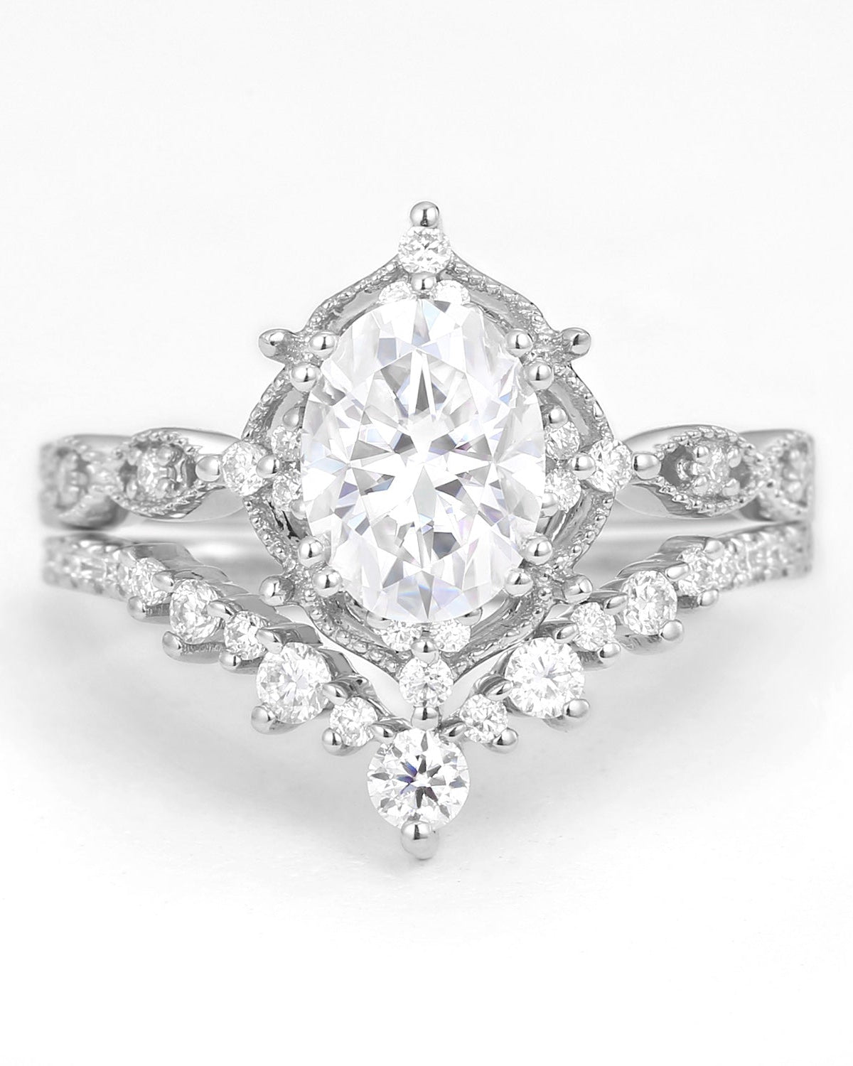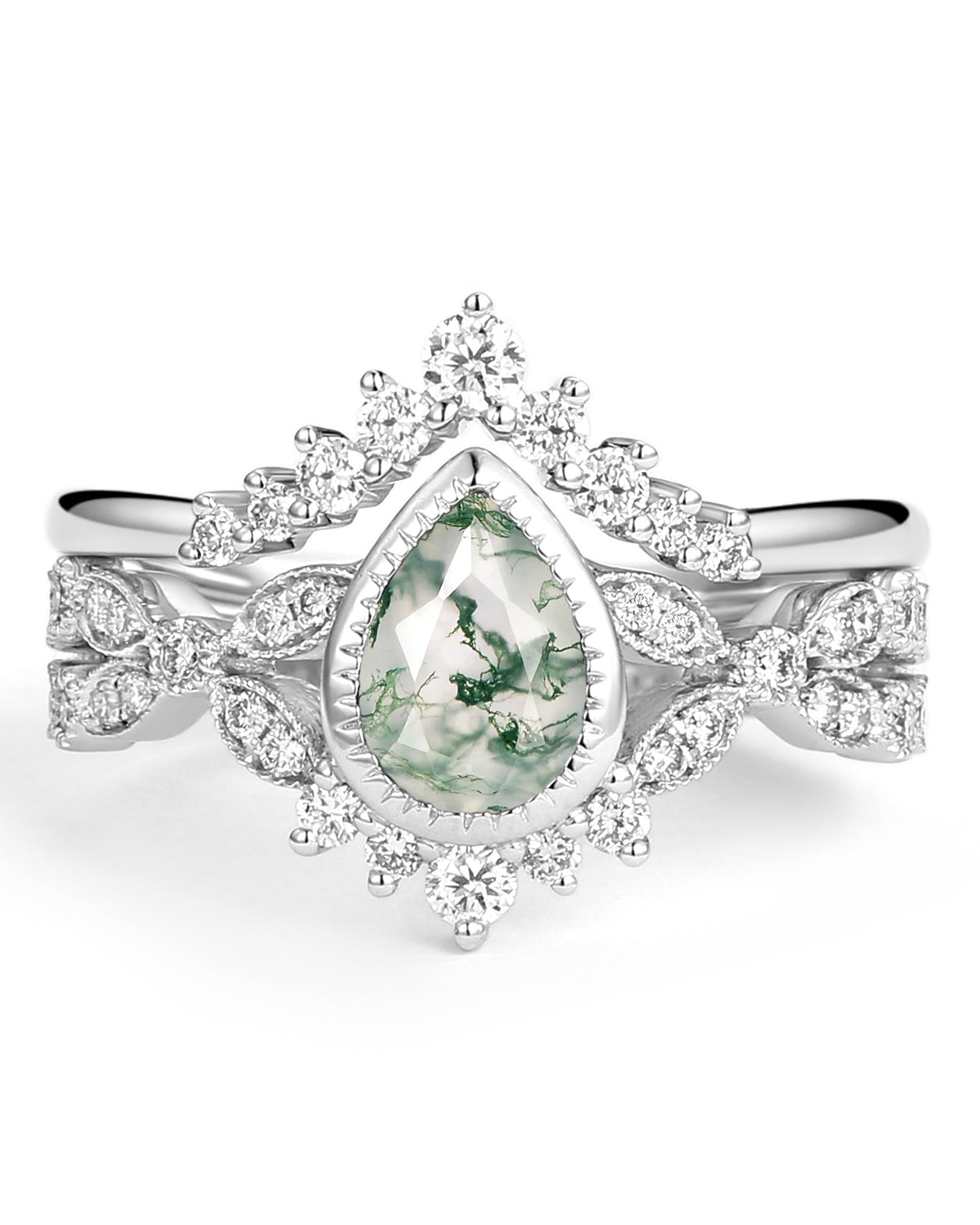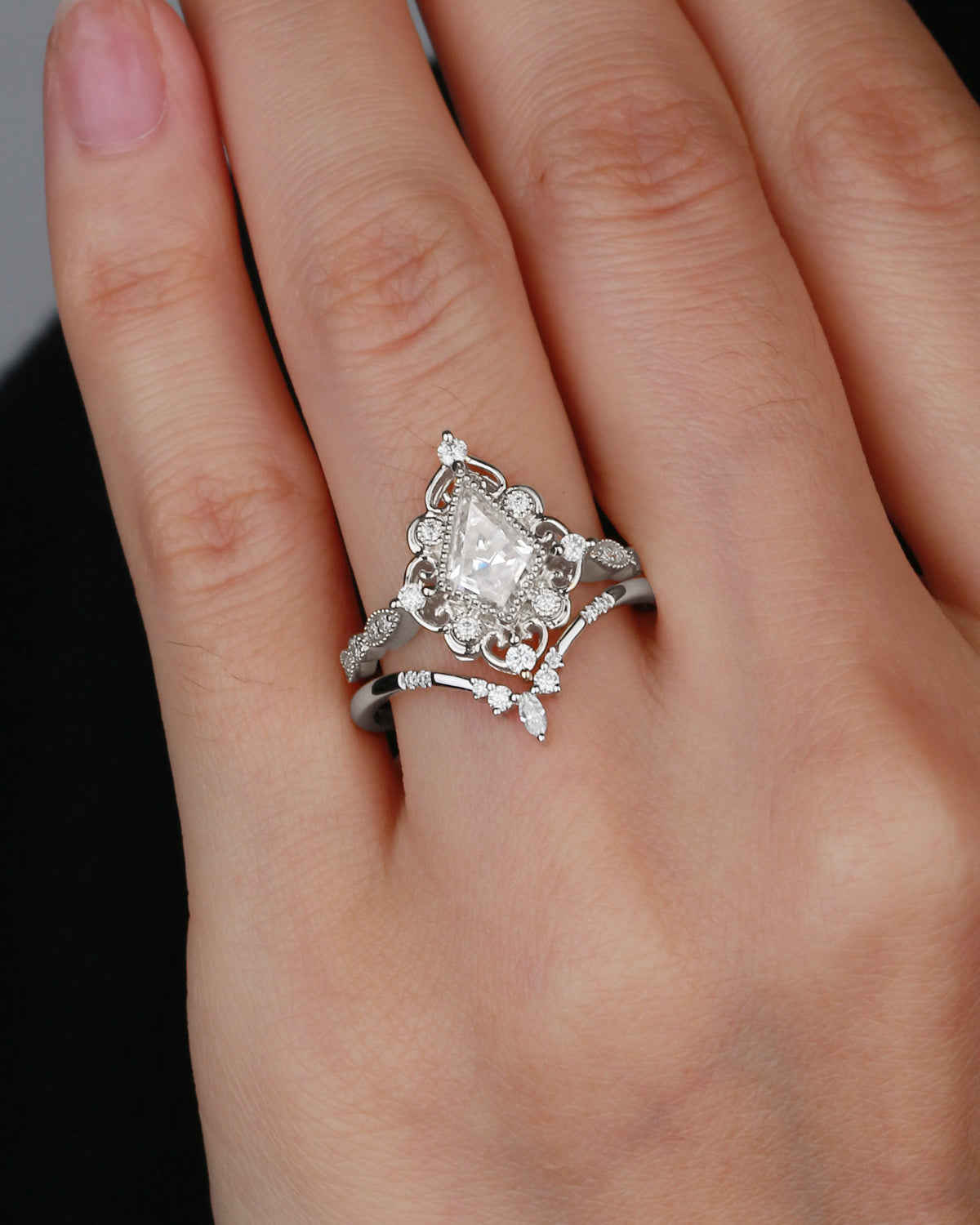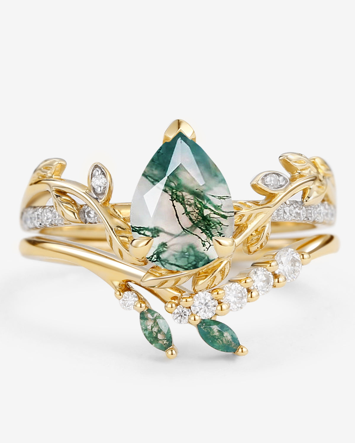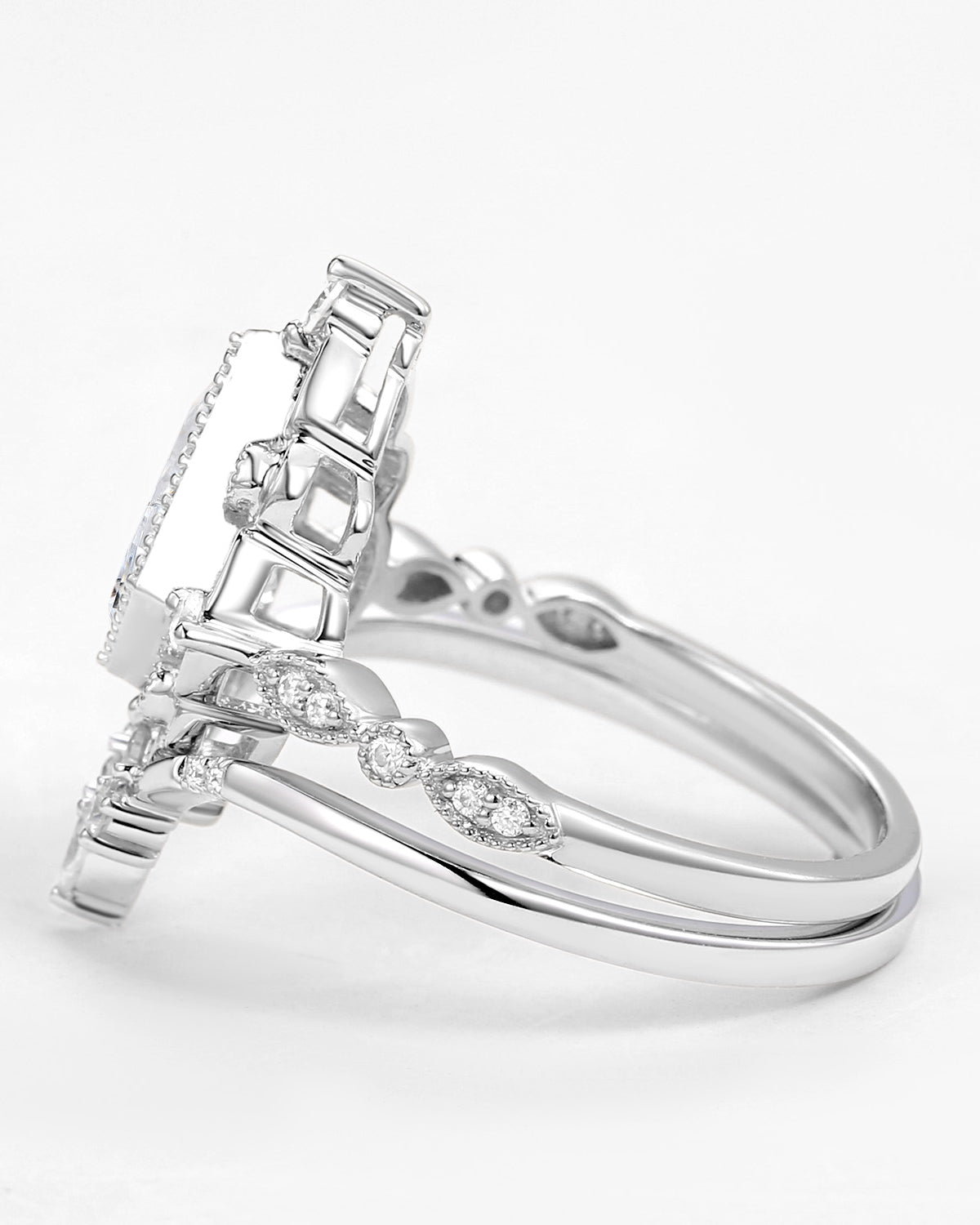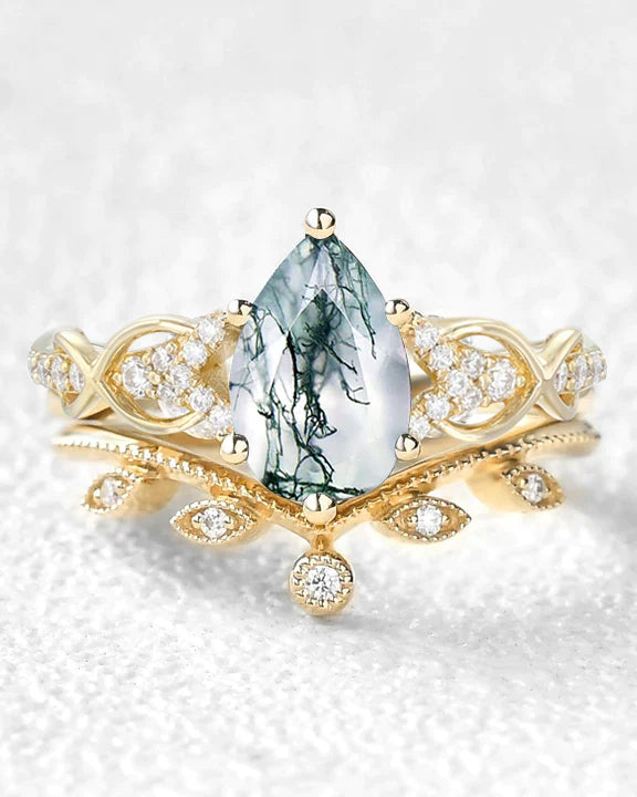 The Vintage Rings collection brings together exquisite rings in a vintage style, adding romance and elegance to your special moments. Each pear ring in this collection has been carefully designed, showcasing the charm of tradition and classic beauty while incorporating modern elements. Our moissanite vintage ring set is one of the highlights of this collection. Featuring high-quality moissanite as the main stone, these rings exude captivating brilliance and shimmer, making your engagement ring truly unique and eye-catching.