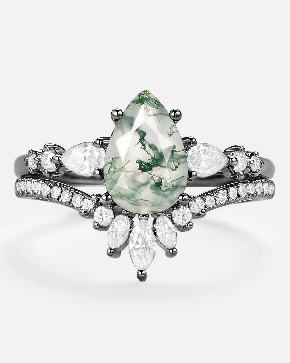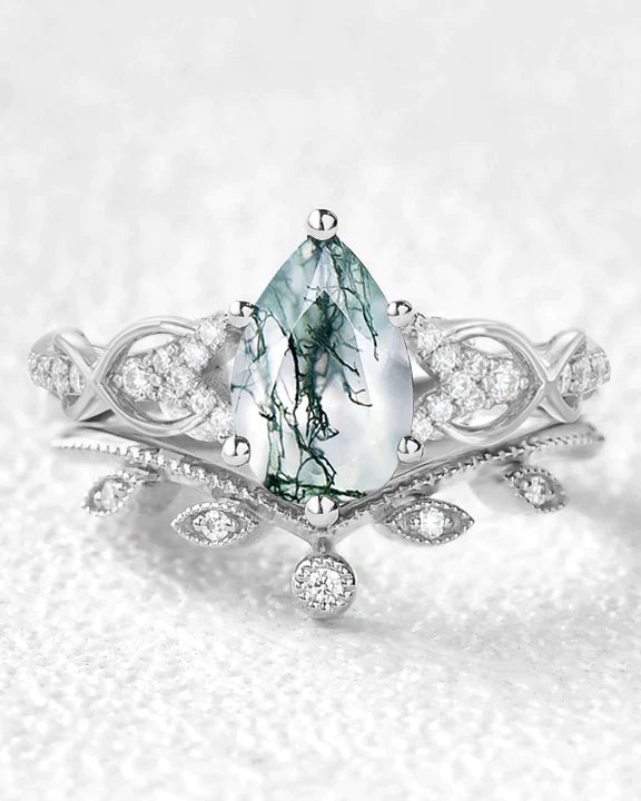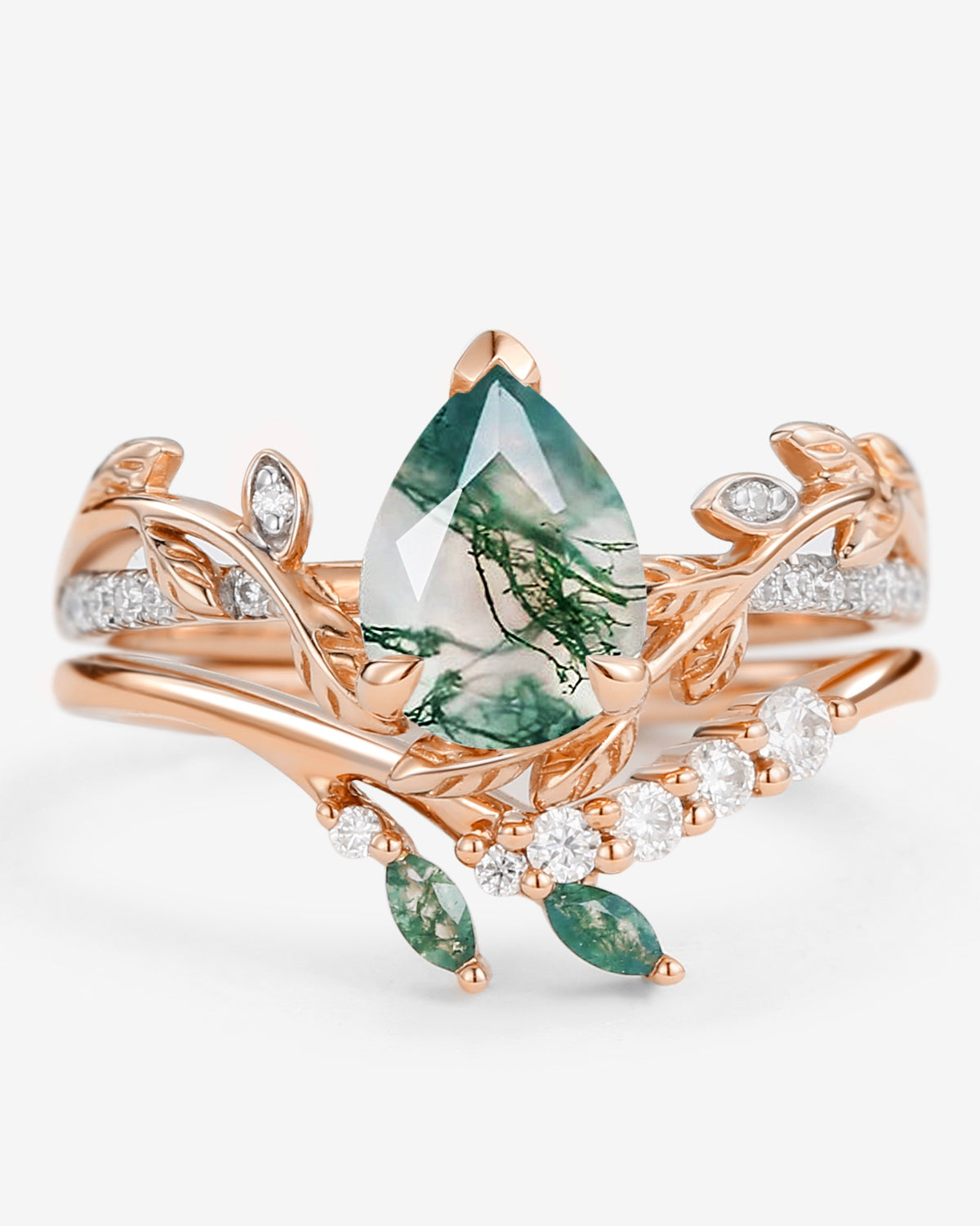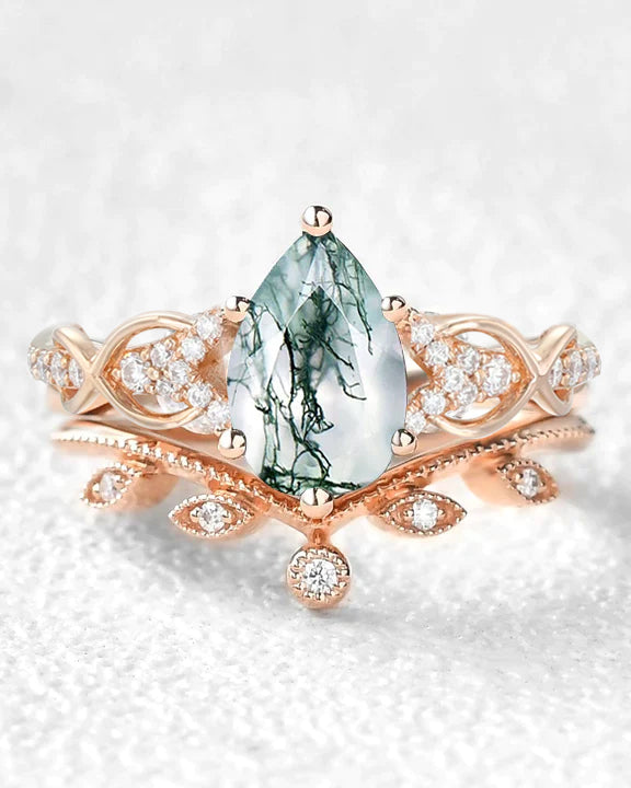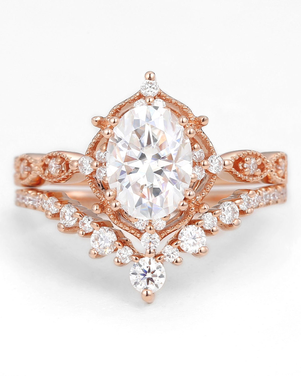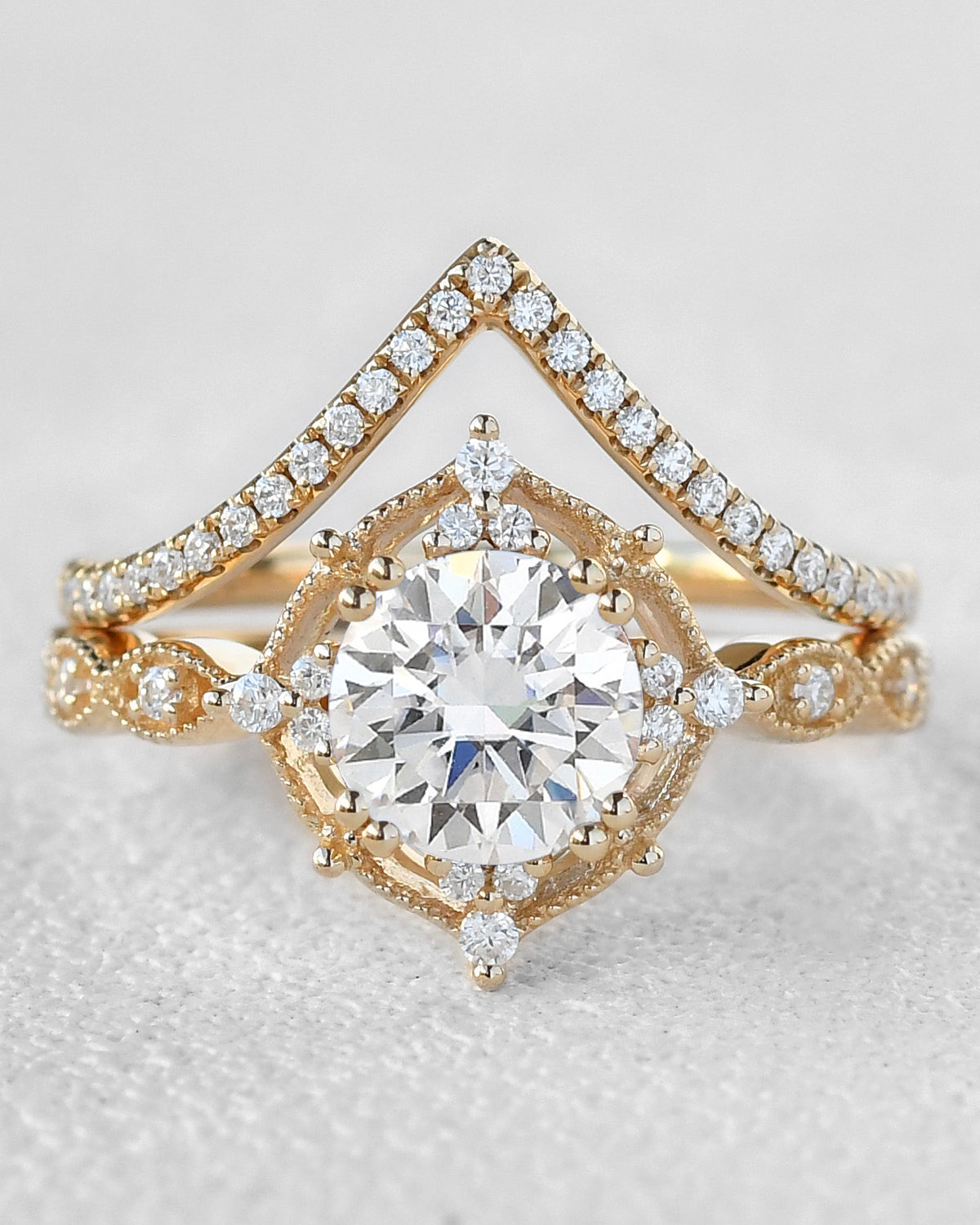 The Vintage Rings collection brings together exquisite rings in a vintage style, adding romance and elegance to your special moments. Each pear ring in this collection has been carefully designed, showcasing the charm of tradition and classic beauty while incorporating modern elements. Our moissanite vintage ring set is one of the highlights of this collection. Featuring high-quality moissanite as the main stone, these rings exude captivating brilliance and shimmer, making your engagement ring truly unique and eye-catching.
