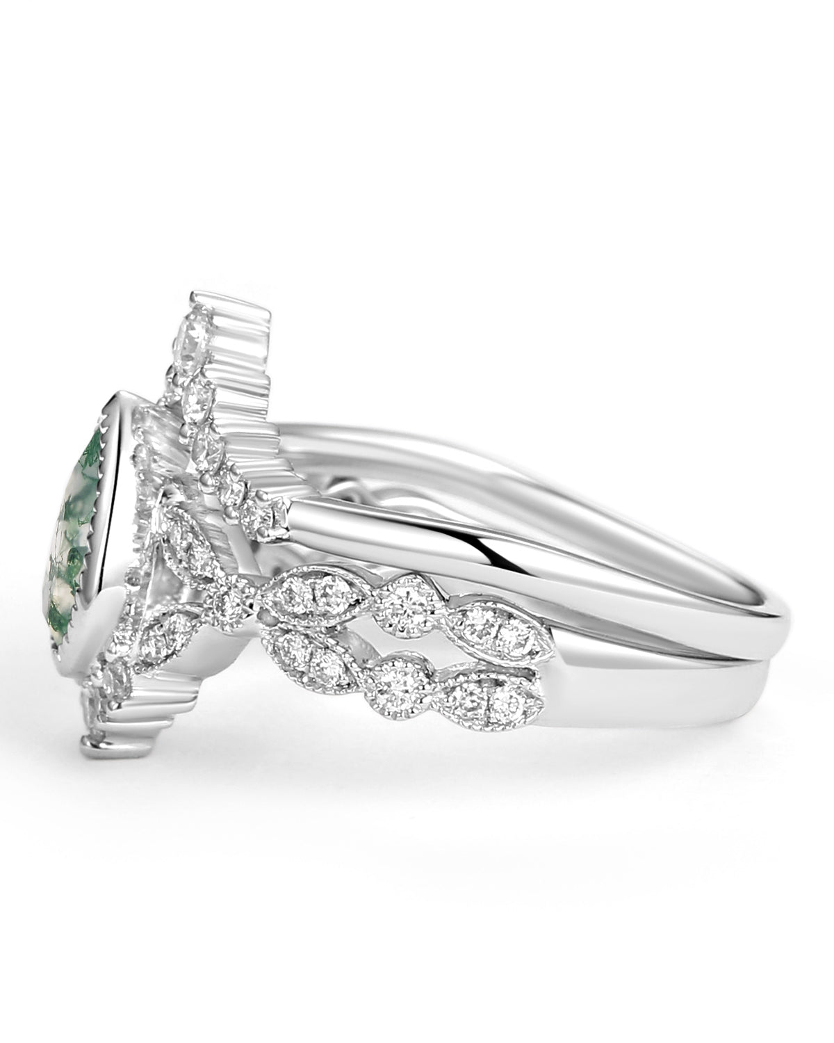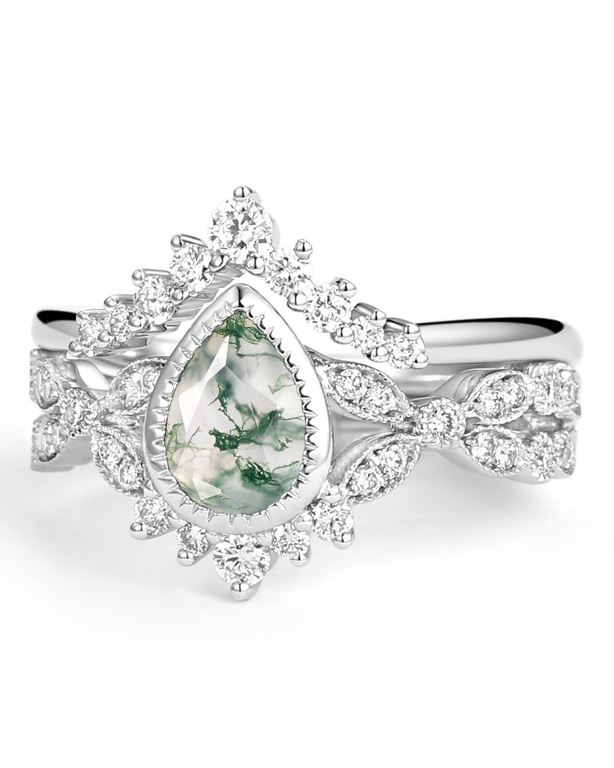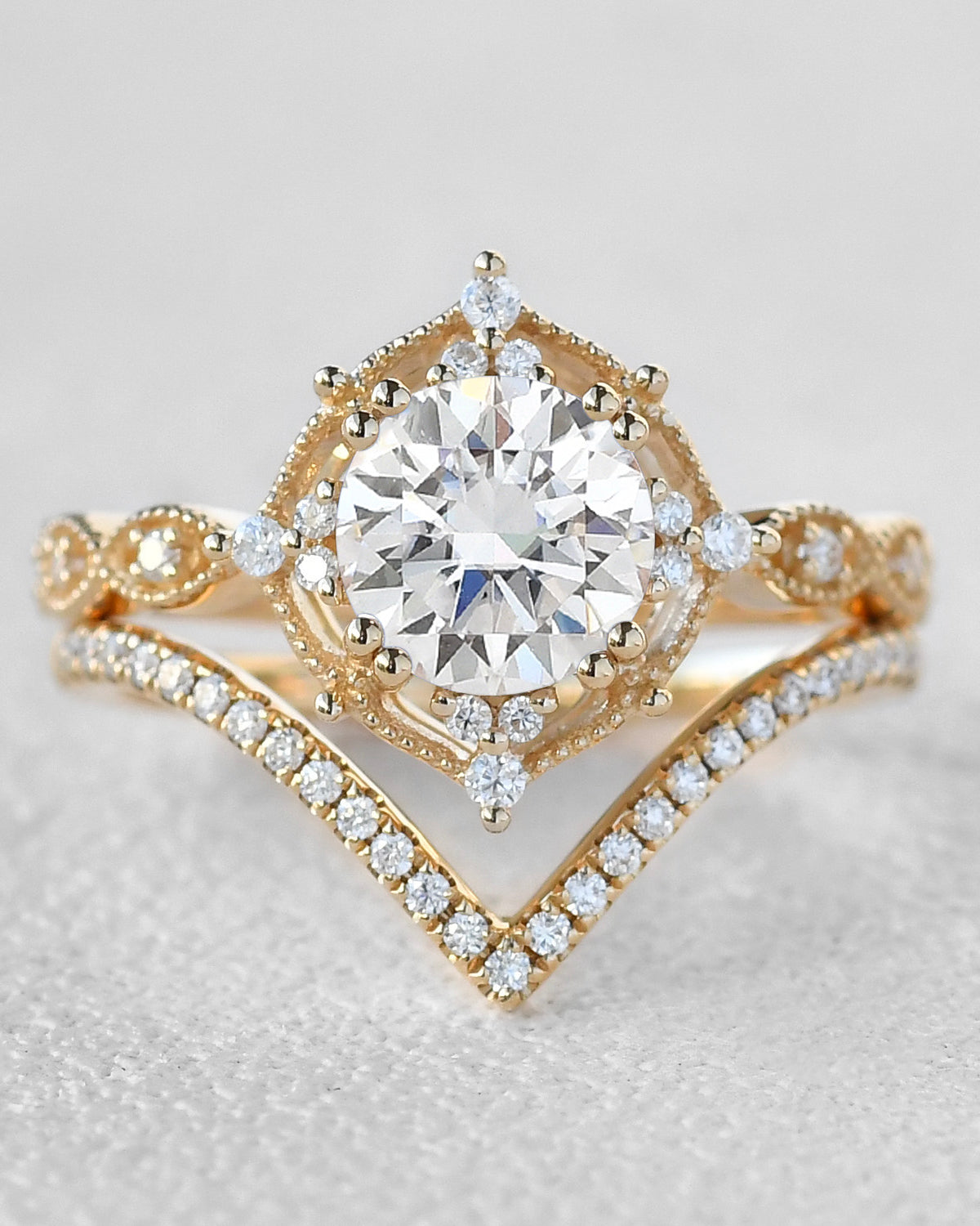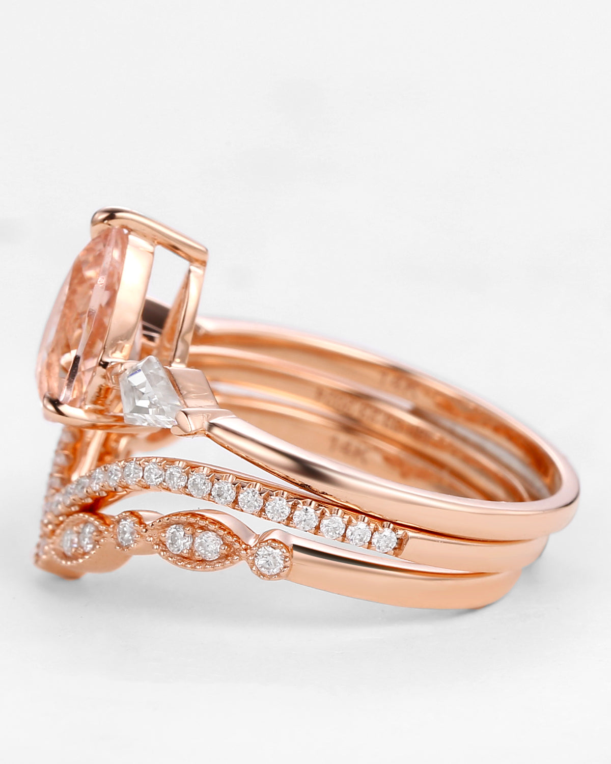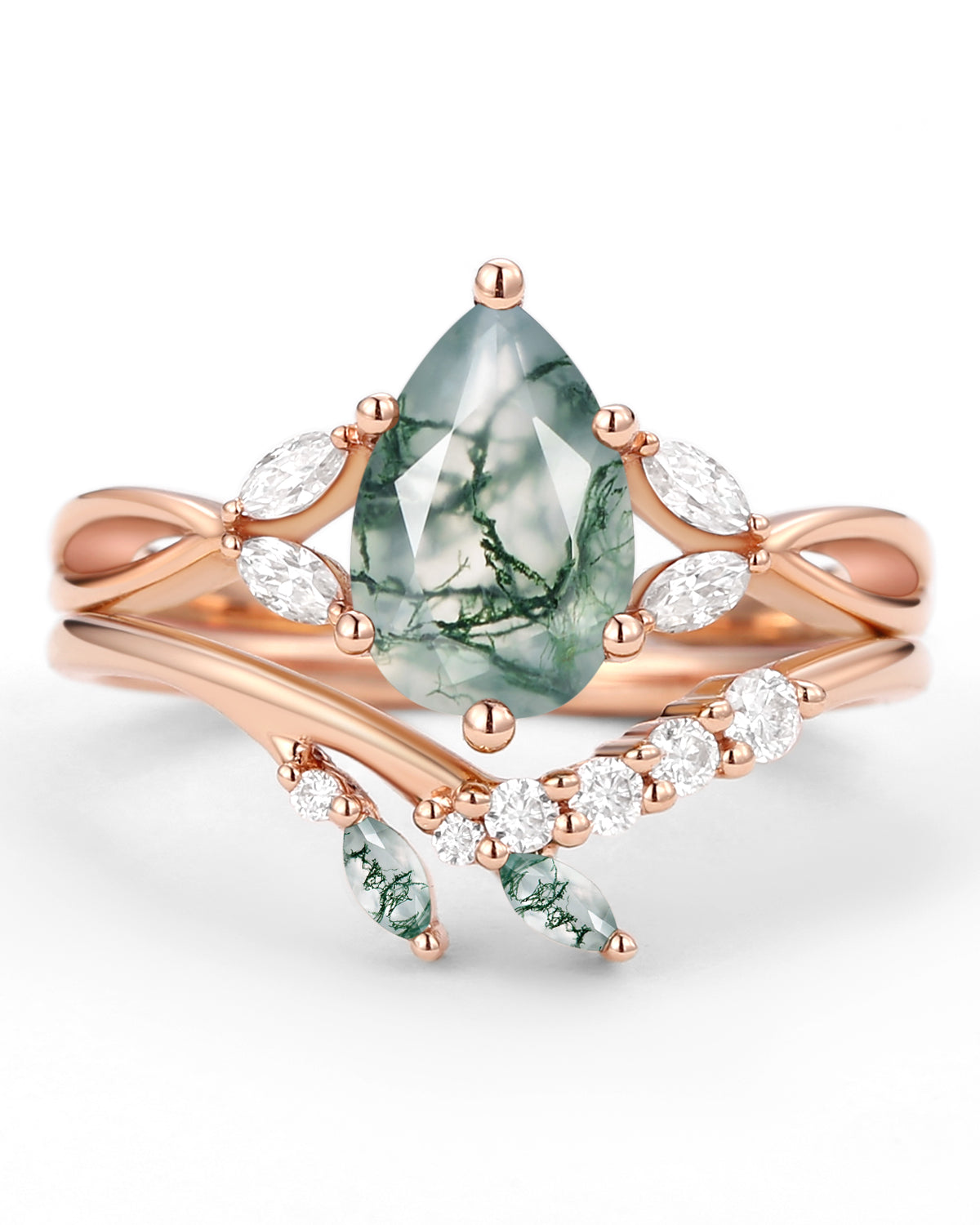 The Vintage Rings collection brings together exquisite rings in a vintage style, adding romance and elegance to your special moments. Each pear ring in this collection has been carefully designed, showcasing the charm of tradition and classic beauty while incorporating modern elements. Our moissanite vintage ring set is one of the highlights of this collection. Featuring high-quality moissanite as the main stone, these rings exude captivating brilliance and shimmer, making your engagement ring truly unique and eye-catching.
