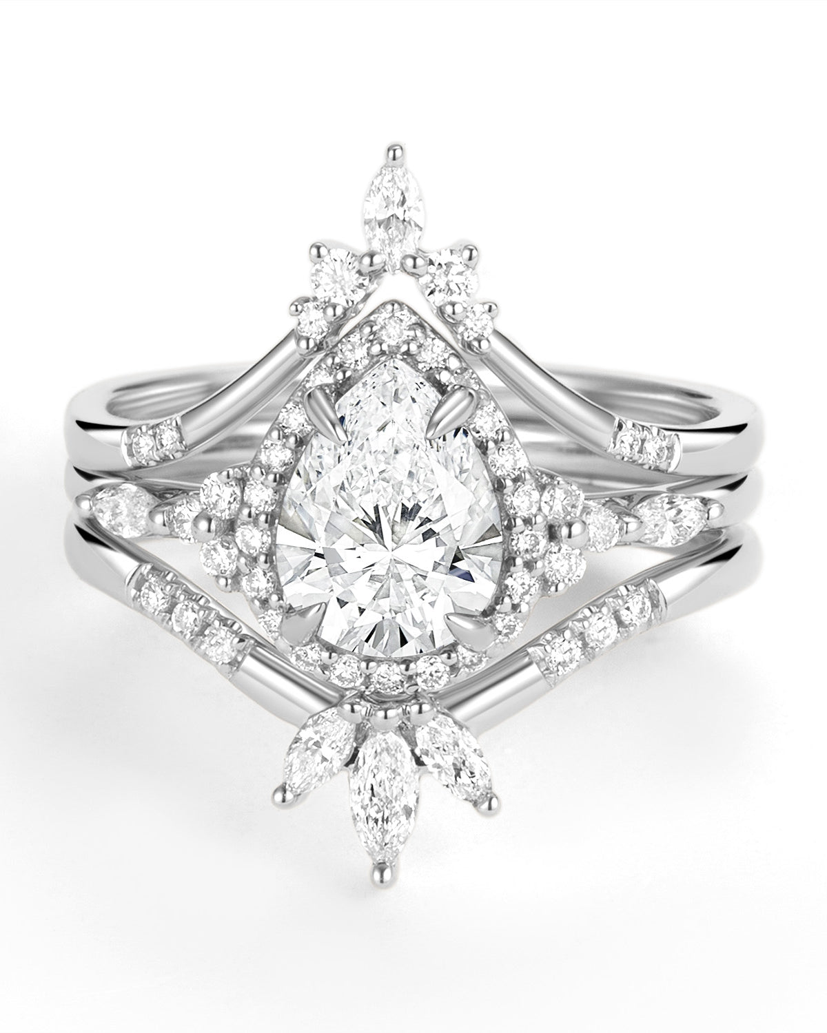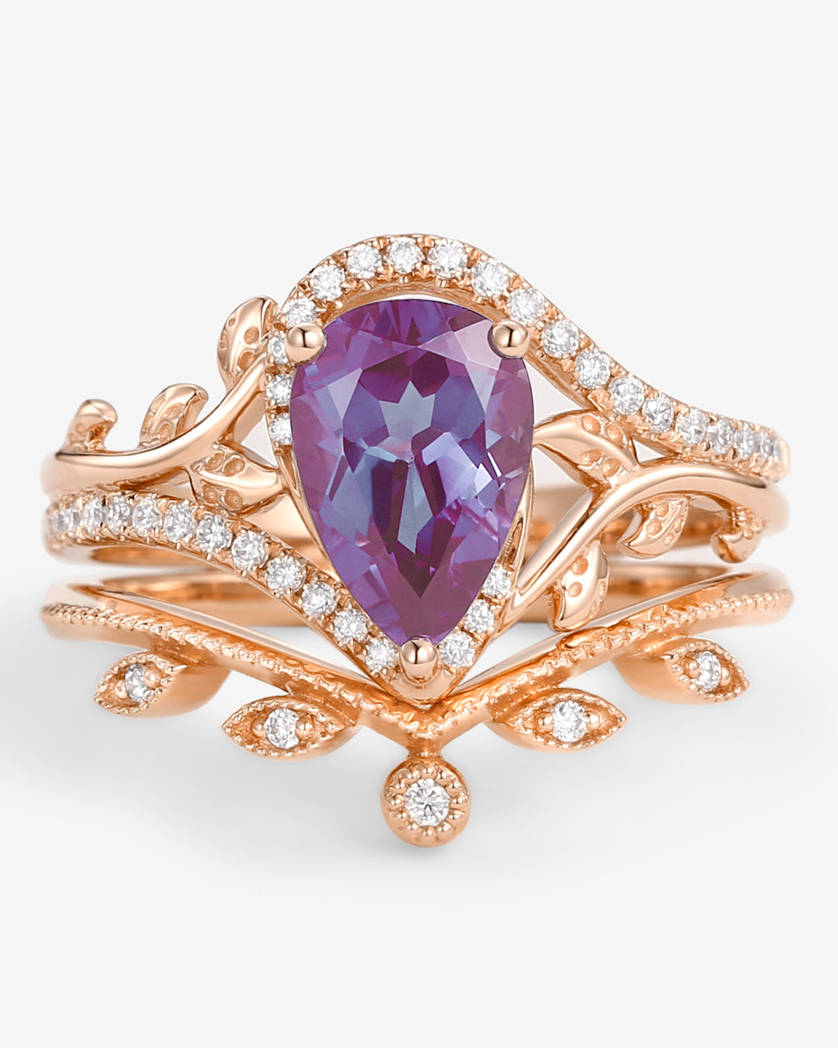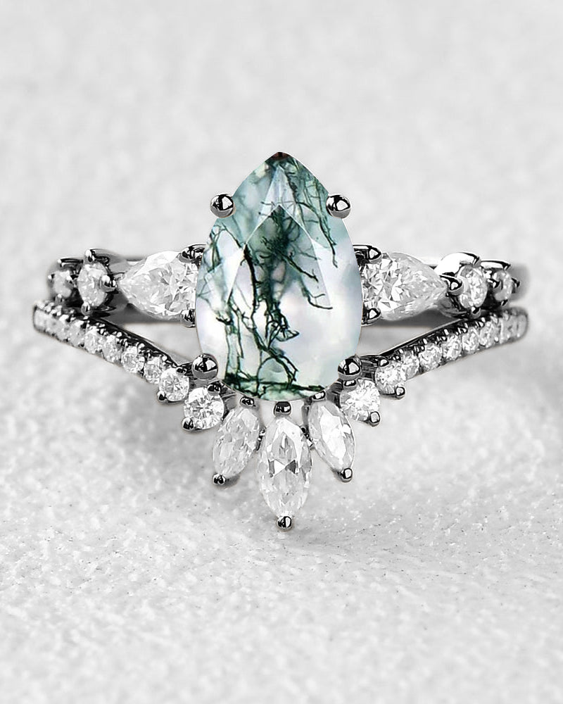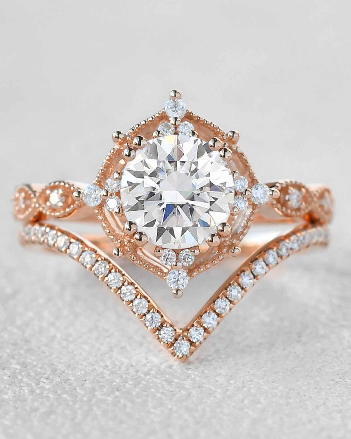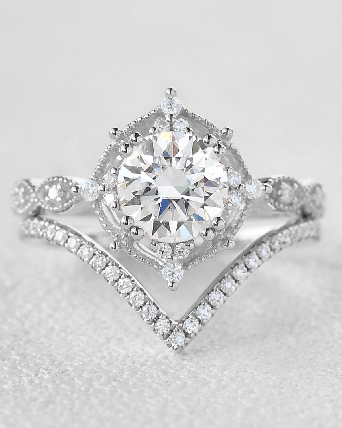 The Vintage Rings collection brings together exquisite rings in a vintage style, adding romance and elegance to your special moments. Each pear ring in this collection has been carefully designed, showcasing the charm of tradition and classic beauty while incorporating modern elements. Our moissanite vintage ring set is one of the highlights of this collection. Featuring high-quality moissanite as the main stone, these rings exude captivating brilliance and shimmer, making your engagement ring truly unique and eye-catching.
