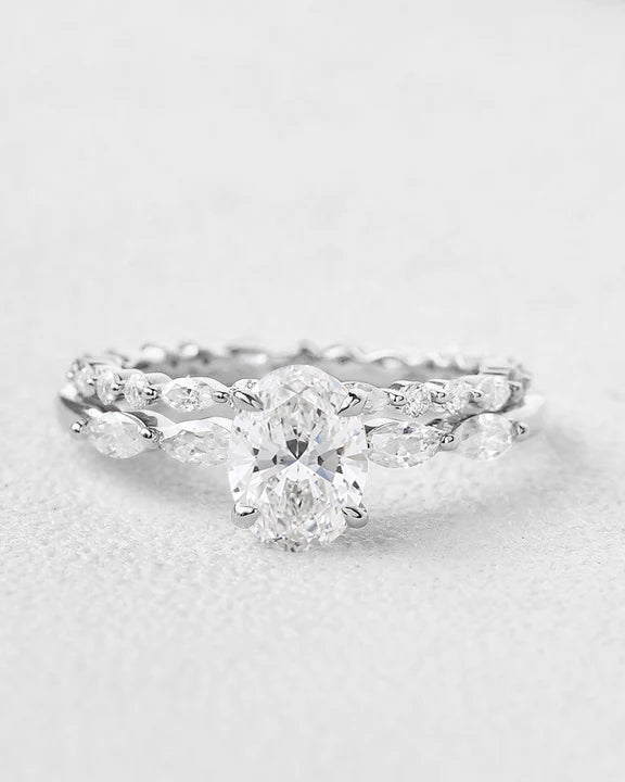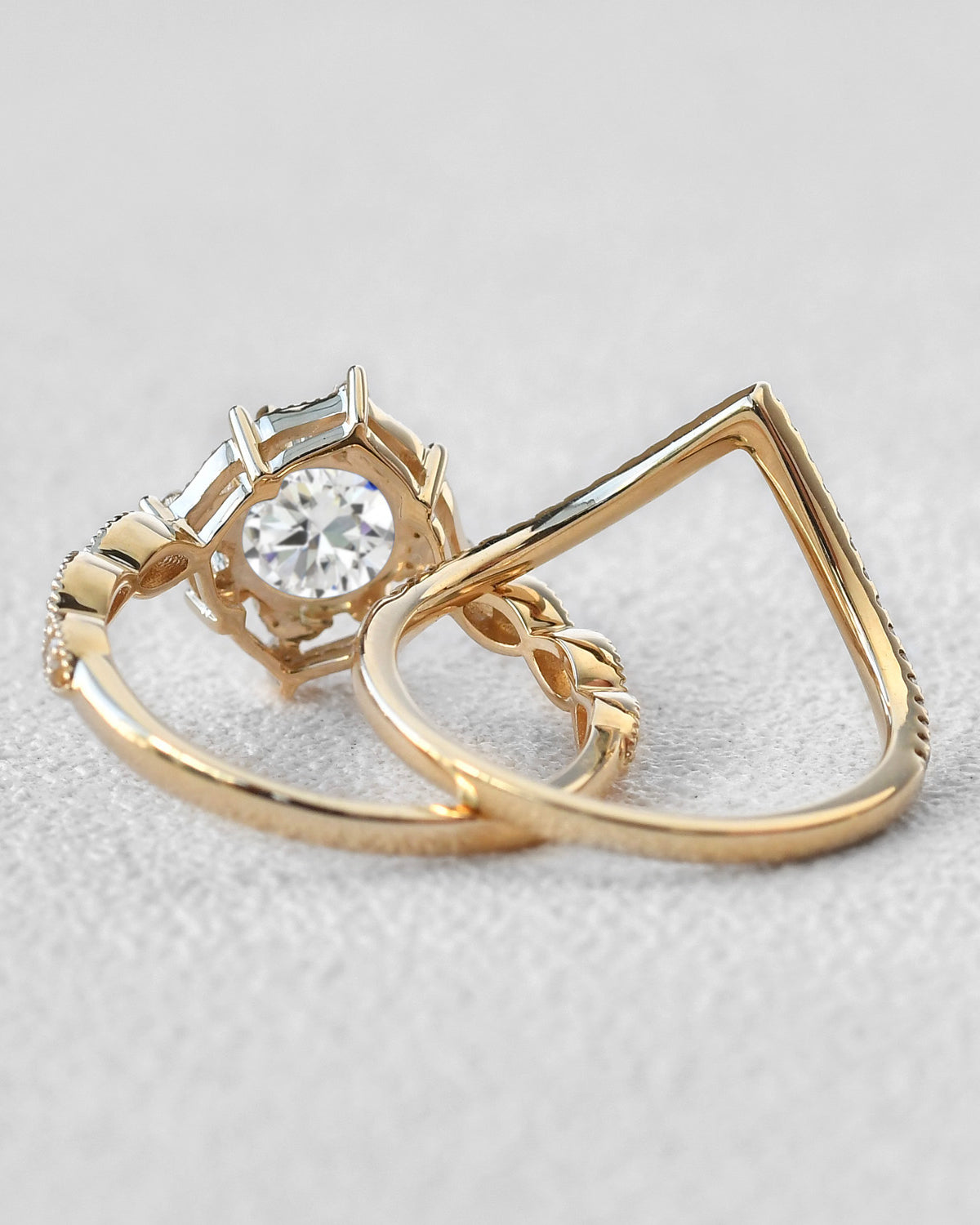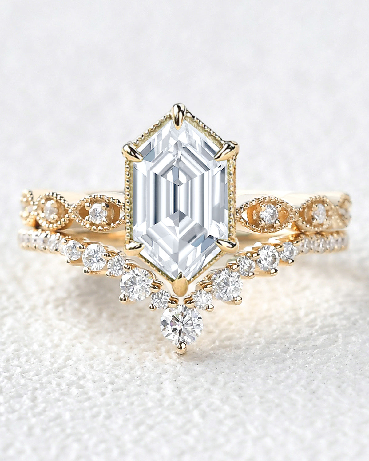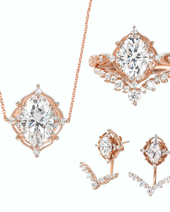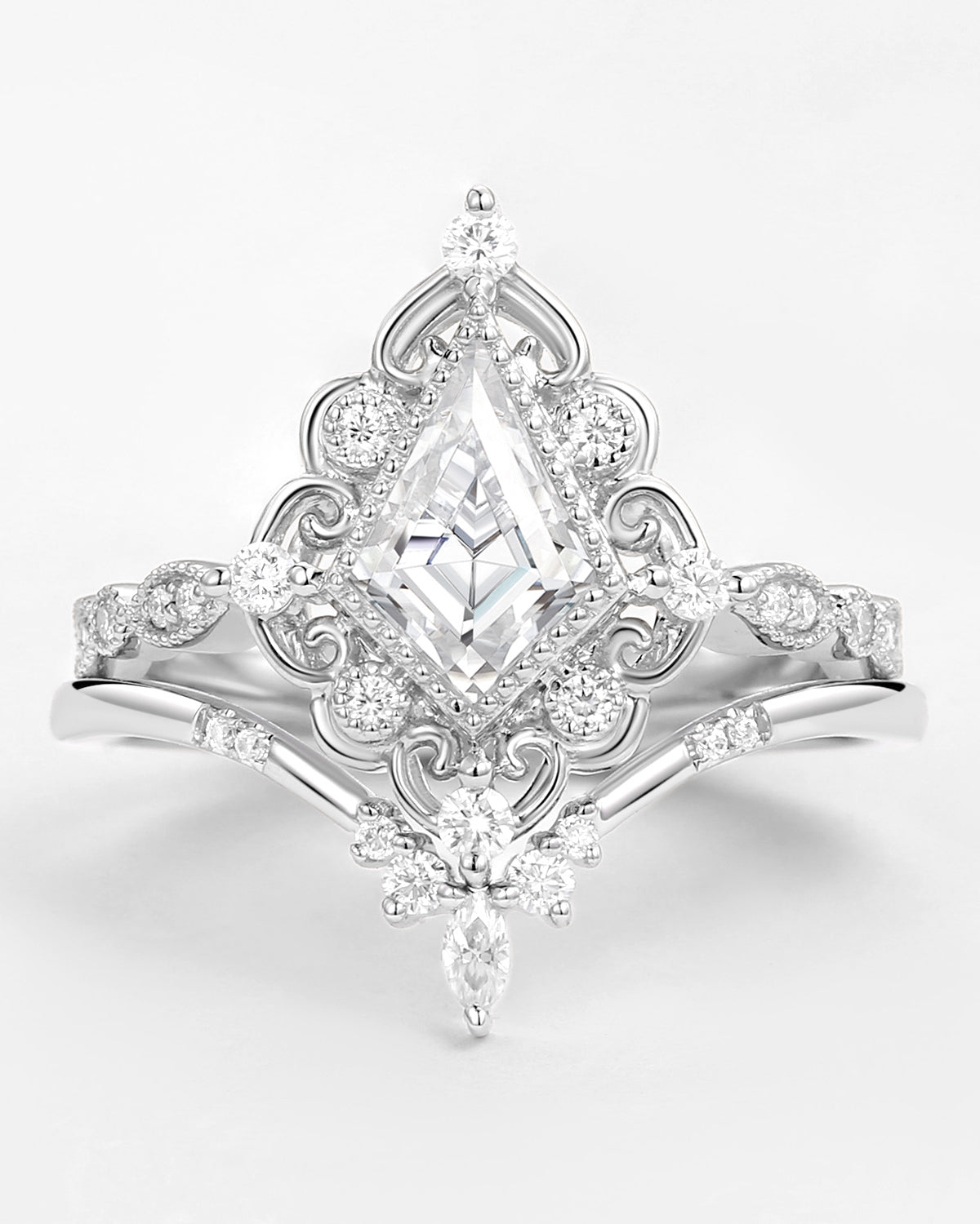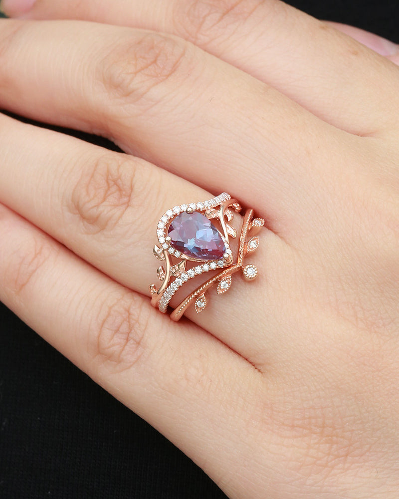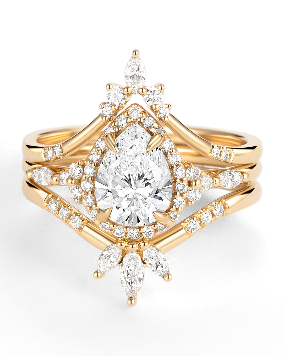 The Vintage Rings collection brings together exquisite rings in a vintage style, adding romance and elegance to your special moments. Each pear ring in this collection has been carefully designed, showcasing the charm of tradition and classic beauty while incorporating modern elements. Our moissanite vintage ring set is one of the highlights of this collection. Featuring high-quality moissanite as the main stone, these rings exude captivating brilliance and shimmer, making your engagement ring truly unique and eye-catching.