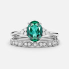 1.5ct Lab Emerald Oval Cut Yellow Gold Ring Set 2pcs - Elora