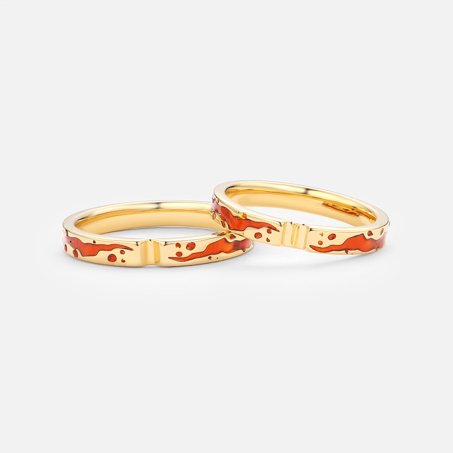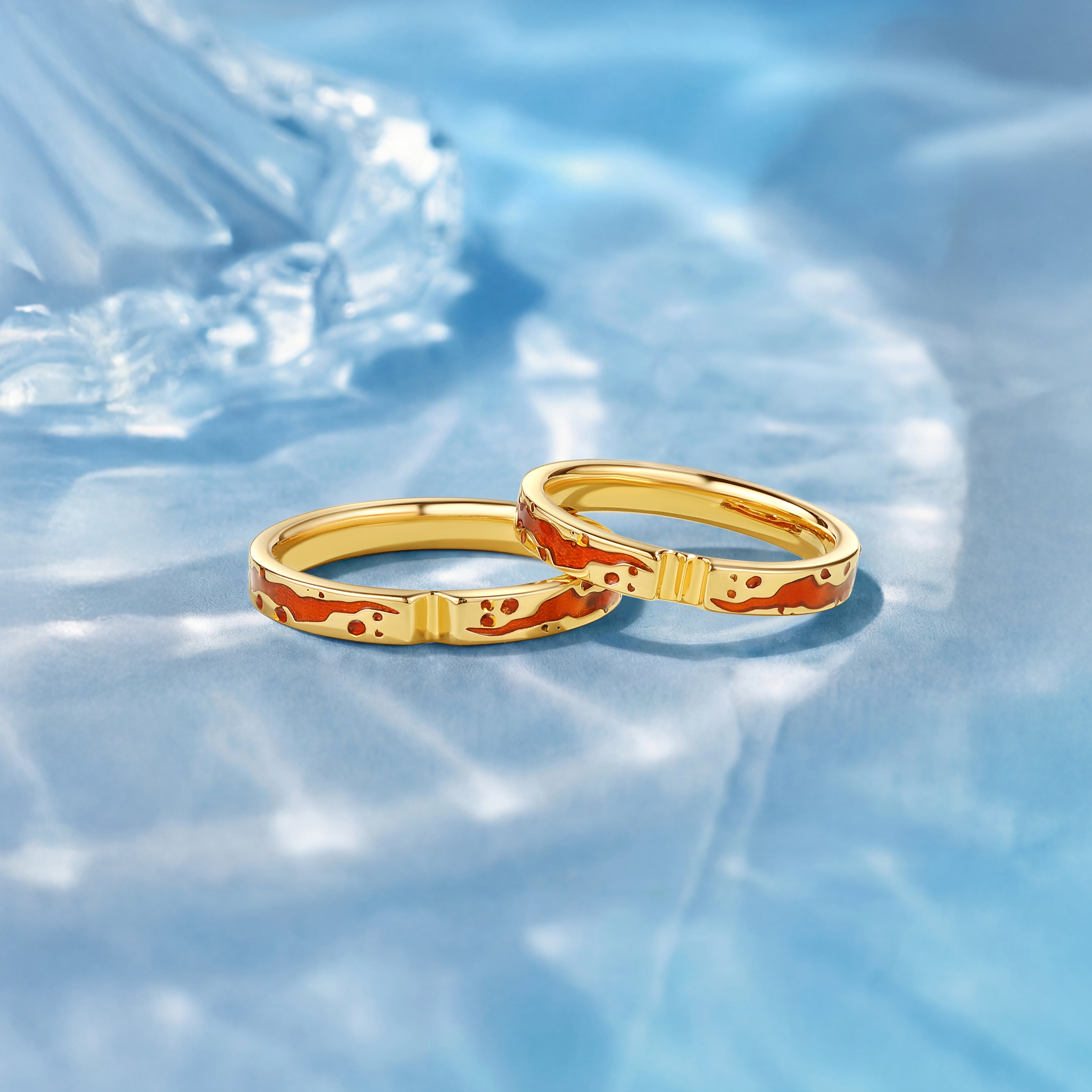 Heartfire Union - Matching Heart Shaped Brown Enamel Couple Ring Set 2pcs