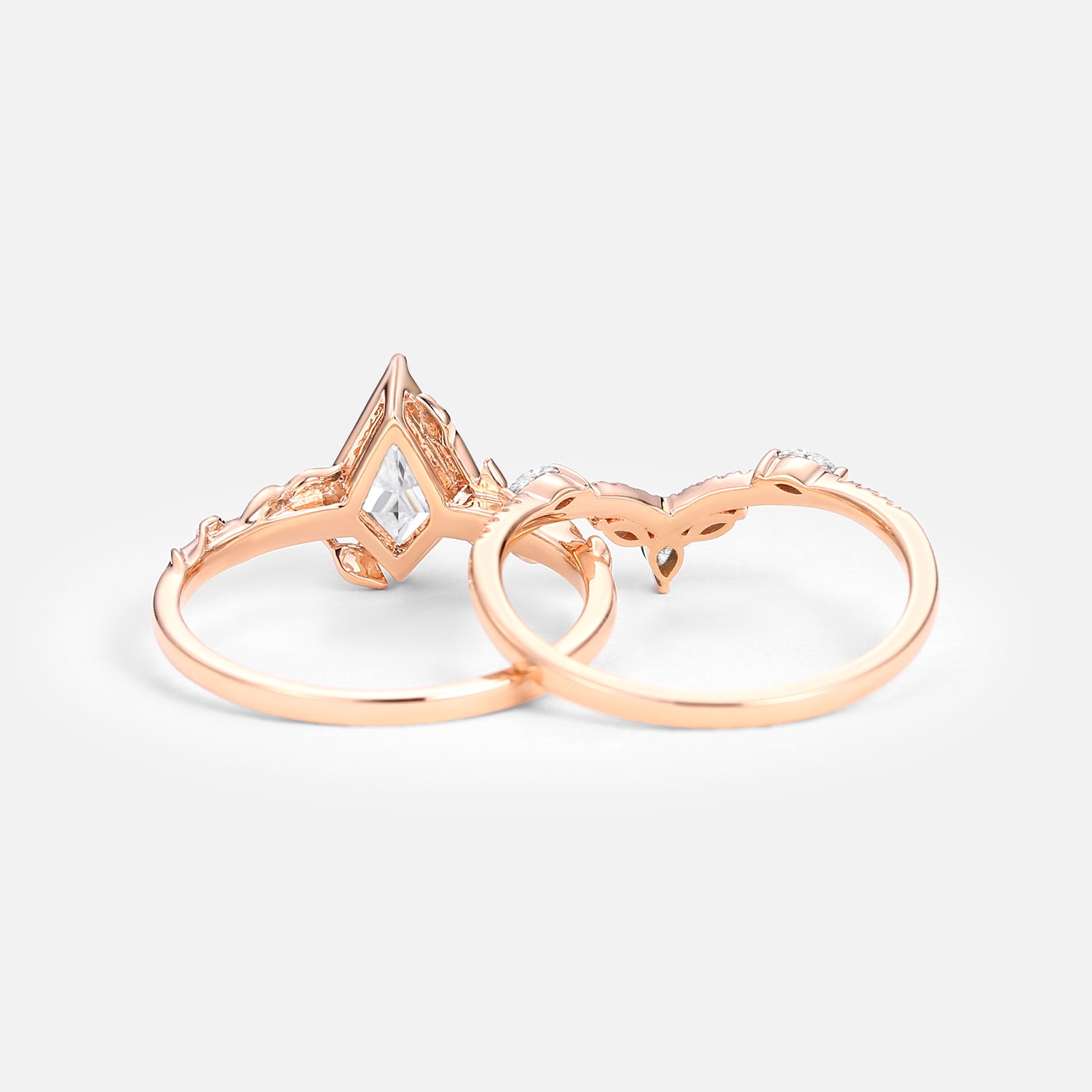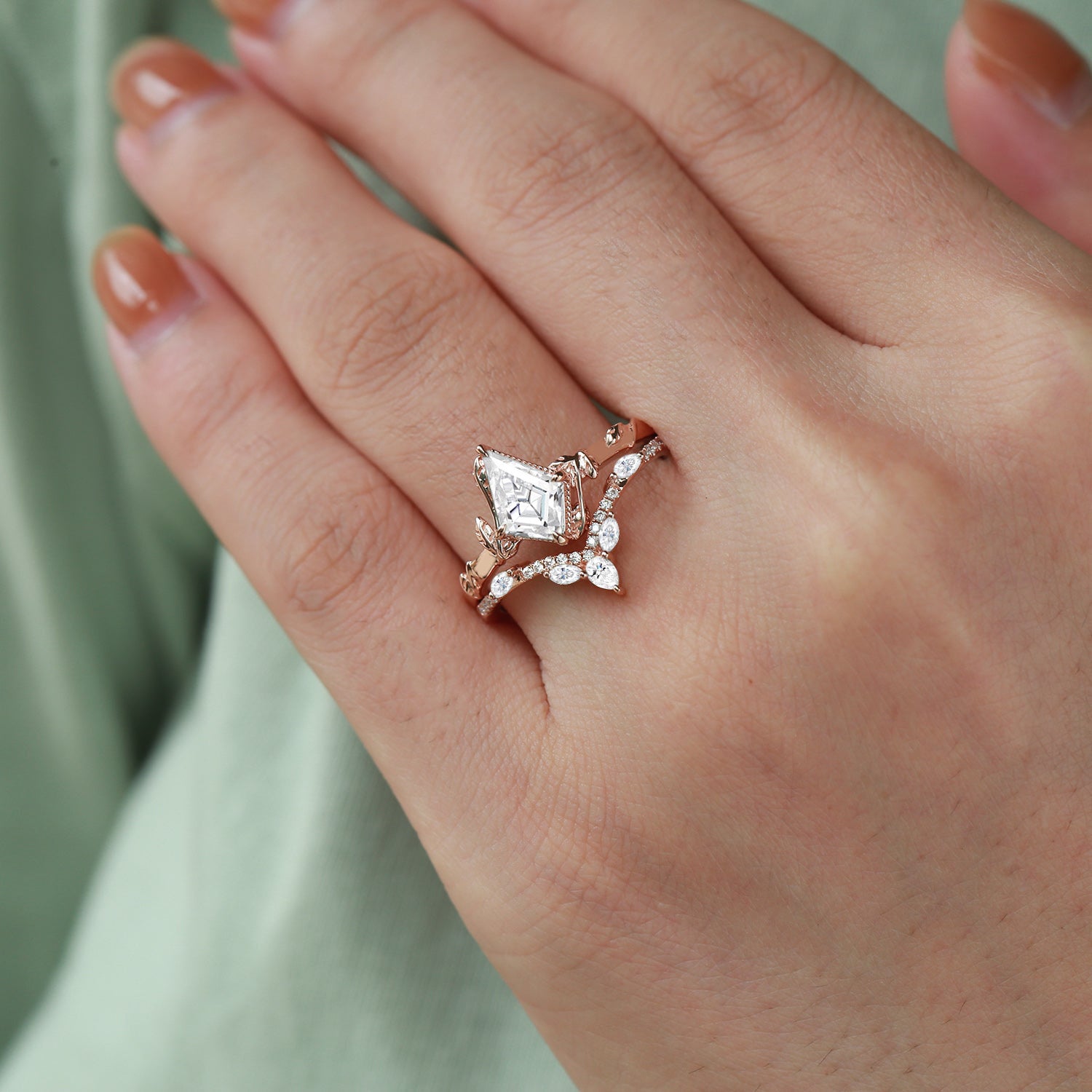 Kite Cut Moissanite Leafy Engagement Ring Sets 2pcs - Lark
