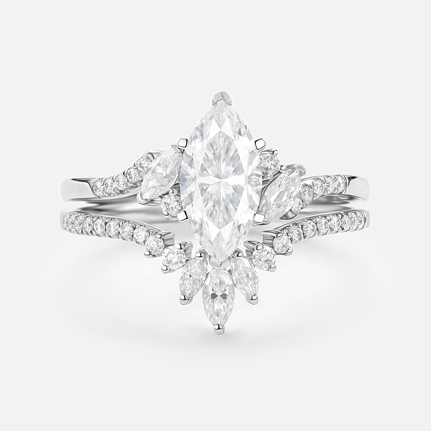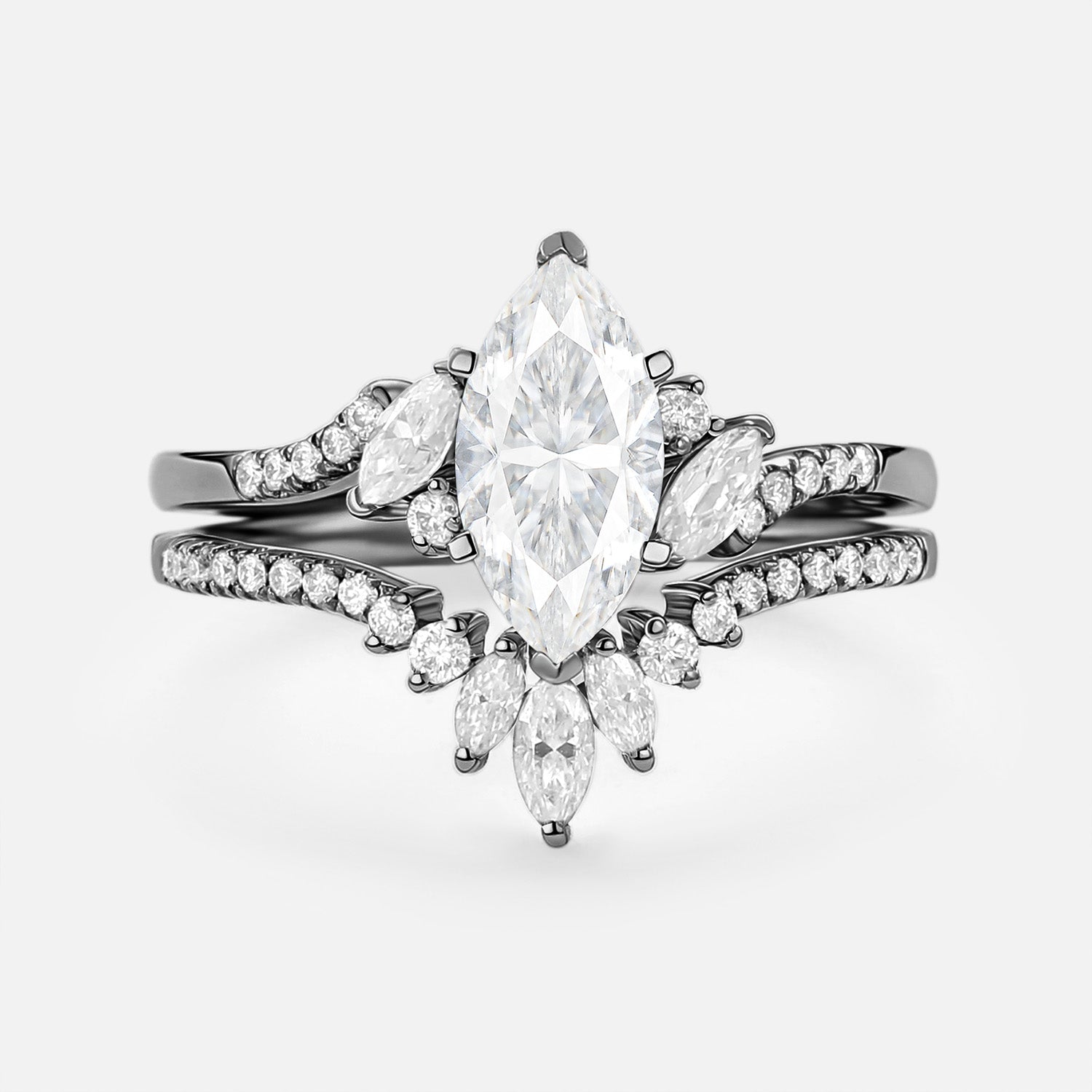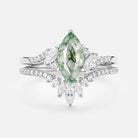 Marquise Cut Moss Agate Cluster Engagement Ring Set 2pcs - Sloane
