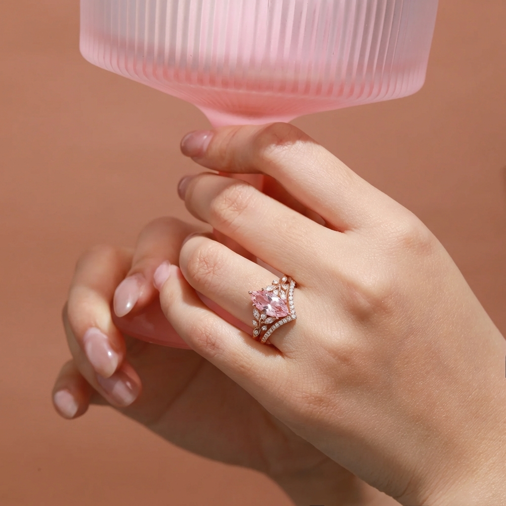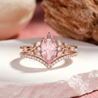 Marquise Fireworks Cut Lab Pink Sapphire Engagement Ring Sets 2pcs - Pyxis